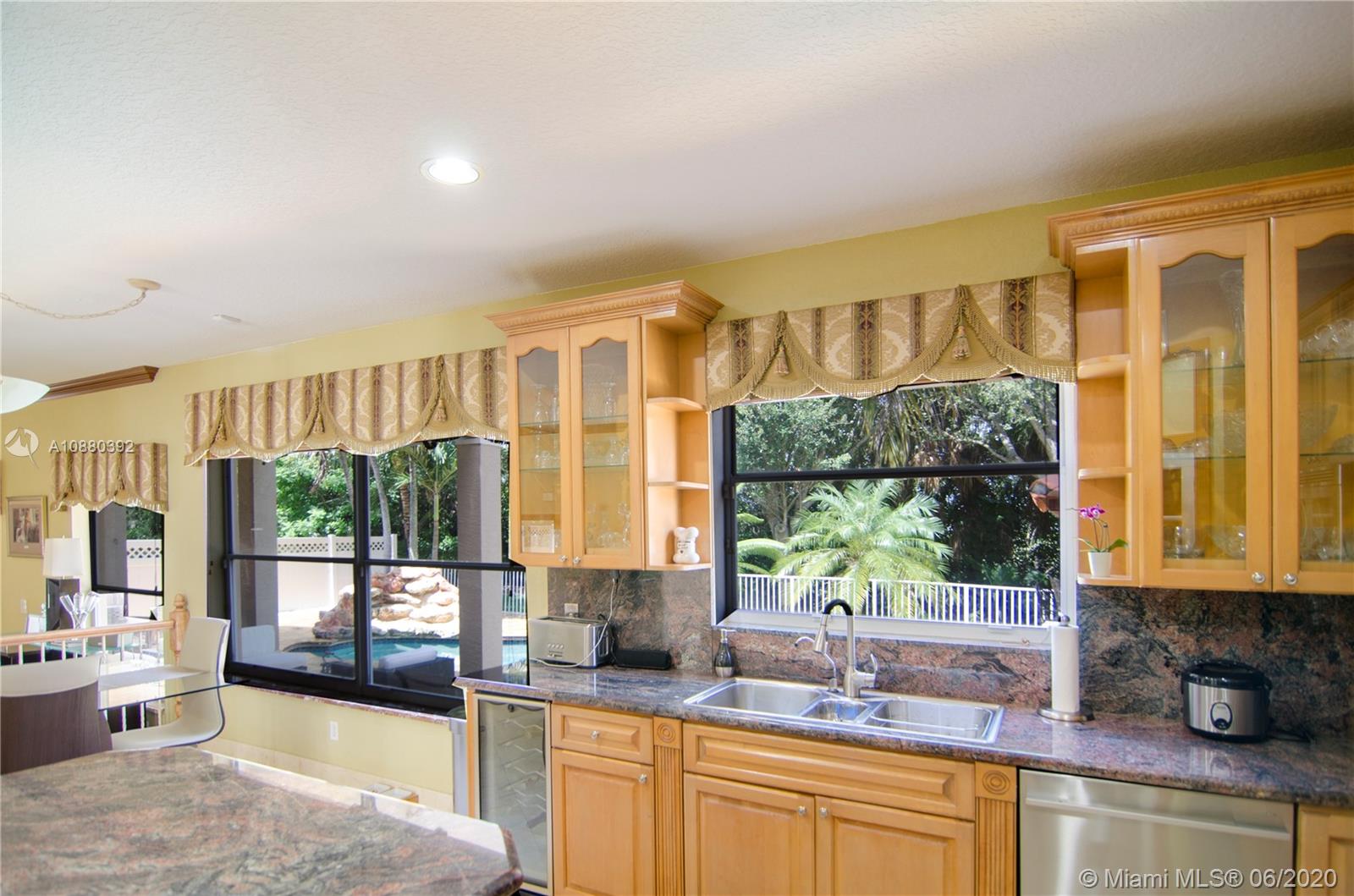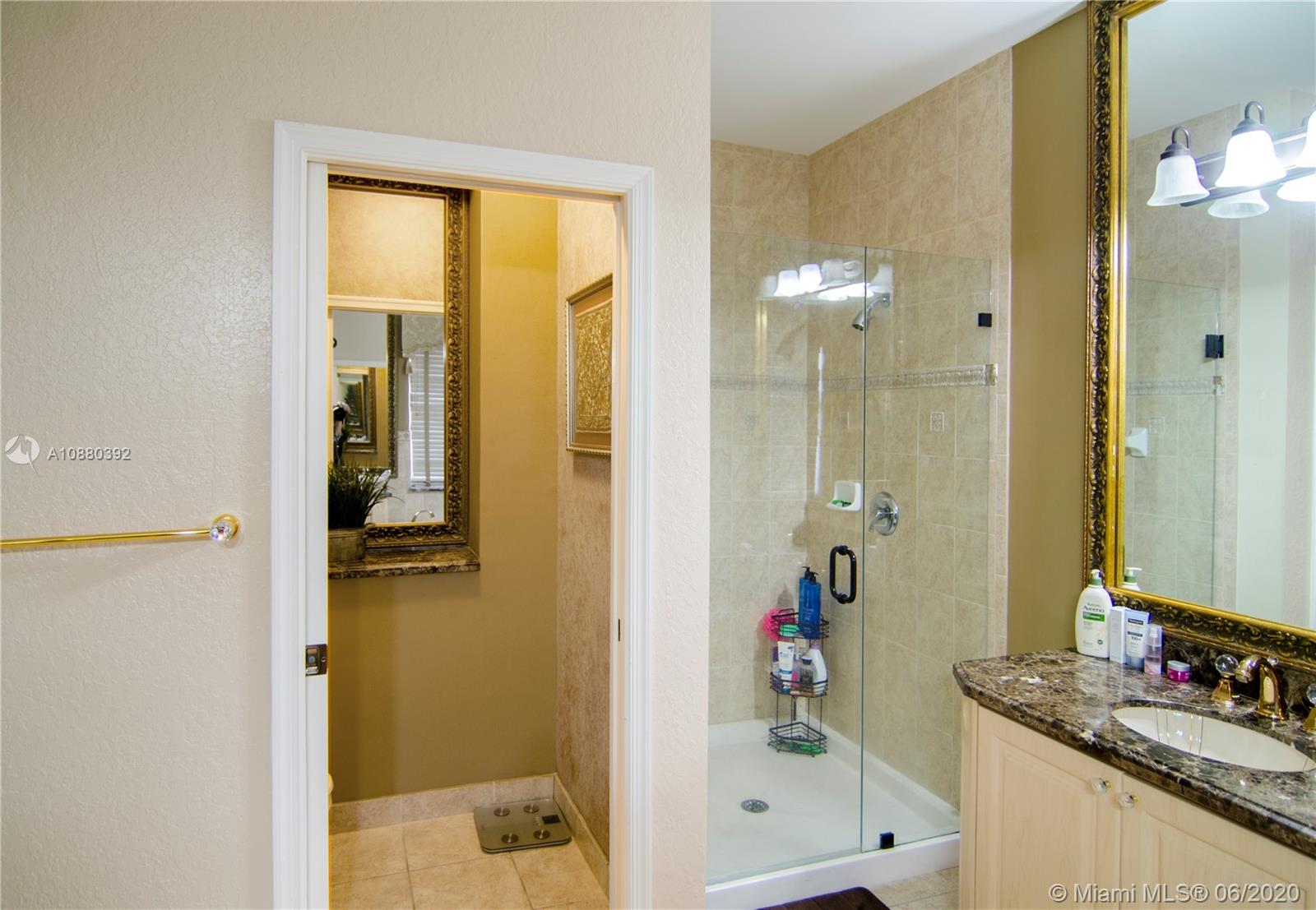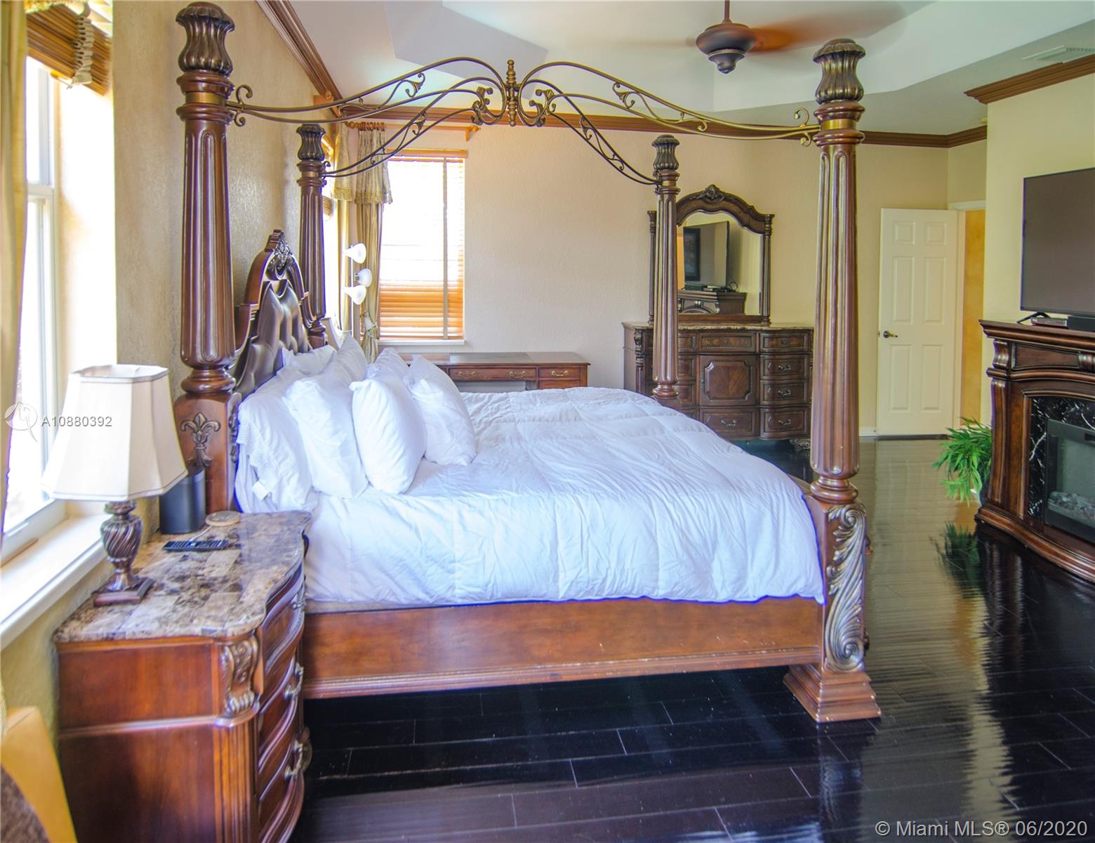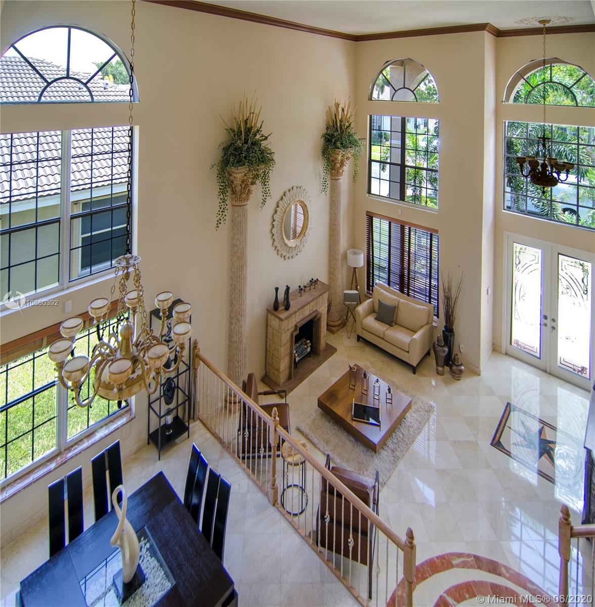PLEASE WATCH THE VIRTUAL TOUR, real 360 tour: you will like. MOTIVATED SELLER. You are greeted in an elegant home with marble and bamboo floors throughout, two story Cathedral ceilings in formal living and dining room and warm inviting colors. The staircase is beautiful with dark bamboo and wrought iron. You'll LOVE this floor plan! All of the social areas are spacious. The kitchen is a chef's delight with plenty of granite counter space and tall wood cabinetry. The kitchen overlooks the sunken family room, making this the perfect family hub to gather. Enter the primary bedroom suite through grand double doors. His and Hers private bathrooms and closets. This home has 2 primary bedrooms. Meticulously cared for travertine pool deck, pool house for BBQ. 2 new AC units, 2 years old.