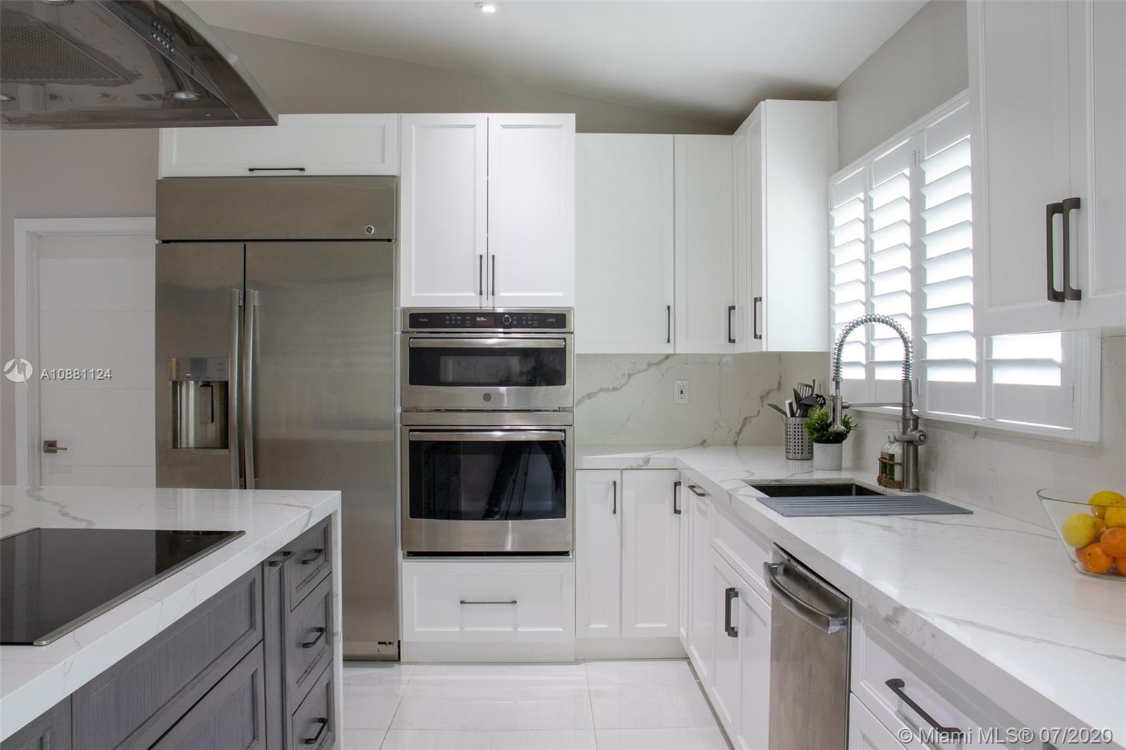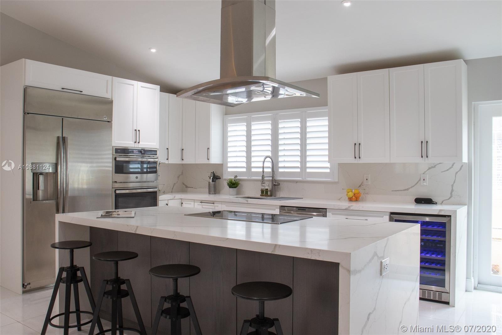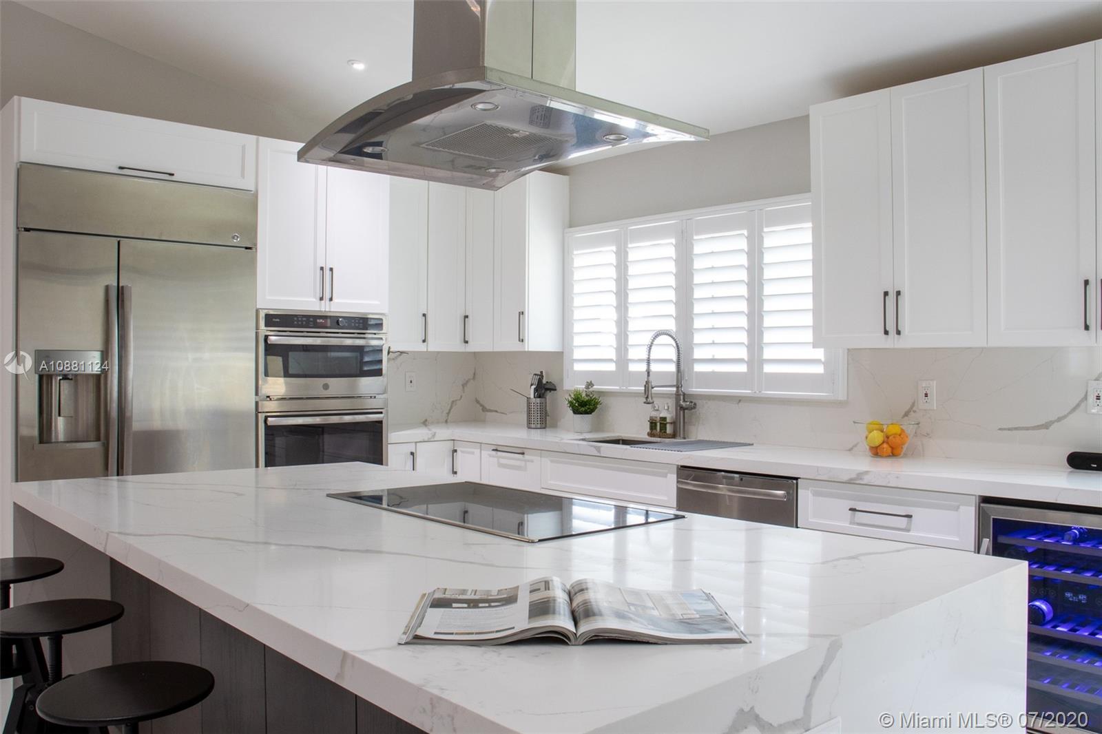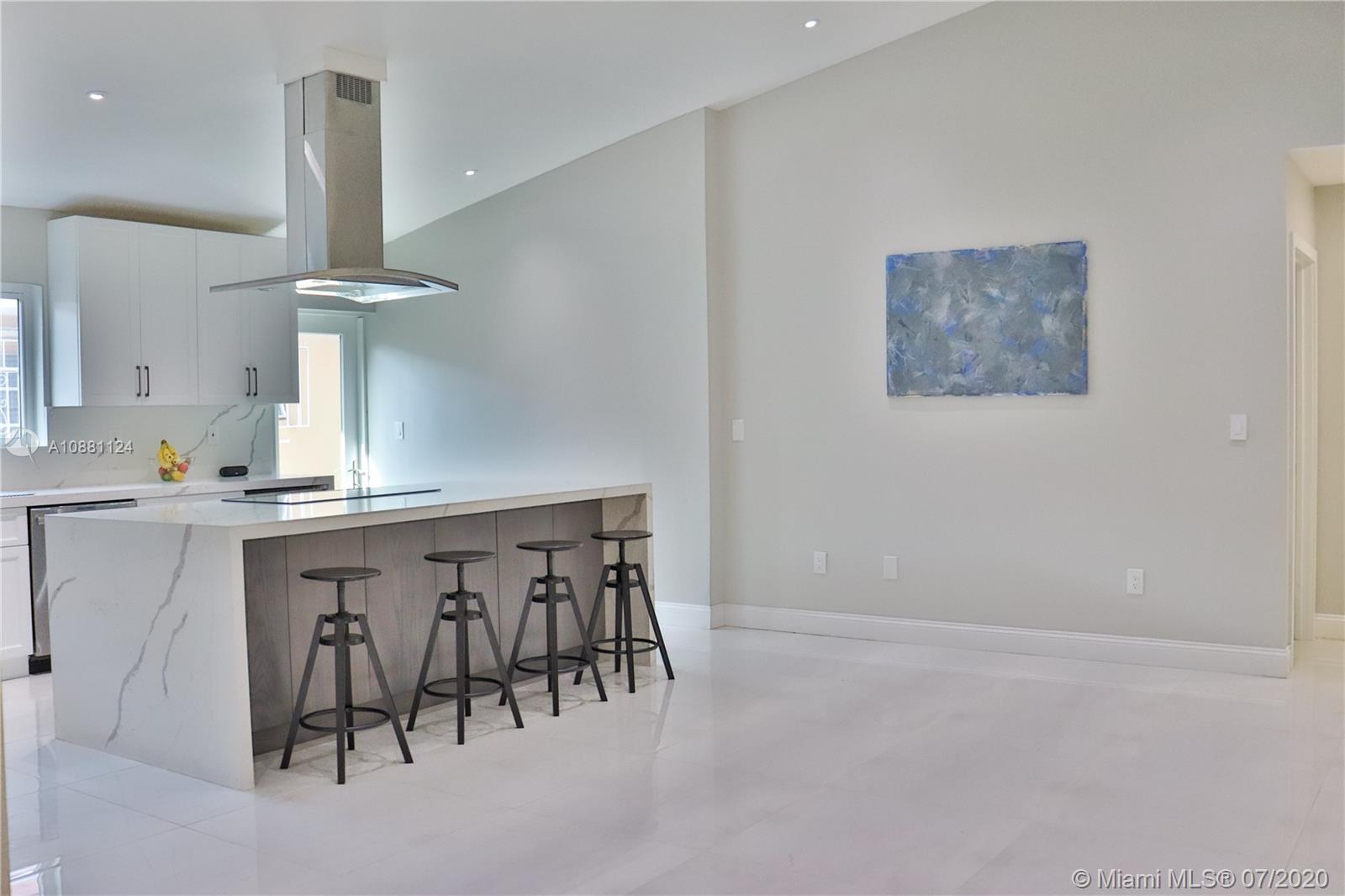 One of a kind, newly renovated 3 BD/2 BA home in Coral Gables. Home features high vaulted ceilings, 8X4 ft kitchen island with new stainless steel appliances, induction cooktop, and dual temperature wine fridge. Quartz countertops, impact windows, large porcelain tile floors, LED recessed lighting, custom closets, and tastefully renovated bathrooms are among its features. New AC, washer & dryer, and Ring security system are also included. Don't miss the opportunity to live on this beautiful & quiet, tree lined street. Move-in ready!