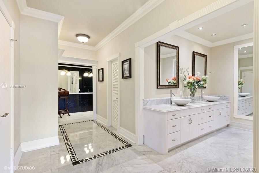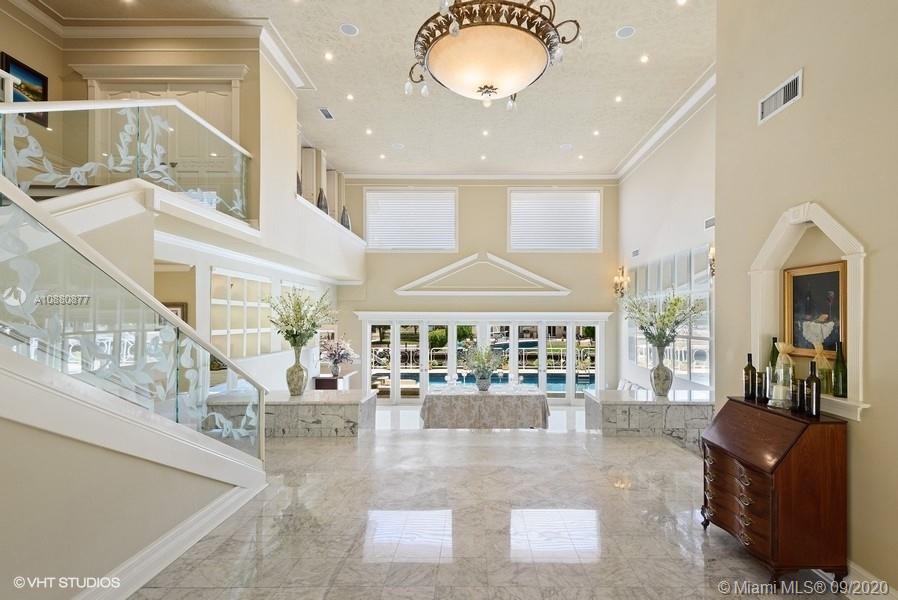 Elegantly appointed Gables by the Sea waterfront home w/ direct ocean access & no bridge to bay! Magnificent 5 bed/ 5.5 bath home is located in “Boater’s Paradise” sitting on an oversized lot w/ a 90 ft. linear dock & sparkling pool overlooking the waterway. Upon entry you are welcomed by water features, soaring volume ceilings, waterfront views, & a palatial living area wrapped in white marble. A true entertainer’s delight, features include a professional 2,500 bottle wine cellar, SONOS sound system, summer kitchen & sweeping covered verandas perfect for al fresco dining. Grand Master Bedroom en-suite w/ sitting room, walk-in closets, & private balcony will not disappoint! 3 BR upstairs/ 2 BR downstairs + den. Excellent waterfront value: total 6,949 SF! Guard gated & best public schools.