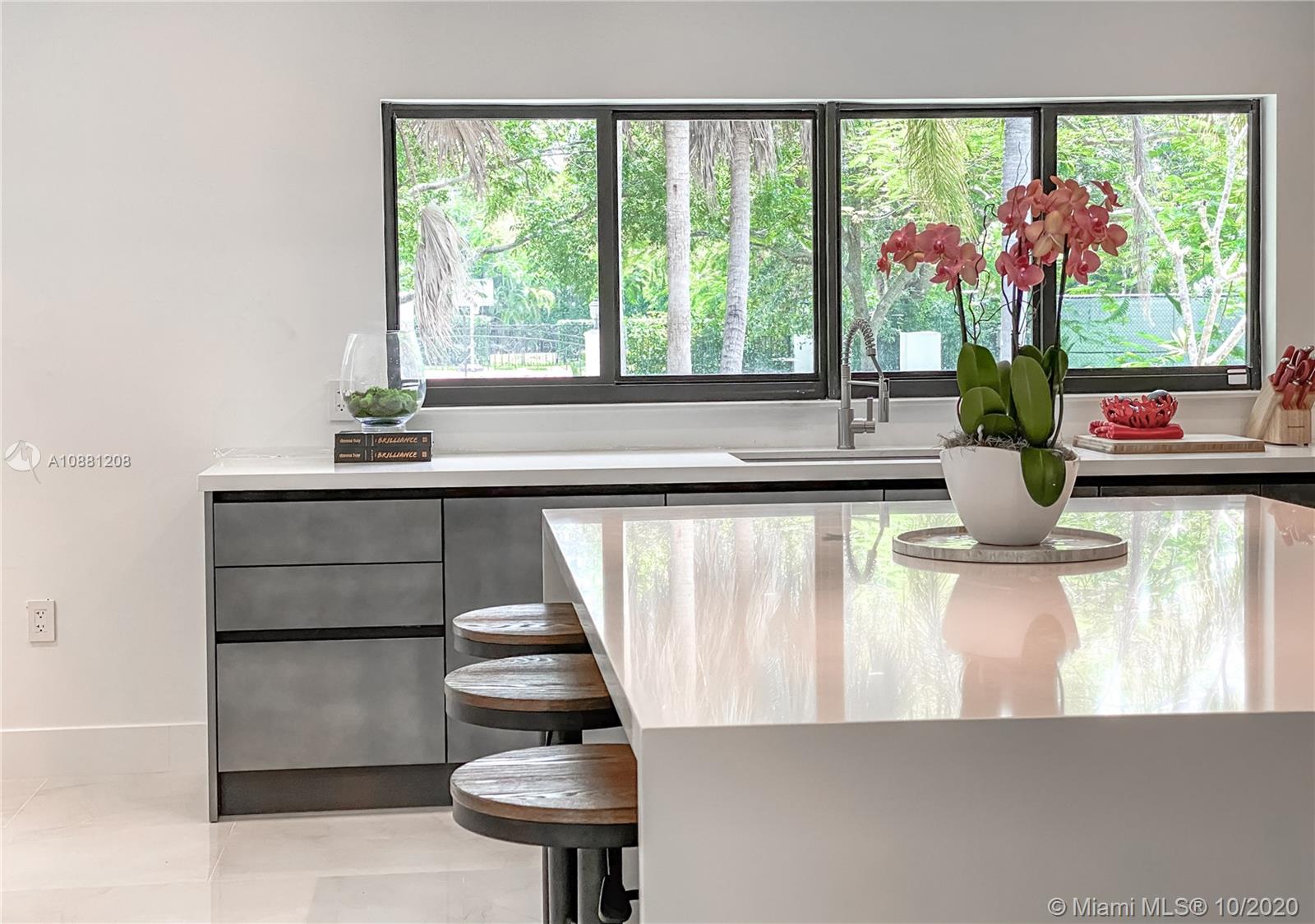 Fully remodeled home in Pinecrest. This residence offers a spacious and bright living area, a state-of-the-art gas-range Italkraft kitchen with Sub Zero, Wolf & Miele appliances as well as remodeled bathrooms with chromotherapy in the master shower. This expansive residence is located on an ample 38,769 SF Lot with a Pentair pool with UV sanitizer and a pond. Private 1be/1ba guest-house with a full kitchen. Other upgrades of this battery ready home include: a full summer kitchen under AC, solar panels, a 3-car garage, Porcelanosa-tile floors, LED lighting throughout, all CGI impact windows and doors, central vacuum, water filter with UV filter, SIW front pivot door, 4 Carrier A/C’s with nest controllers, new metal roof from 2018 and updated electrical and plumbing.
