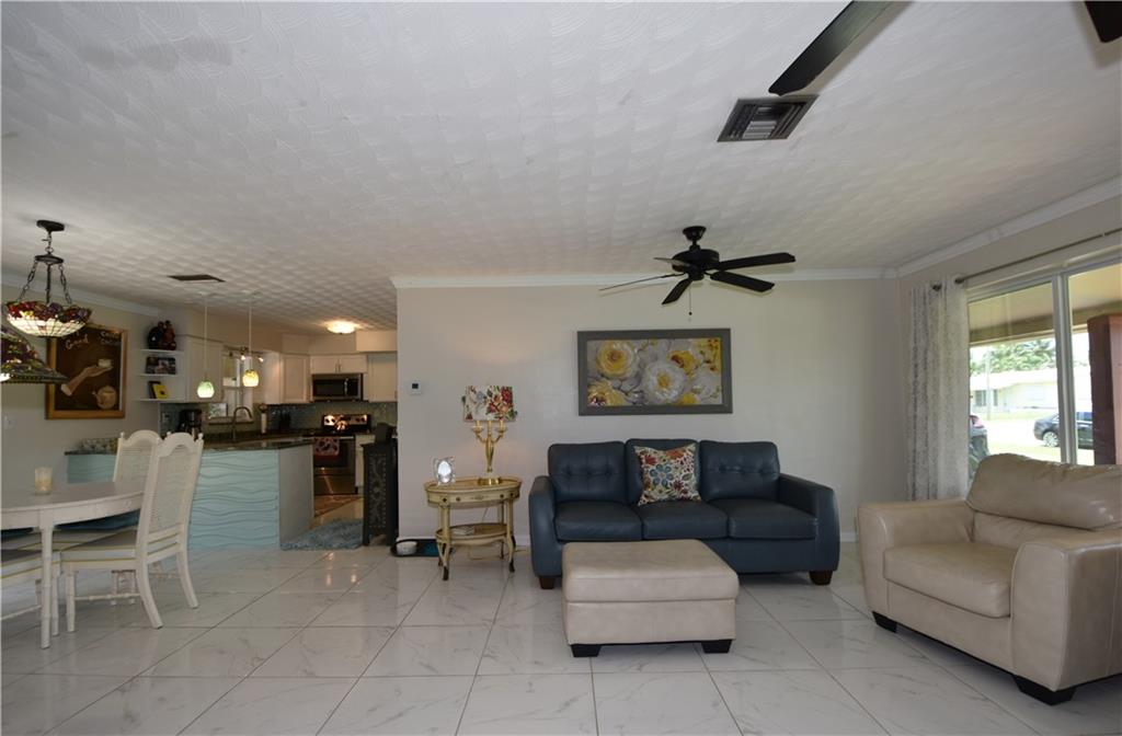 A Must See...Tons of Natural Light Pours into the Great Open Floor Plan Perfect for Entertaining, Updated Kitchen with Glass Tile and Granite, Stainless Steel Appliances, Beautiful Landscaped Open Saltwater Pool Area with Tumble Stone Deck!! New Pool Pump, , Newer Electric Panel, All Impact Windows Except for French Door. Crown Molding, Ceiling Fans, Stained Glass and Pendant Light Fixtures. Screened Porch with Roll Down Shutters, Well for Sprinkler System and Fully Fenced Yard for Fido!