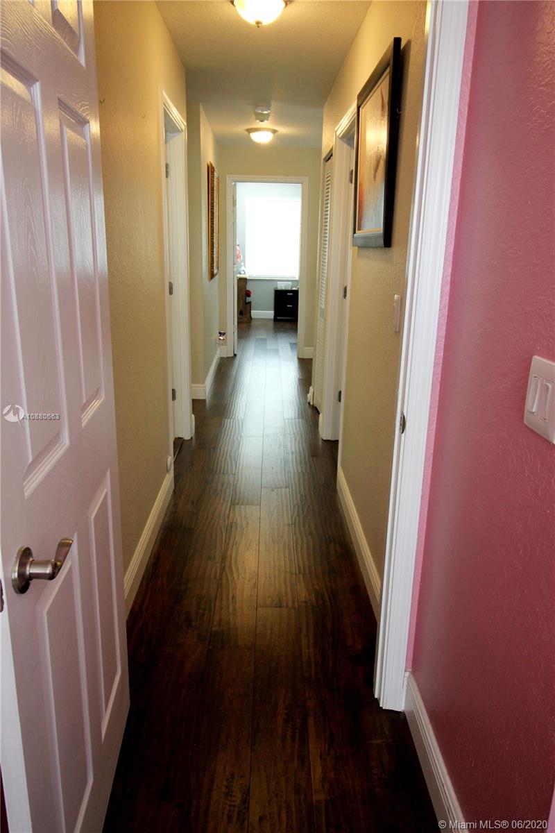 Beautiful 4/2.5 home located in a cul de sac. Open concept floor plan makes for entertaining and an inclusive family area and kitchen with granite counter tops and stainless steel appliances.Tile and laminate through out The den features a tiled wall .Master suite with 2 Custom Build-In walk-in closets.Master Bathroom just re- done with walking Shower and separate Roman tub with Temperature sensor that auto changes water color when water temperature changes Nice Patio terrace. Sprinkler with Purifying System.Tiled garage, Outside garage remote control. Impact Hurricane Windows on first floor, Accordion shutters on the second floor and high impact French doors. Brand new W/D. Gated community with pool, tennis court, basketball court, clubhouse and gym.Security video recording on premise.