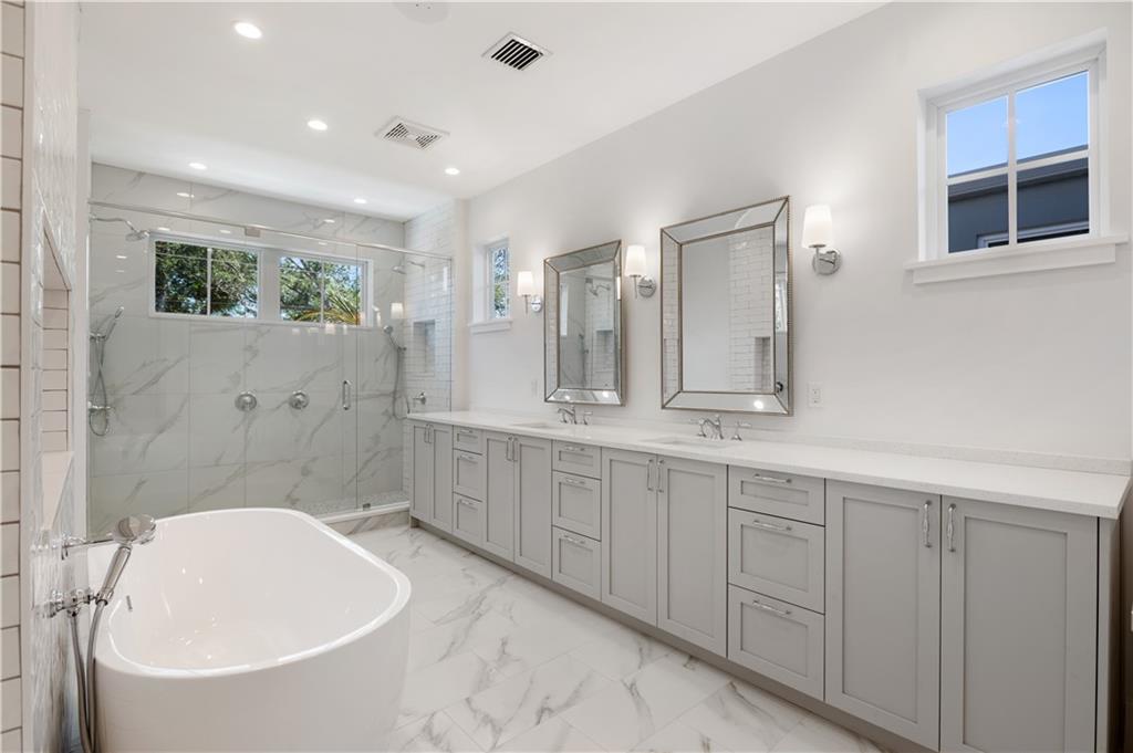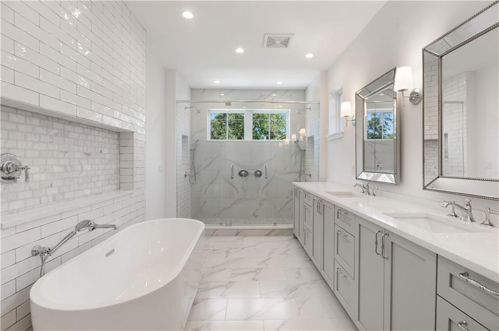 Remarkable new construction 4BR/4.5BA Key West contemporary. 3622 square feet of impeccably designed interiors. This open concept floor plan offers a ground level Den/Office, immense Living and Dining areas, a well-equipped Chef's kitchen and half bath. The second floor boasts a Master suite w private terrace plus three additional guest suites two of which share a balcony. All bedrooms have unbelievably proportioned closet space. The laundry provides a wall of additional cabinetry. The master bath has a double width spa shower with multi-heads and a separate soaking tub. Extensive hardwood cabinetry in Shaker design compliments both baths and kitchen. Premium brand stainless appliances in kitchen and laundry. Other features incl: a covered terrace with pool, a 2-bay garage with storage.