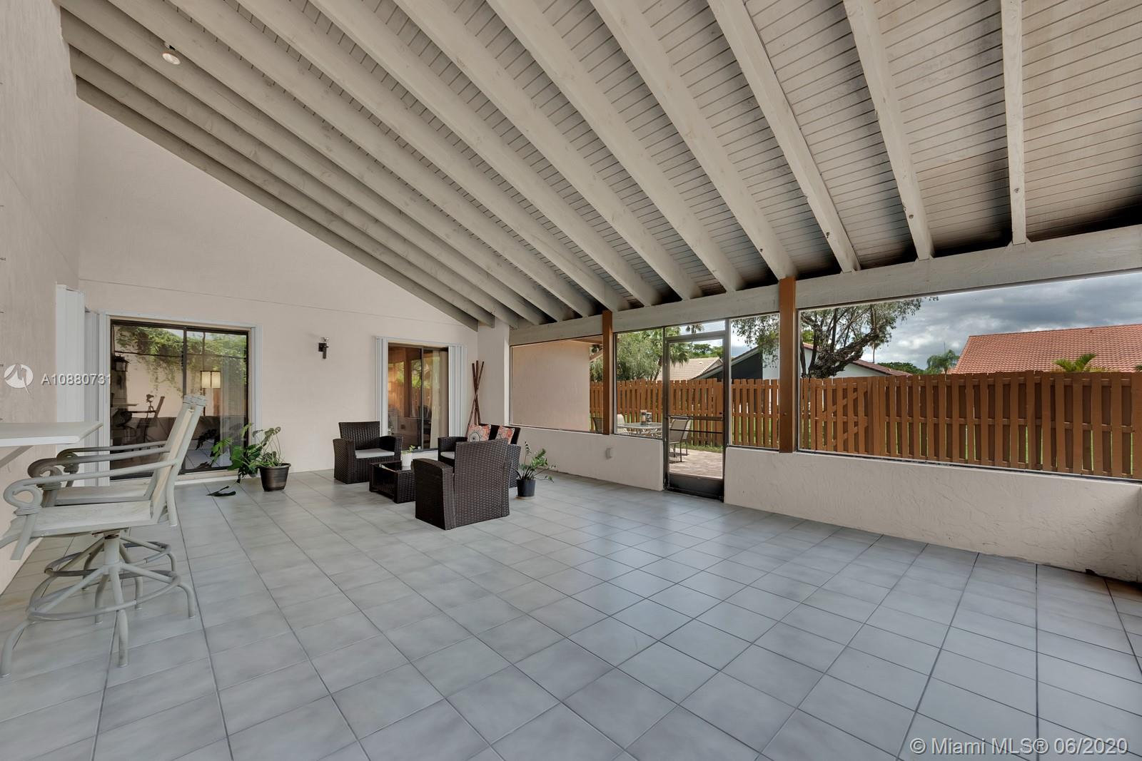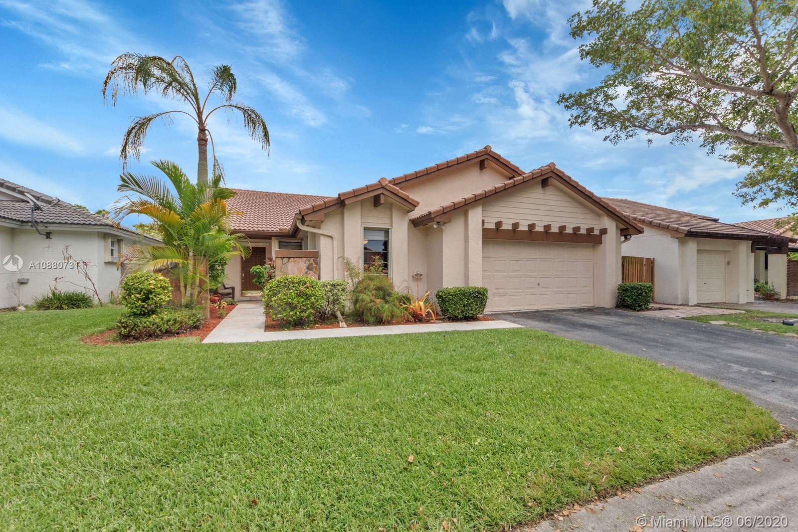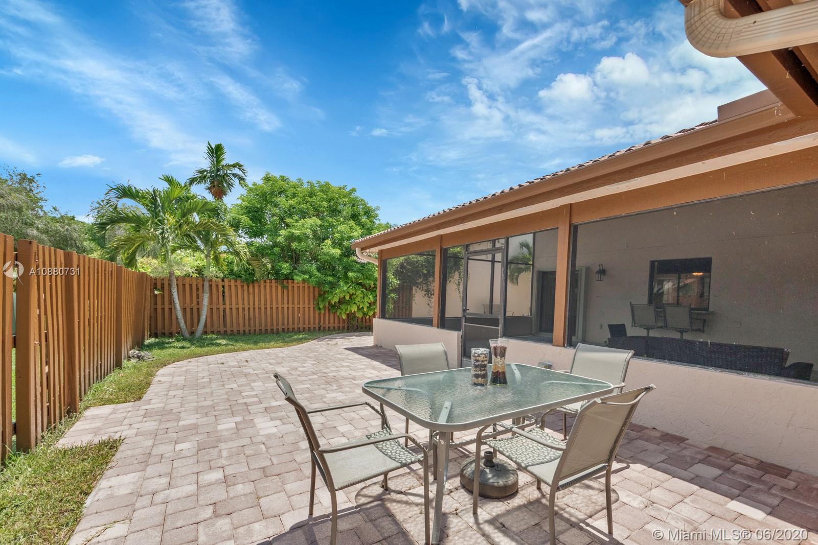 Charming 3 bedroom + office/den, 2 bathroom one story home with spacious 500+ sq ft covered, screened and tiled patio is set on a beautiful tree-lined cul-de-sac street. Interior features a center island kitchen opening to family room, neutral tile in living areas, wood flooring in bedrooms and updated bathrooms. Roof 2008. The fenced yard backs to a green space for ultimate privacy. Accordion shutters for hurricane protection ease. 1 1/2 car garage. Maintenance fee covers watering of the lawn and cutting of the grass. Non-commercial trucks allowed. Steps to community pool and passive park. Easy highway access. Top notch schools.