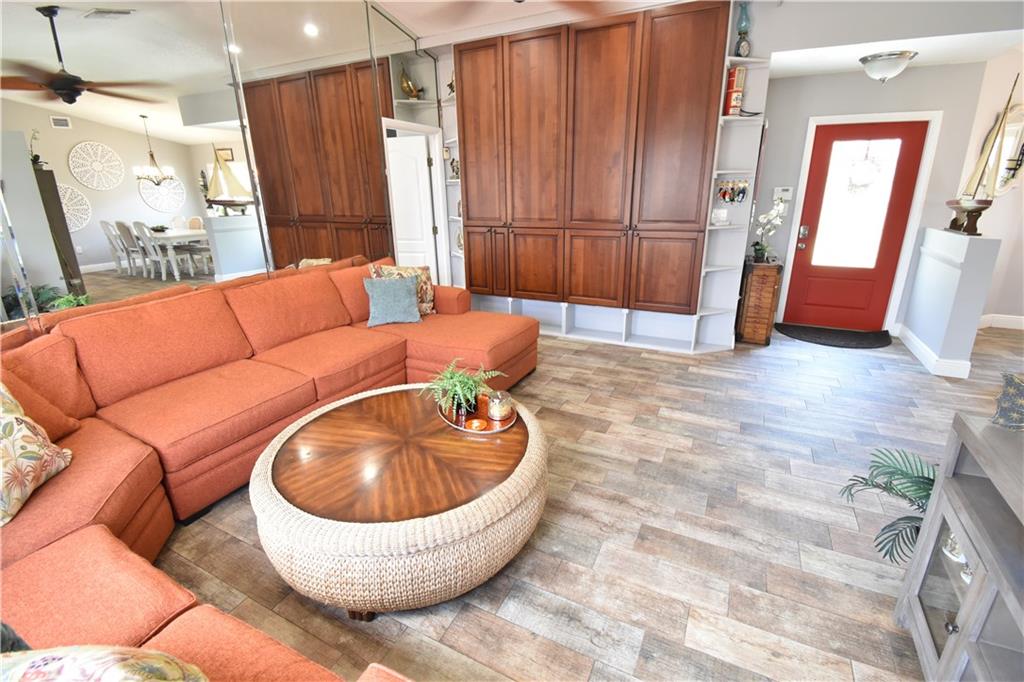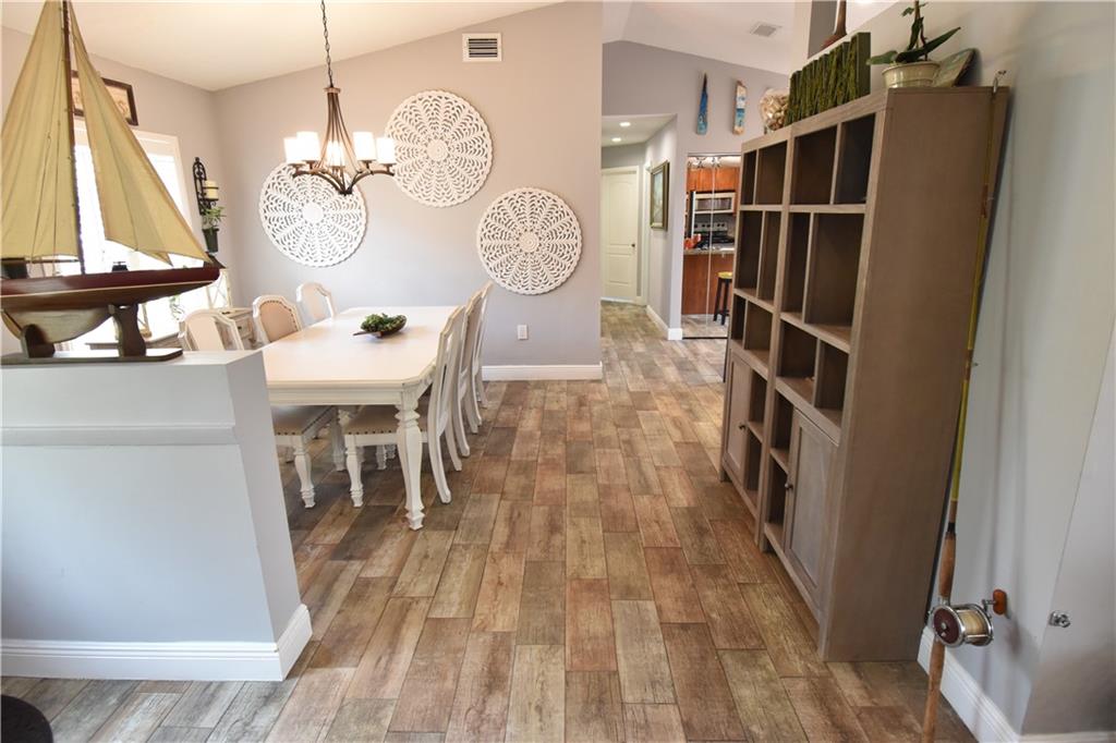 RUN to this beautifully updated home with 4 bedrooms and 2 full baths. This home has all the modern touches and then some. Enjoy the beautiful wood designed tile floors throughout walking areas and master bedroom. Enjoy your updated kitchen with granite countertops, wood cabinets, and stainless steel appliances with snack counter. Plenty of pantry space and pull-outs for all your storage needs. Enjoy a modern master bedroom split plan with paver patio and gazebo. Updated master bathroom and a HUGE updated closet. Enjoy the extra 3 bedrooms for a larger family or workspace. 2nd bathroom updated with modern touches that will not disappoint. Enjoy the she-shed with a/c in your newly fenced backyard with alleyway for the kids to play without worry or walk and enjoy nature to the lake.
