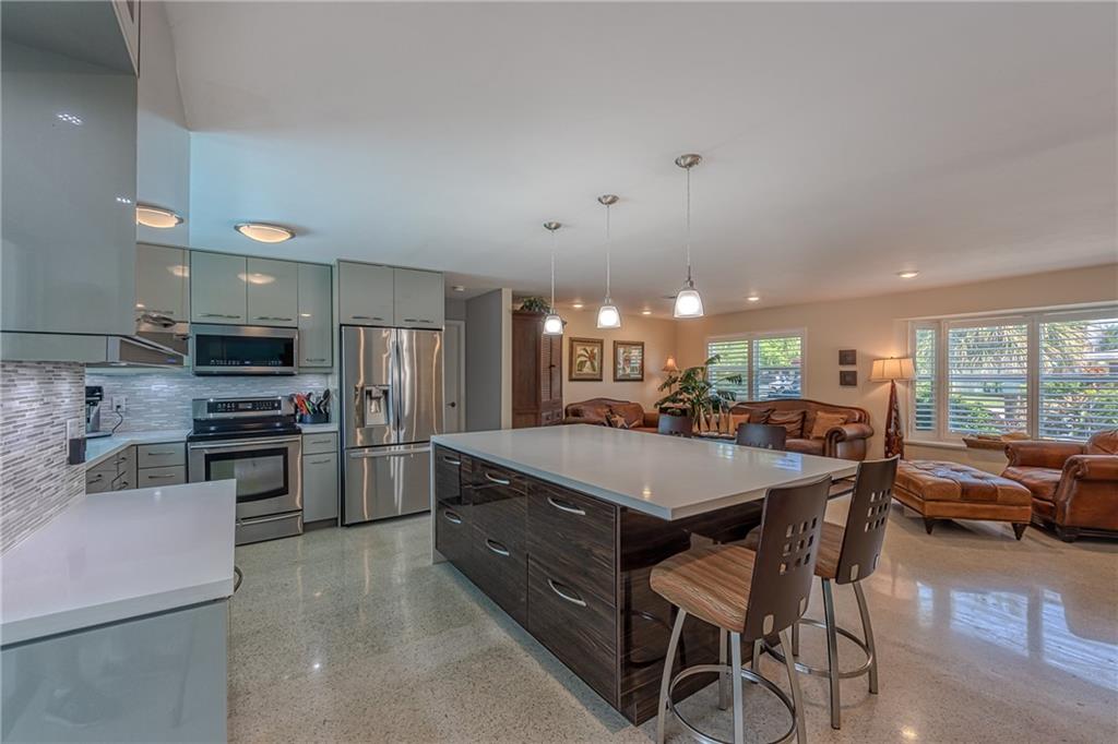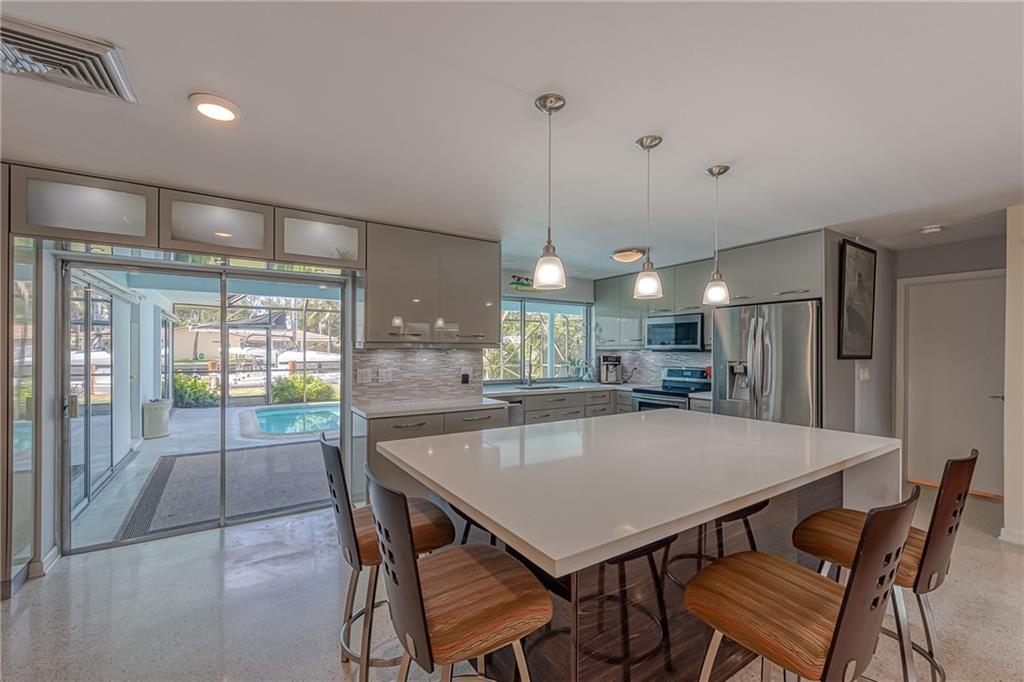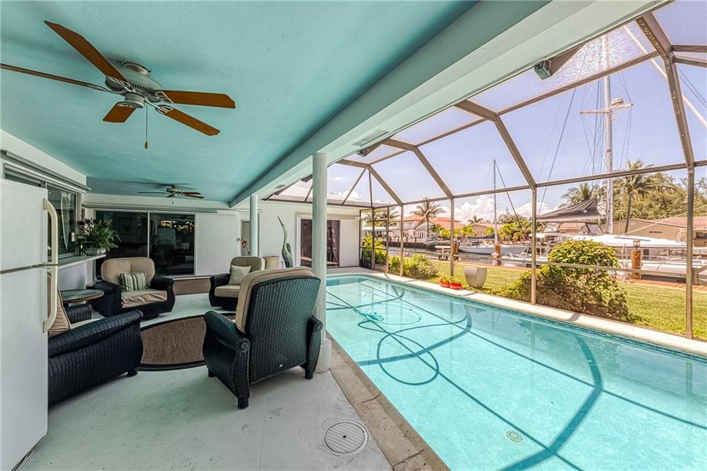 The Island at Harbor Village. Located on the 2nd largest canal in Pompano & only 4 houses off the ICW in a small gated community. Fantastic 4 bed/3 bath/2 car garage/pool/LARGE fenced yard! Updated & open kitchen w/ large center island, hurricane impact windows, recessed lighting, 2 living spaces, plantation shutters & stunning water views. Split floor plan, all bedrooms w/ walk in closets, terrazzo flooring throughout. Relax & enjoy the covered lanai w/ the ocean breeze & sparkling pool. Master bedroom has a large bathroom, closet & dressing room ready for your personal touch. Dock & seawall receive routine maintenance & are in top condition. This home is a boaters dream & offers the best of South Florida living! Neighborhood is gated but has NO association fee & no special restrictions
