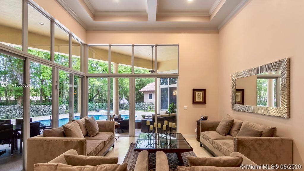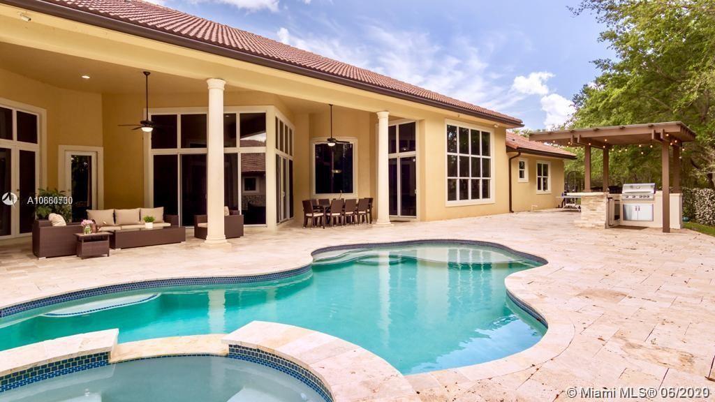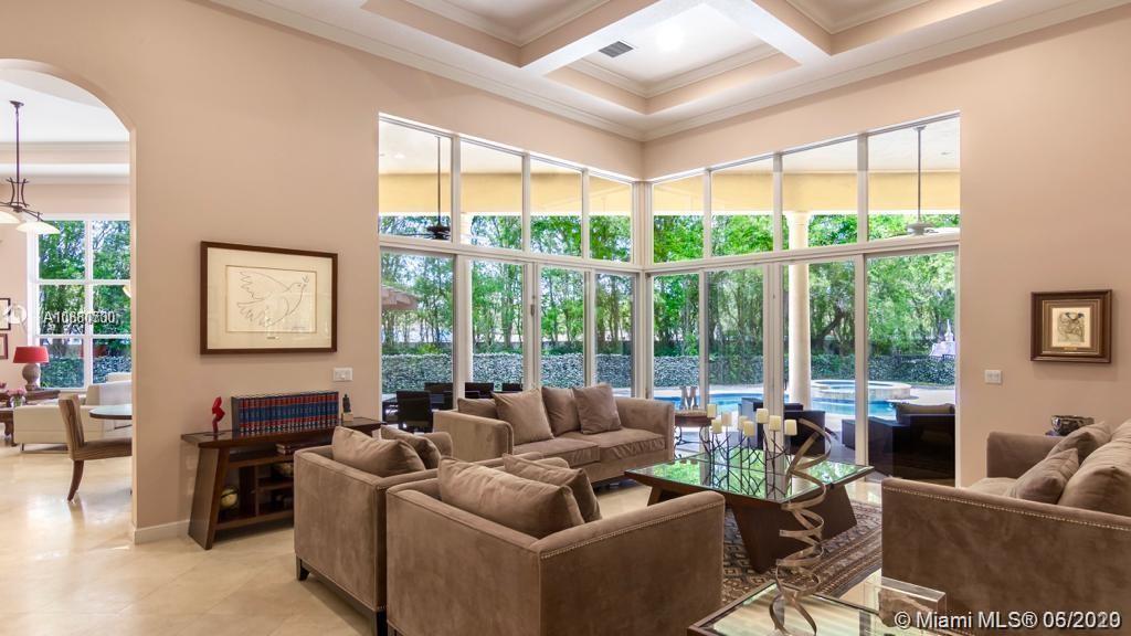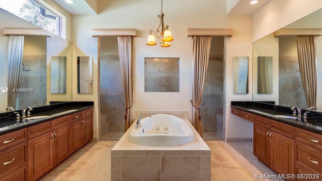 This immaculate Windmill Reserve house is bright and spacious, the six bedrooms and bathrooms encompasses plenty of natural light flow throughout the home graced by soaring ceilings and high impact wall-to-wall windows. The huge living room opens up to a spacious rear massive patio with a wonderful resort style pool and a fully equipped summer kitchen made for entertaining. Gourmet kitchen with island, large walk-in pantry and butler’s pantry, marble counter tops, sauna, office, master bedroom with walk in closets and luxurious in suite bath with a soaking tub and a separate glass shower, ADT security and cameras recording 24/7 for extra security. Windmill Reserve is an exclusive gated community with guard 24/7 and only 20 amazing houses around. Corner lot, biggest in the neighborhood.
