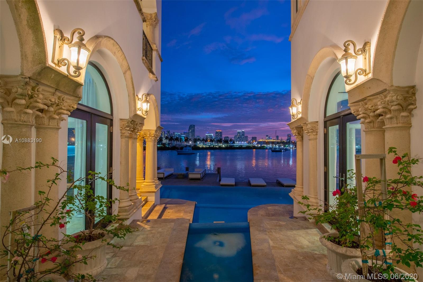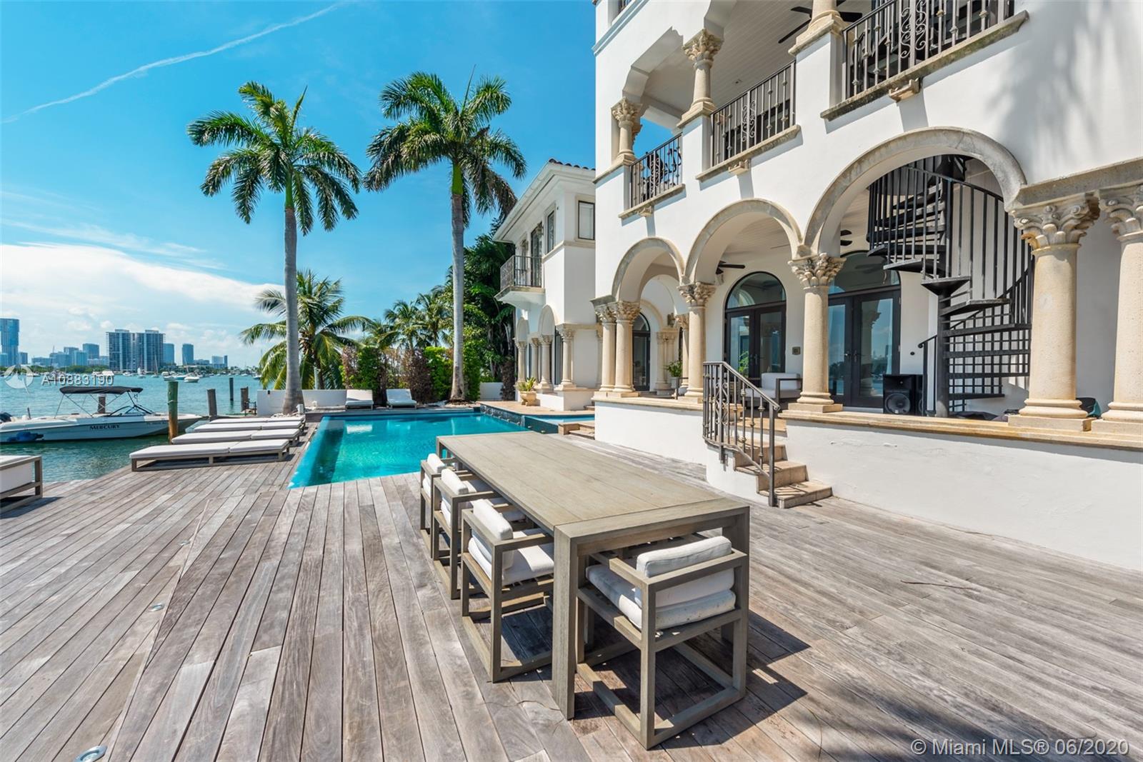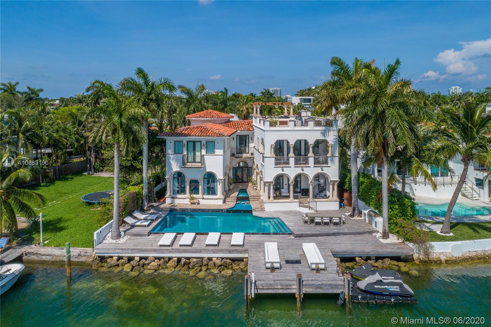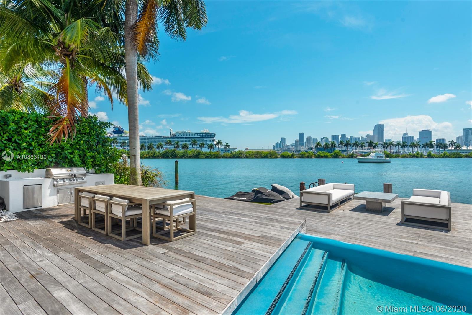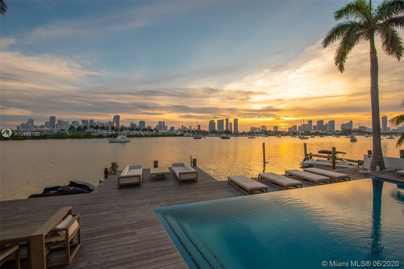 nspired by simplicity. This gated Palm Island Villa is the epitome of Miami Beach living. Offering unobstructed, bay views of the Miami skyline and 80 feet of waterfront with a private boat dock, this home has it all. Renovated in 2017, this stunning villa boasts 5 beds, and 5/1 baths over 6.974 SqFt of Total Area. Updates include marble and wood floors, new doors, new lighting and Creston system. With 24 hour police security and steps away from the Palm Island park and tennis courts, this masterpiece provides for a tranquil setting yet is only minutes from S Beach, Downtown & the Miami International Airport.