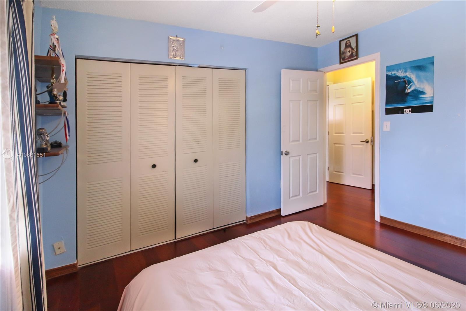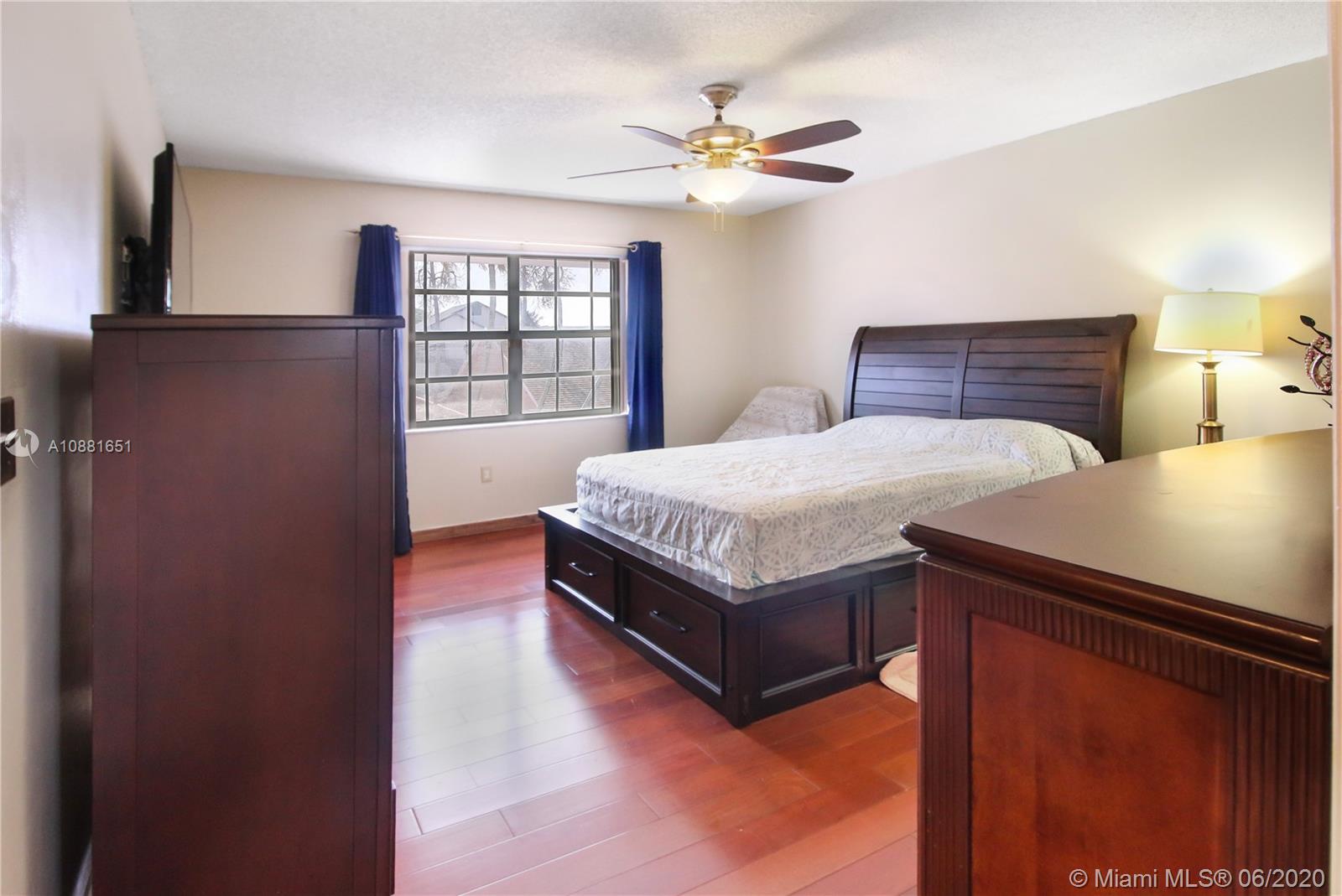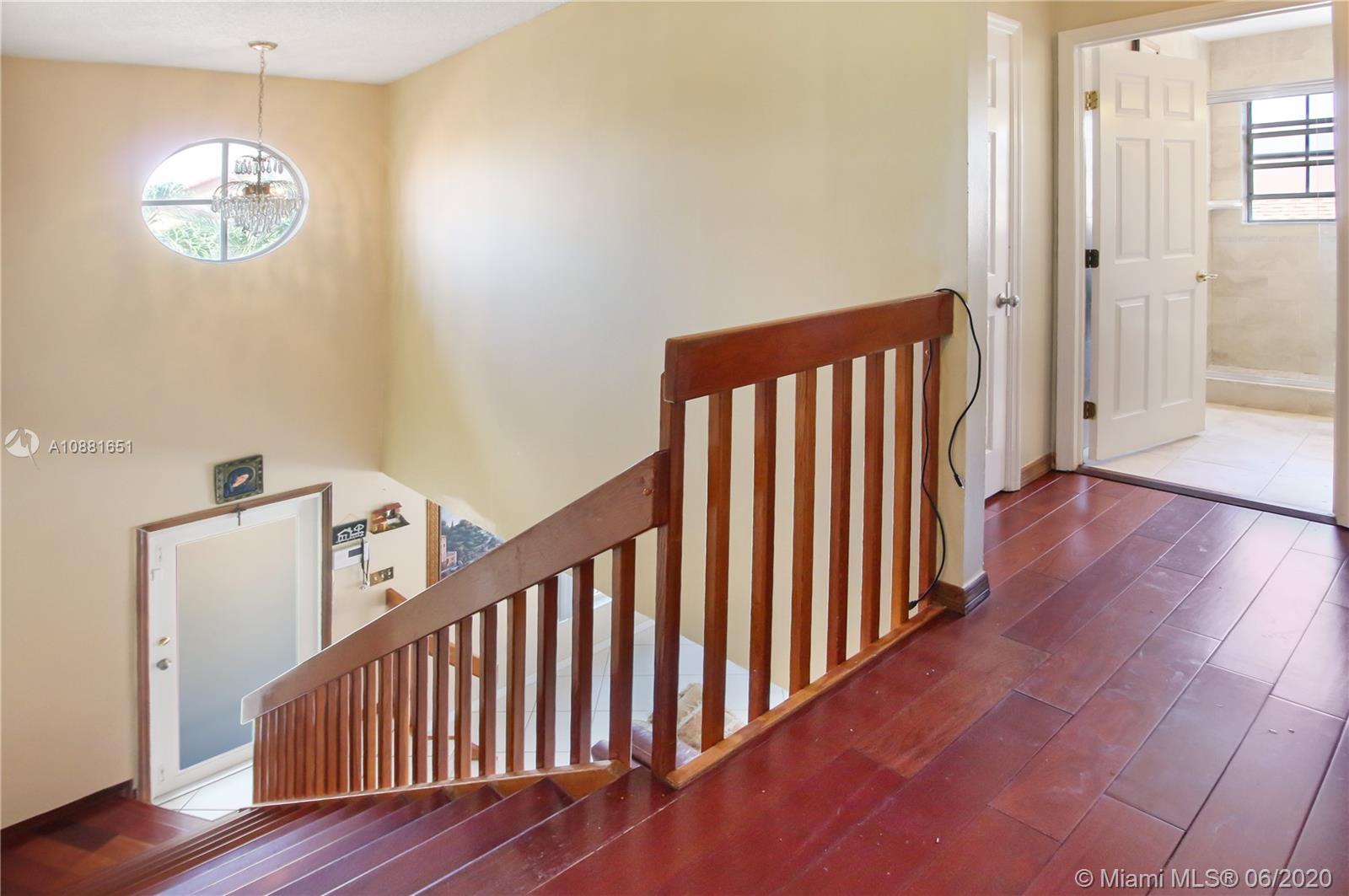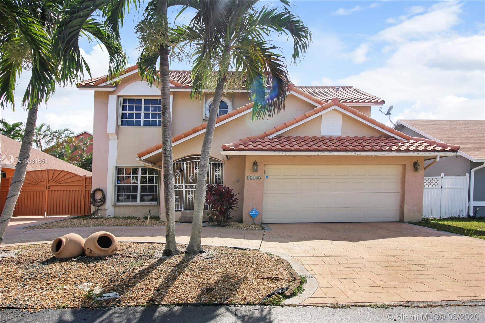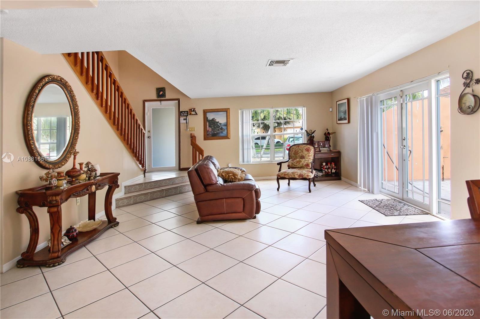 Welcome home! Beautiful front entrance leading into this 4 bedroom 2.5 bathroom single-family home with a stunning contemporary style remodeled chef's kitchen, equipped with gas range, stainless steel appliances and granite countertops. Spacious living room with high ceilings, tiled-floors and ample natural light throughout. Gorgeous hardwood flooring leading from staircase up to second floor. Large enclosed patio space with ceiling fans surrounded by fruit trees, perfect for enjoying the South Florida weather and entertaining guests. Large shed in the back for extra storage. Home has complete accordion shutters, impact doors and impact 2 car garage, ready for hurricane season. All plumbing is PVC. Conveniently located in Hialeah near plenty of shopping and dining. Definitely a must see!