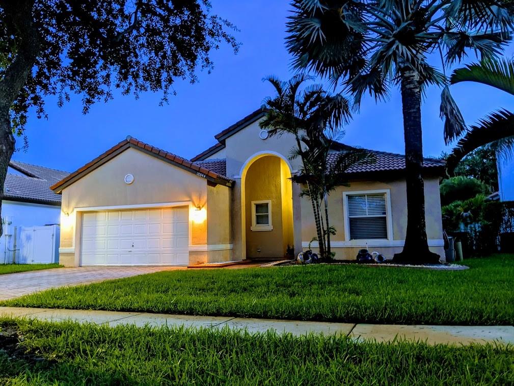 Modern & turn-key 4 bedroom / 3 bath single family home in Sunset lakes. This Albert model has completely redone kitchen & living areas with modern finishes & flooring. No spared detail. The kitchen is a dream. Features large quartz counter top island with high-end Samsung appliances including induction stove, wine chiller & more. LED lighting throughout. Smart systems and more. Private yard with no neighbors to the rear and easement for secluded feel. HOA includes alarm monitoring, basic cable & world class amenities including club house with updated gym, 8 tennis courts, tennis pro, basket ball, volleyball, zumba & more