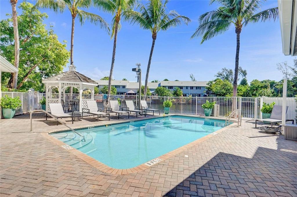 Rarely available gorgeous fee simple townhome with amazing views & own private dock, minutes to Wilton Drive. Intimate 15 unit complex with beautiful landscaping & pool. Home is remodeled and in addition, there are plantations shutters throughout, a private balcony off the master and a washer & dryer upstairs for convenience. This beautiful home is protected by high impact windows and doors. Pet friendly, one covered parking space + plenty of open parking, HOA covers exterior insurance along with the exterior and amenities.