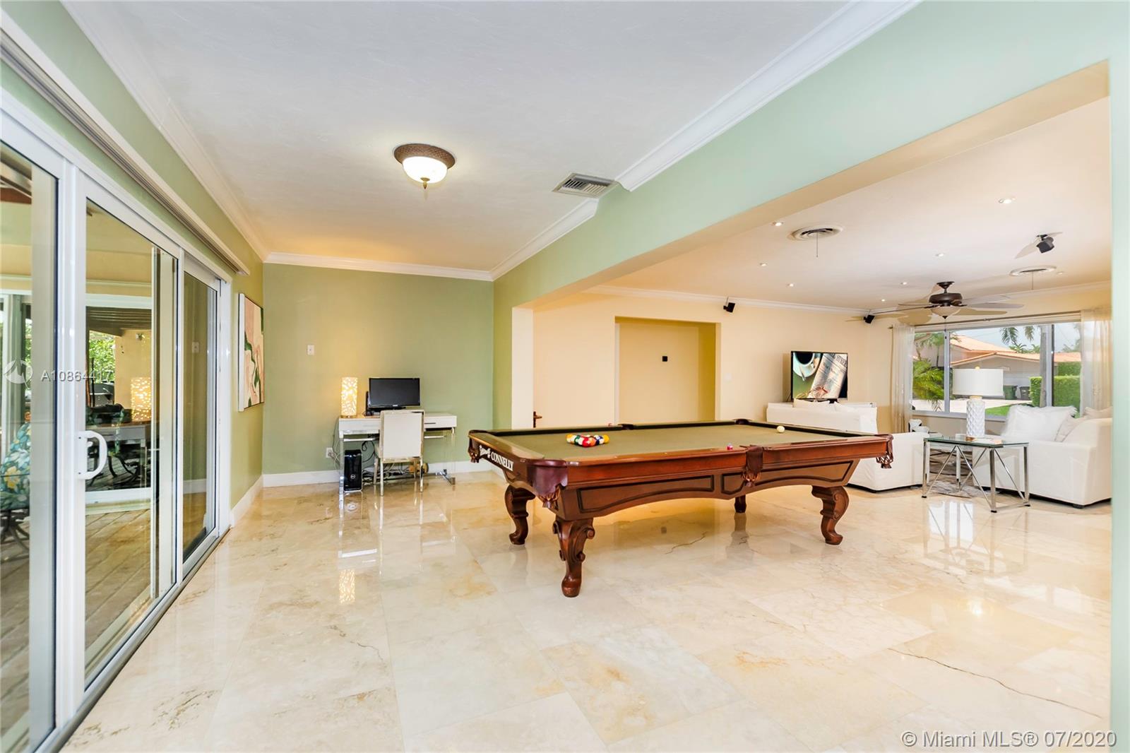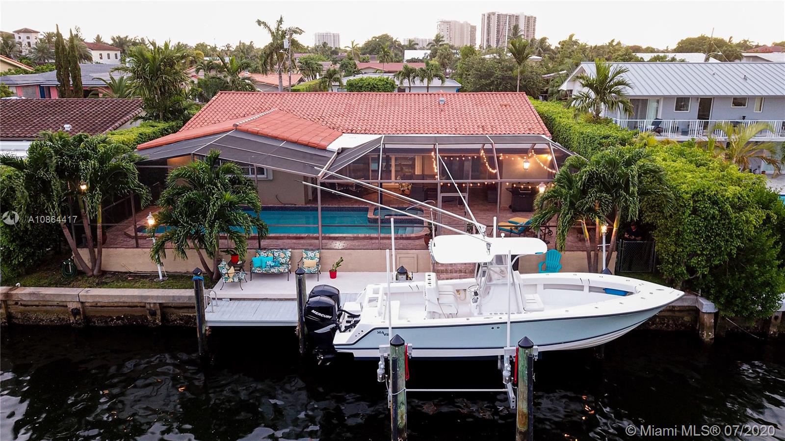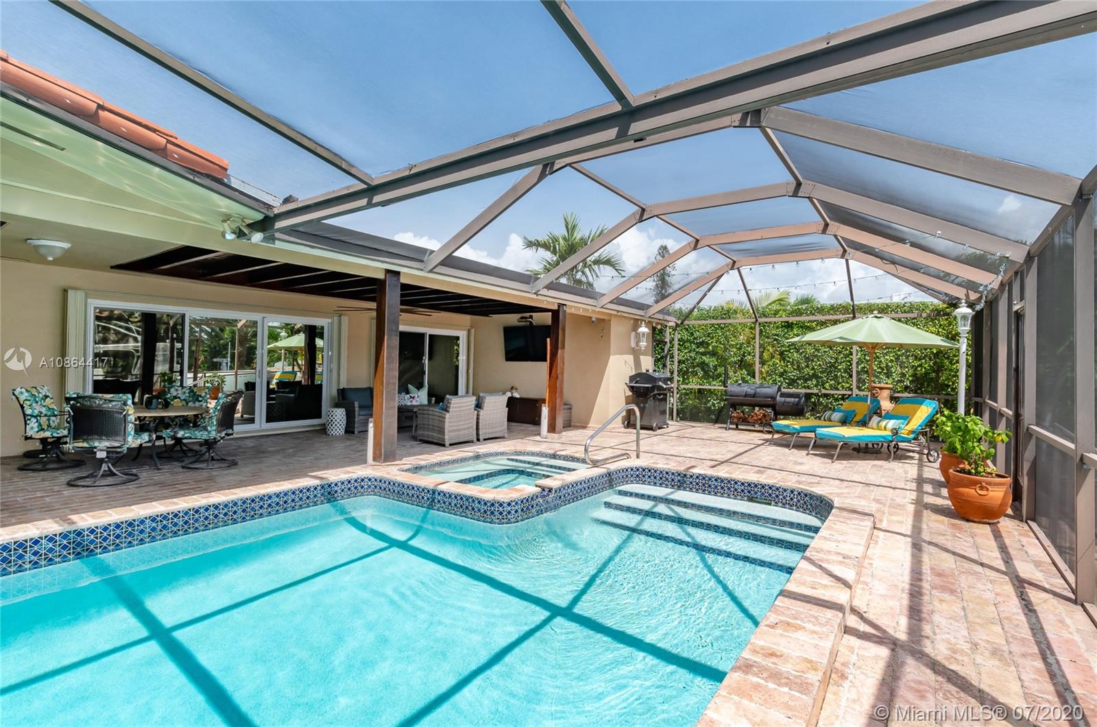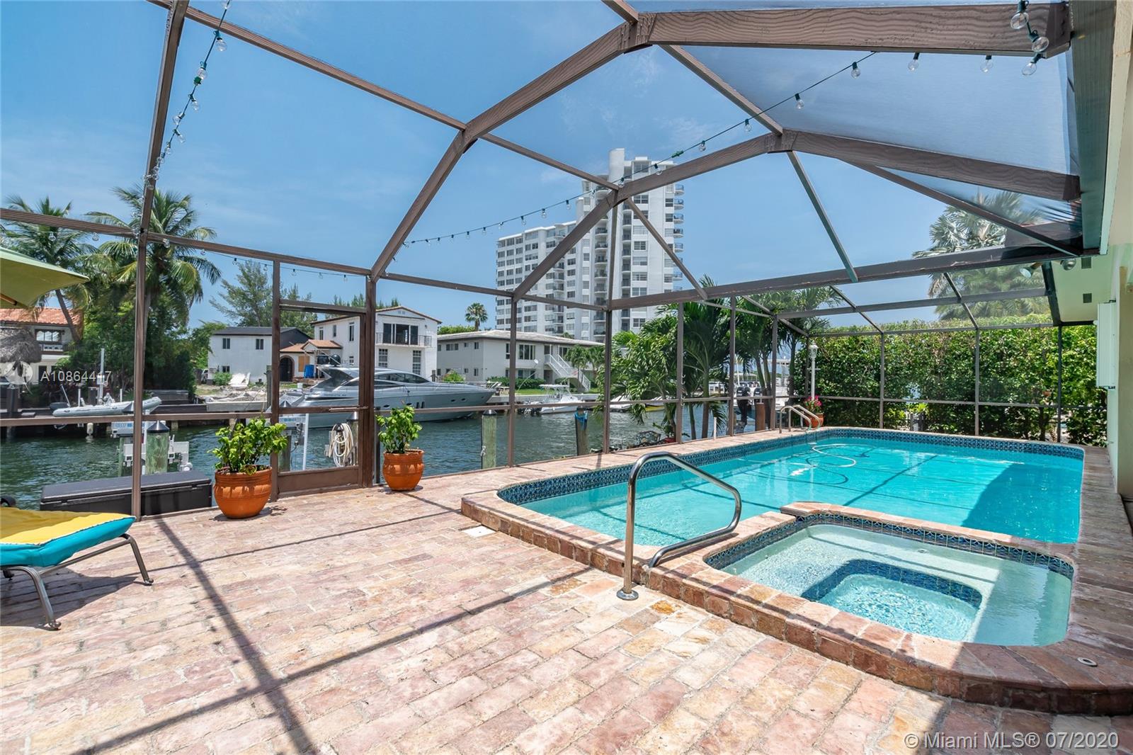 Dream Home in the Prestigious Sans Souci Gated Community. MOVE-IN READY! Enjoy the ultimate in waterfront living w/private dock & 75' w/f, no fixed bridges to ocean, 10 mins to Haulover Inlet. The master bedroom has custom walk-in closet, full bath, & private access to large covered patio & pool. This 3 bed/3 bath has high impact windows, doors, & garage door, polished travertine stone floors, hardwood floors, crown molding, granite countertops, central cooling & heating (installed 2017), wifi friendly appliances, jetted tub, built-in hot tub & heated pool. Natural light w/cellular shades, optional den office with canal views on quiet cul-de-sac street. Attached 2 car garage w/circle drive. Walking distance to tennis courts, LA Fitness, & Whole Foods. Perfect Location! Great Price!