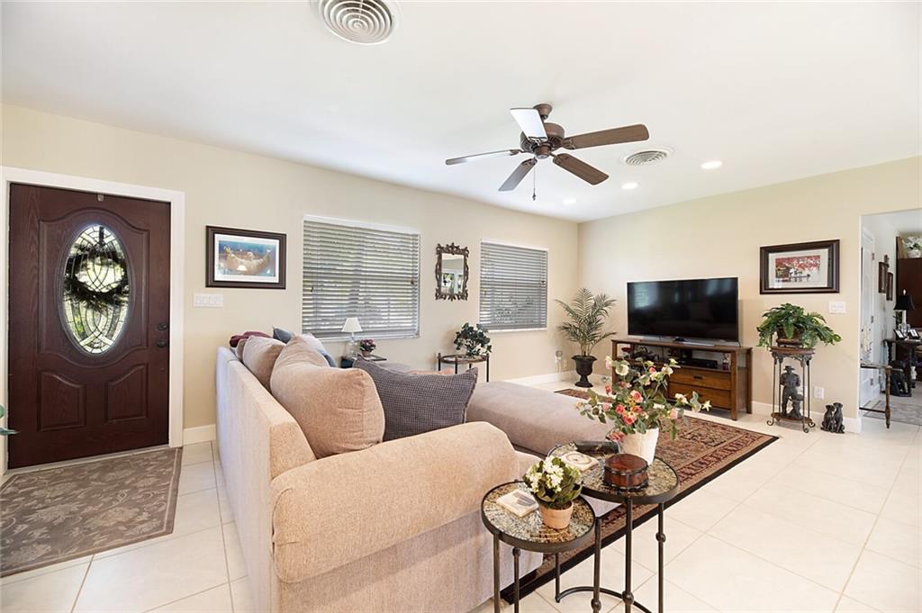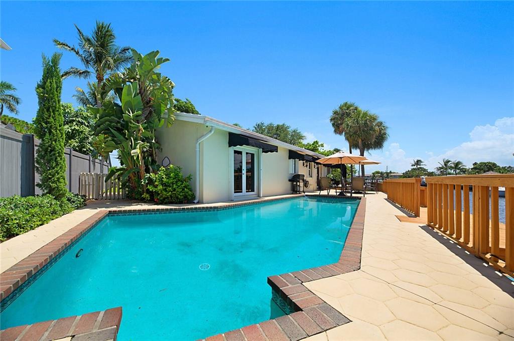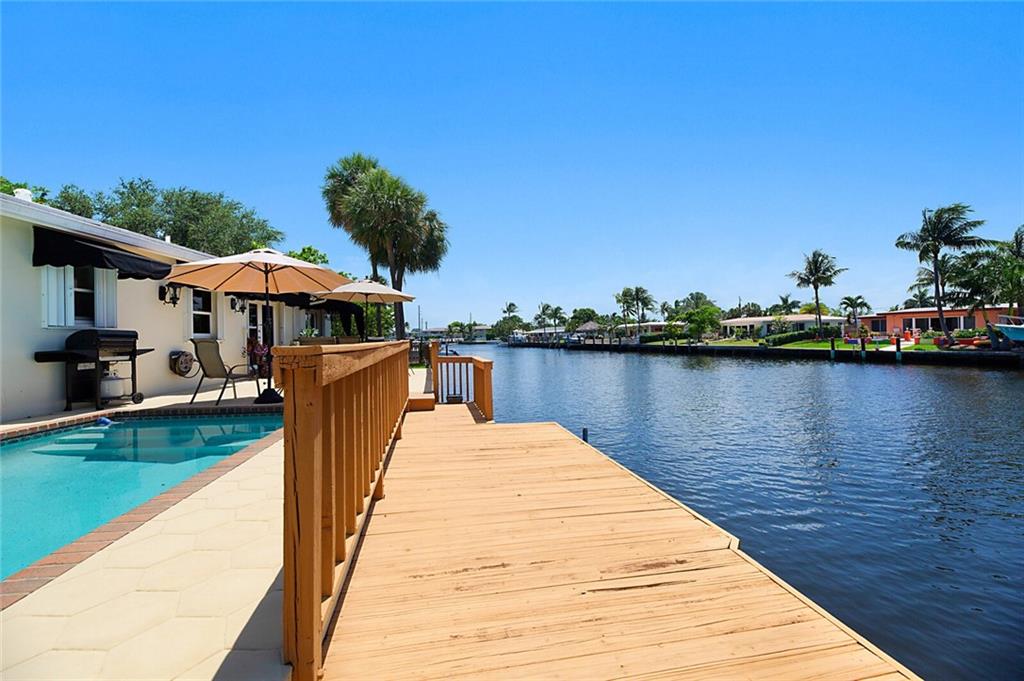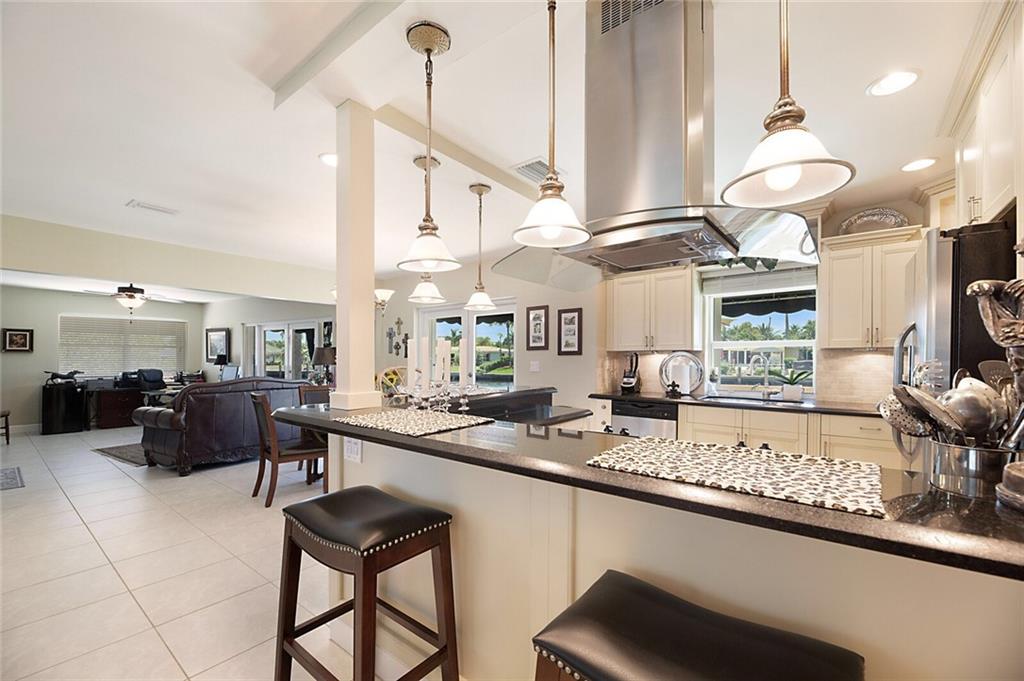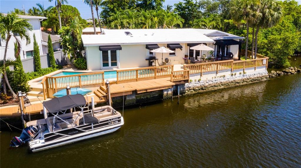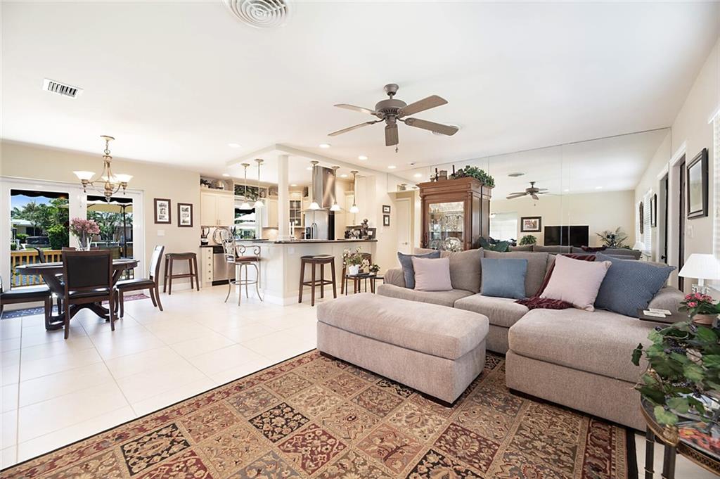 Adorable 3 bedroom, 2 bath home on 95 feet of beautiful canal front. The third bedroom has been opened up to the living spaces and makes for a great office/den with water views. The home is on a beautifully landscaped lot and located in a quite secluded neighborhood with lovely homes around it. Large 2 car garage offers plenty of storage. Enjoy true Florida lifestyle in your back yard with a sparkling pool, cool breezes, and amazing views.
