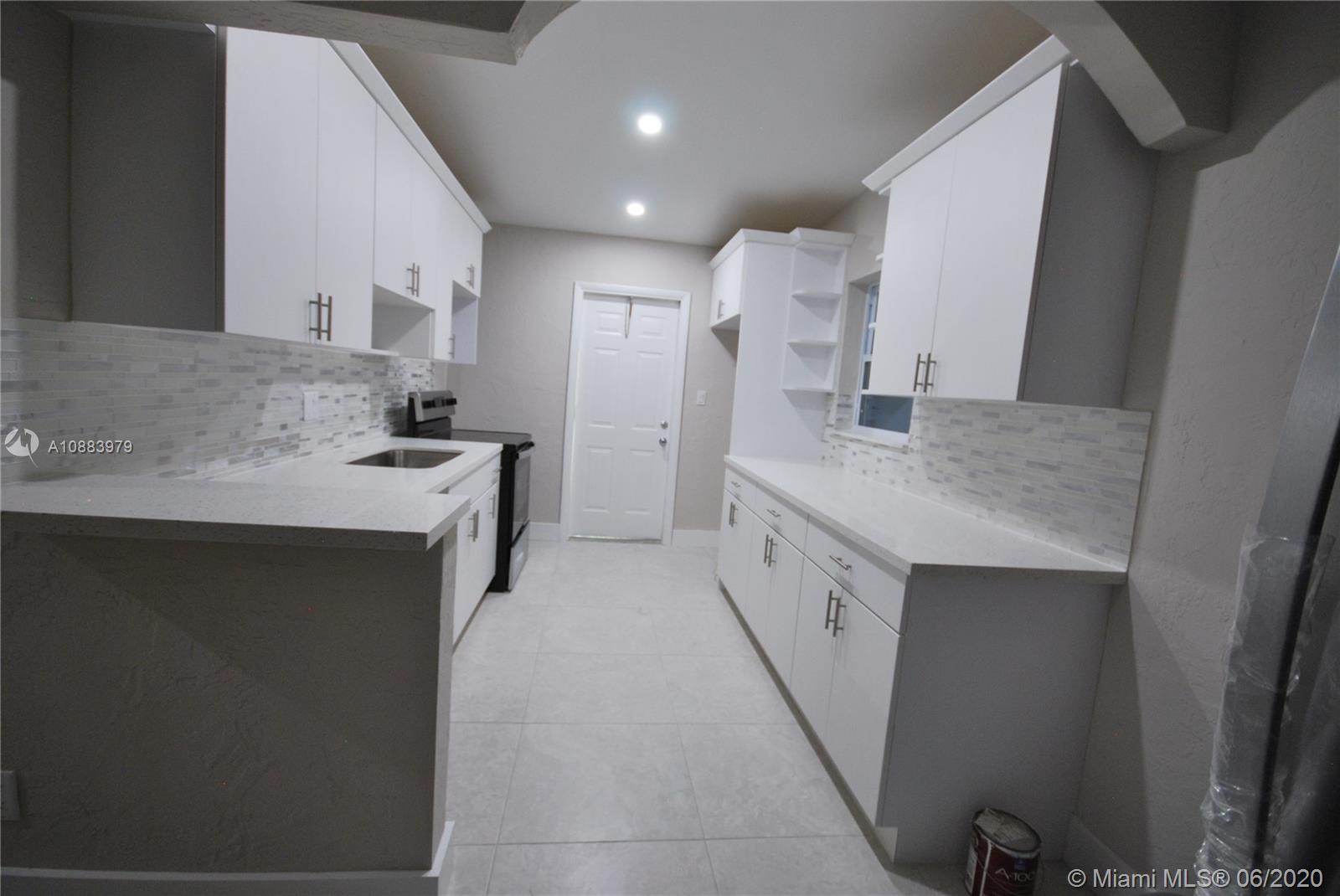 UPDATED HOME INSIDE AND OUT. BRAND NEW KITCHEN W/QUARTZ COUNTER TOPS AND BRAND NEW STAINLESS STEEL APPLIANCES. BRAND NEW BATHROOM. ACCORDION HURRICANE SHUTTERS. HUGE FENCED YARD FOR THOSE WEEKEND BBQ's. NICE AREA MINUTES TO I-95/AIRPORTS,SHOPPING. WASHER/DRYER ROOM IN BACK OF HOUSE