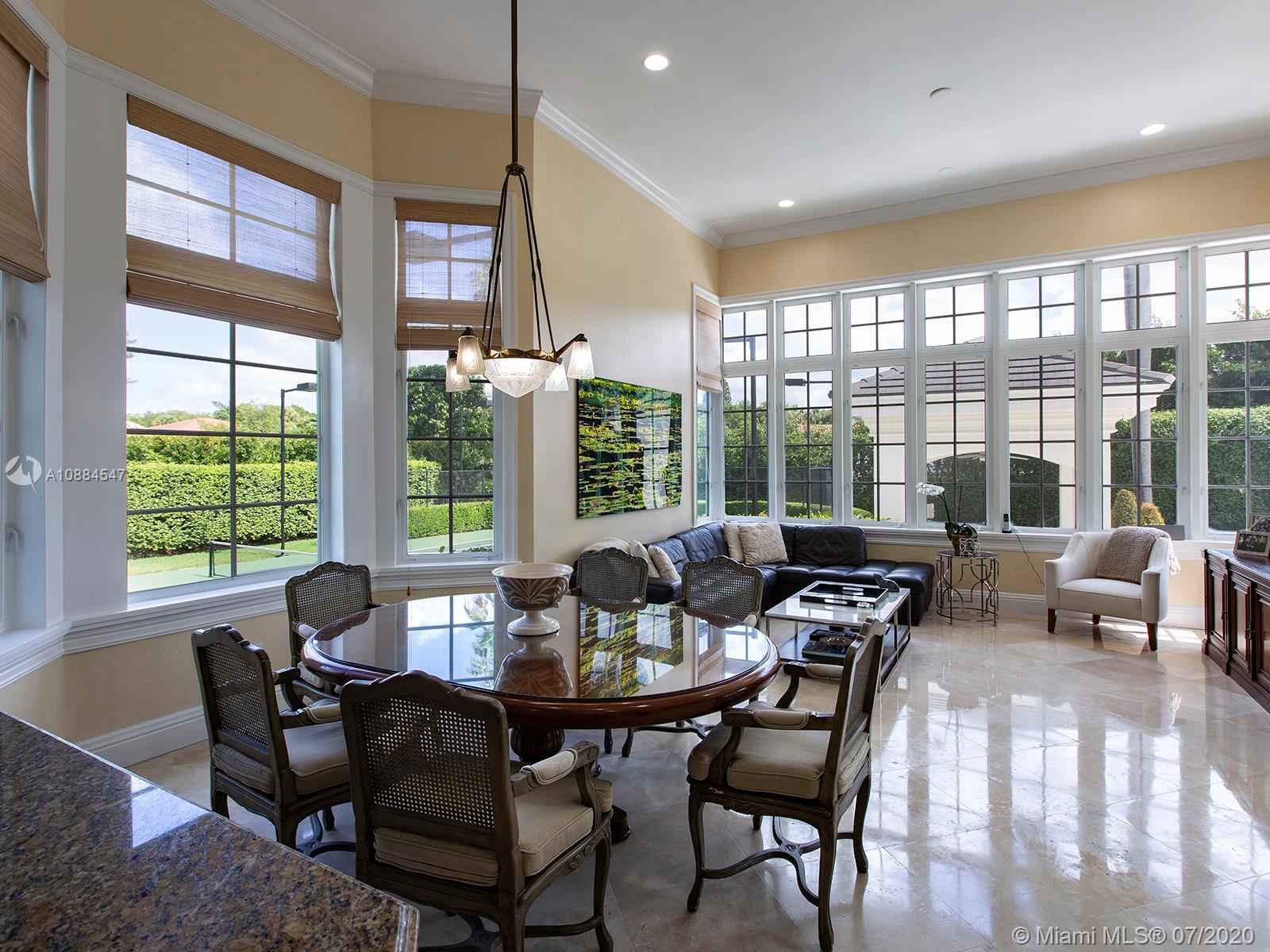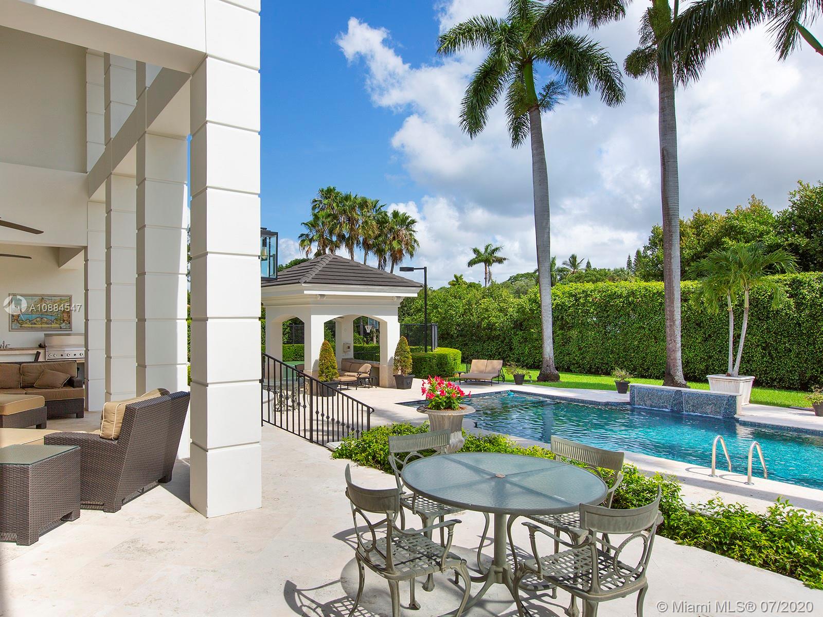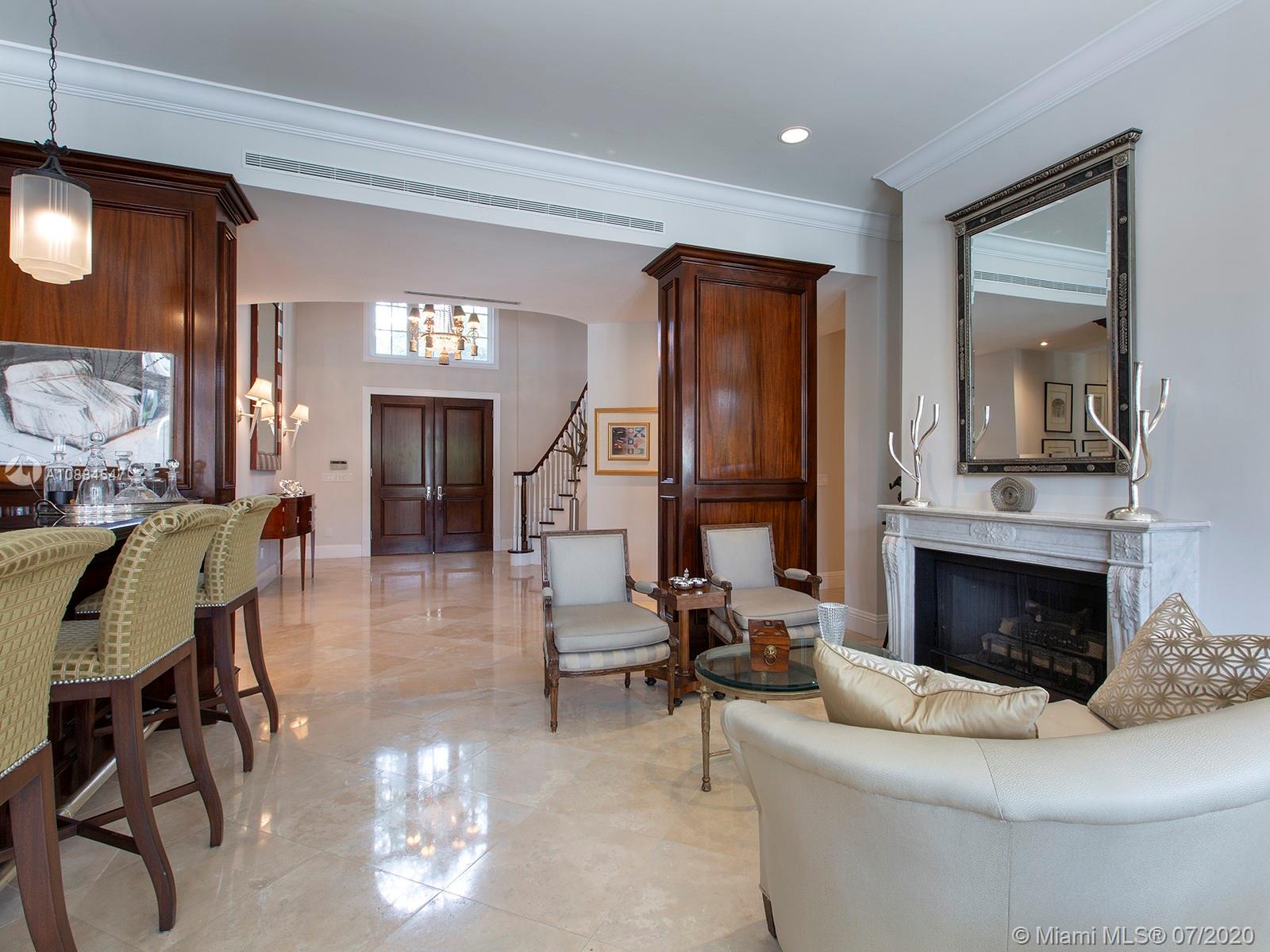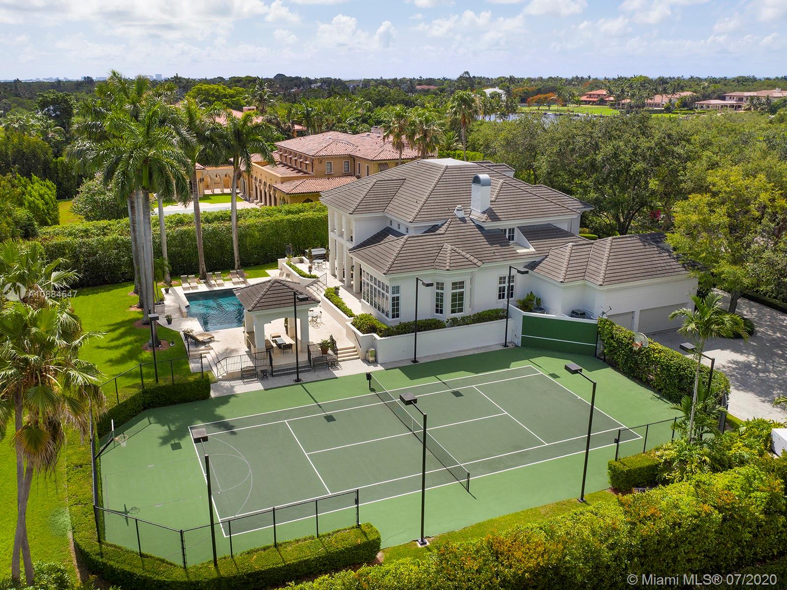 Within the secure confines of renowned Gables Estates sits this Architectural Masterpiece. The finest of contemporary finishes and a flowing floor plan featuring three staircases sets this home apart. Recently updated with new roof, heated pool and spa bathrooms. Gleaming marble floors a polished mahogany bar and built-ins combine to make this a perfect home for family and entertaining. The downstairs master retreat features 20’ ceilings, separate his and her closets and bathrooms with a steam shower. Towering French doors lead to the estates grounds. Elevated terraces guide you to a stunning heated pool, spa and a lit tennis court. Executive office, gym and media room in addition to 6 spacious on suite bedrooms. Featured in Florida Architecture. A generational Opportunity for your family.
