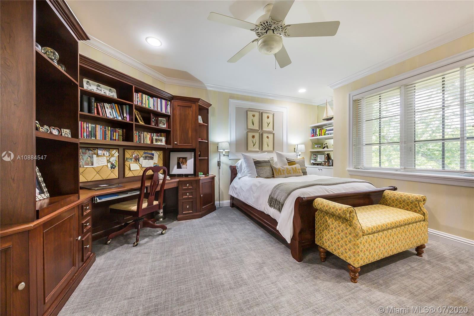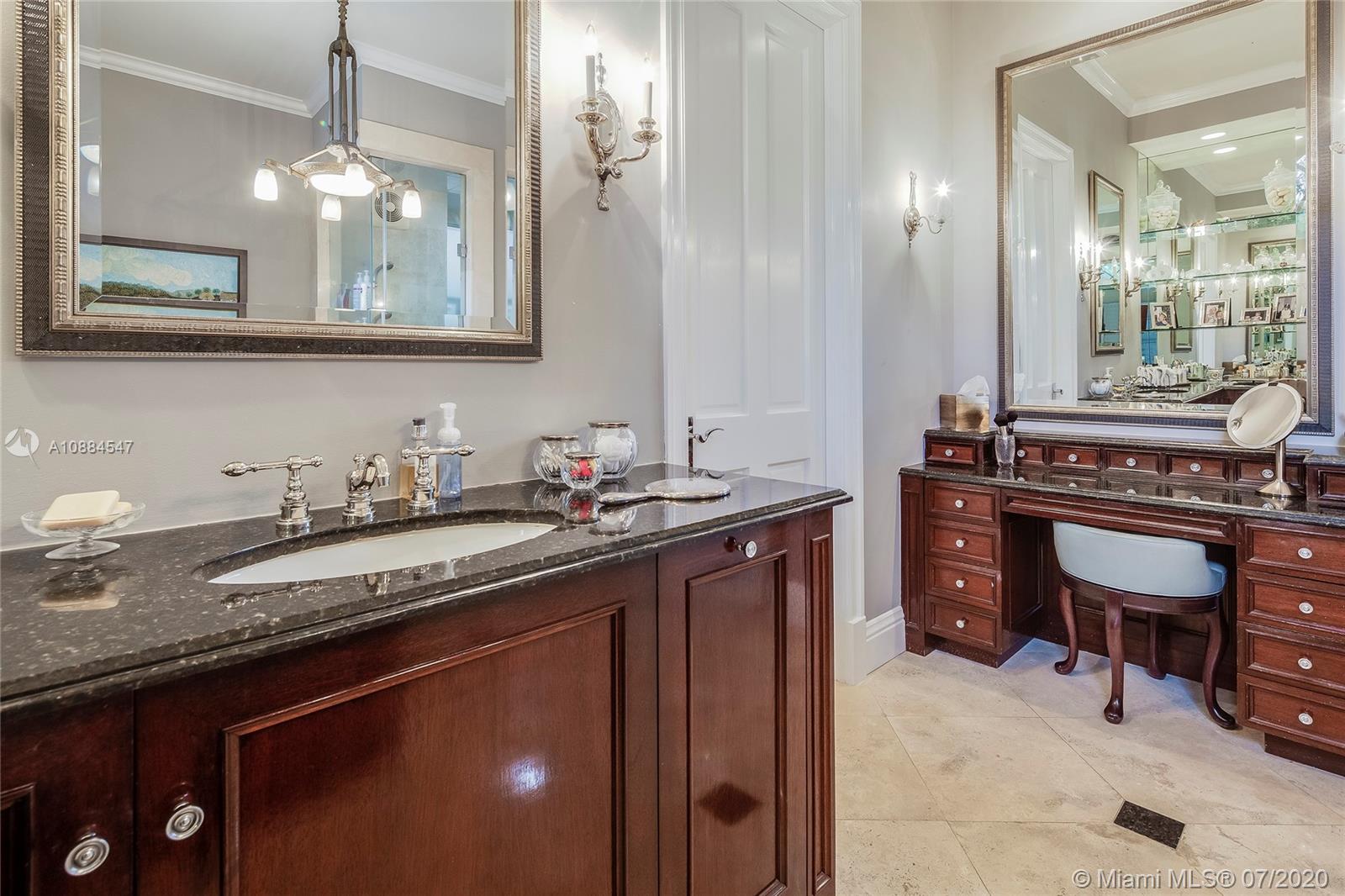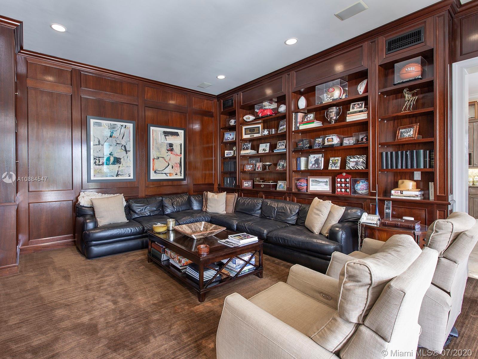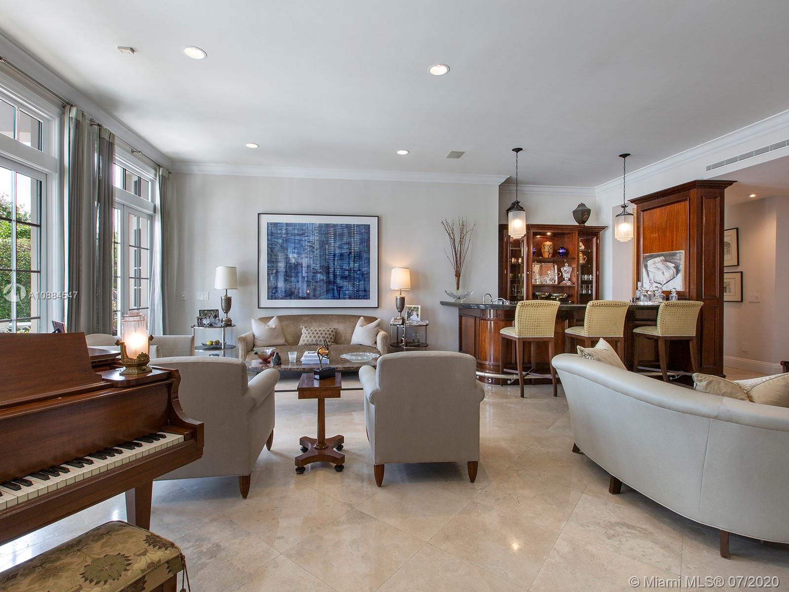 Within the secure confines of renowned Gables Estates sits this Architectural Masterpiece. The finest of contemporary finishes and a flowing floor plan featuring three staircases sets this home apart. Recently updated with new roof, heated pool and spa bathrooms. Gleaming marble floors a polished mahogany bar and built-ins combine to make this a perfect home for family and entertaining. The downstairs master retreat features 20’ ceilings, separate his and her closets and bathrooms with a steam shower. Towering French doors lead to the estates grounds. Elevated terraces guide you to a stunning heated pool, spa and a lit tennis court. Executive office, gym and media room in addition to 6 spacious on suite bedrooms. Featured in Florida Architecture. A generational Opportunity for your family.