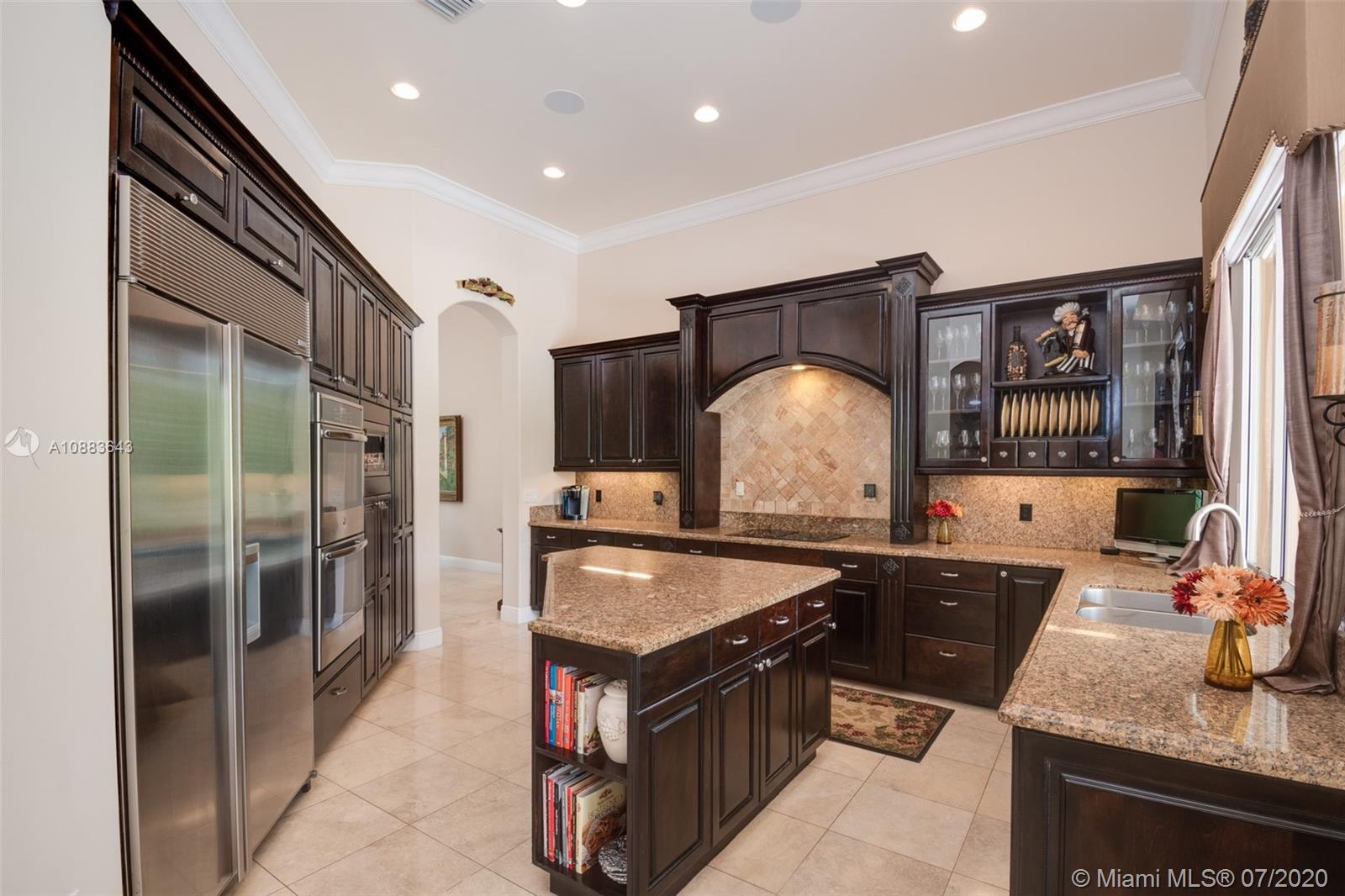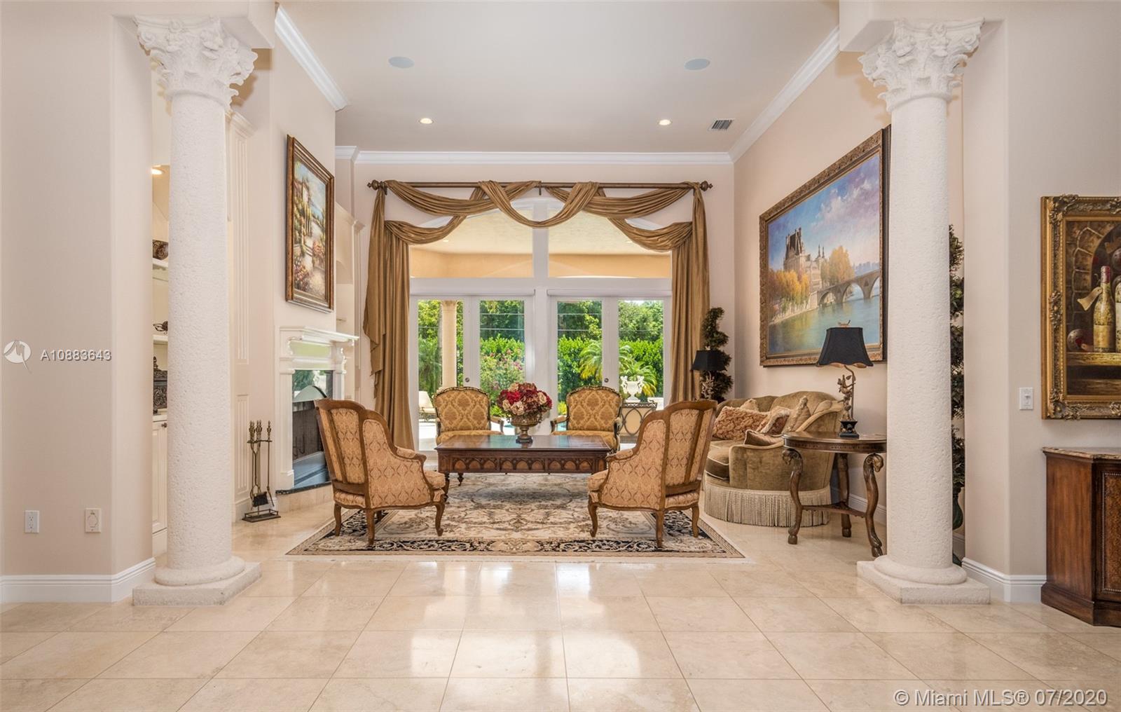 This custom Kenner gated estate sits on an acre lot surrounded by a canopy of lush trees, exuding elegance. Enter this European-style home via your circular Chicago brick driveway adorned with a beautiful fountain. This sophisticated residence features exquisite marble floors throughout, crown molding, and expansive living room with French doors bringing abundant natural light. The owner's suite wing located on the south side features a spacious en-suite bathroom, large walk-in closet, and office. The north wing of the split floor plan offers plenty of space for everyone and a second family room. The main family room comes with a bar and leads to the chef’s kitchen and breakfast area. Step out into the oasis and enjoy your own private putting green and renovated pool with travertine deck.