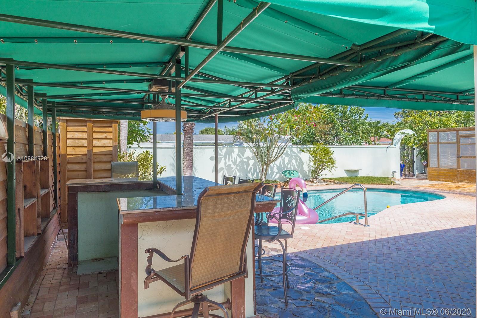 This beauty features 3/4’’ red oak wood floors, knockdown texture walls, crown moulding and recessed lights. Late 2019 remodeled gourmet kitchen w/ green granite counter tops, wood cabinets and top of the line appliances. Large master w/ cedar walk-in closet and Honey Maple John Louis Home Organizers. Resort like pool area w/ heated self filling pool, jacuzzi, Kegerator ready wet-bar w/ granite and copper finishes, 16x8 aviary, fish pond and large canopies for shade. Storm ready w/ impact windows, ROLLADEN shutters and whole house propane generator. In addition, above code 50 year S-tile roof, 13 layer insulated flat roof, PVC sewer and supply lines, cedar fence w/ cooper trim, 4’ CBS retaining wall, 6’ CBS concrete wall, cooper gutters, RV parking w/ electric hookup and wrought iron gate.