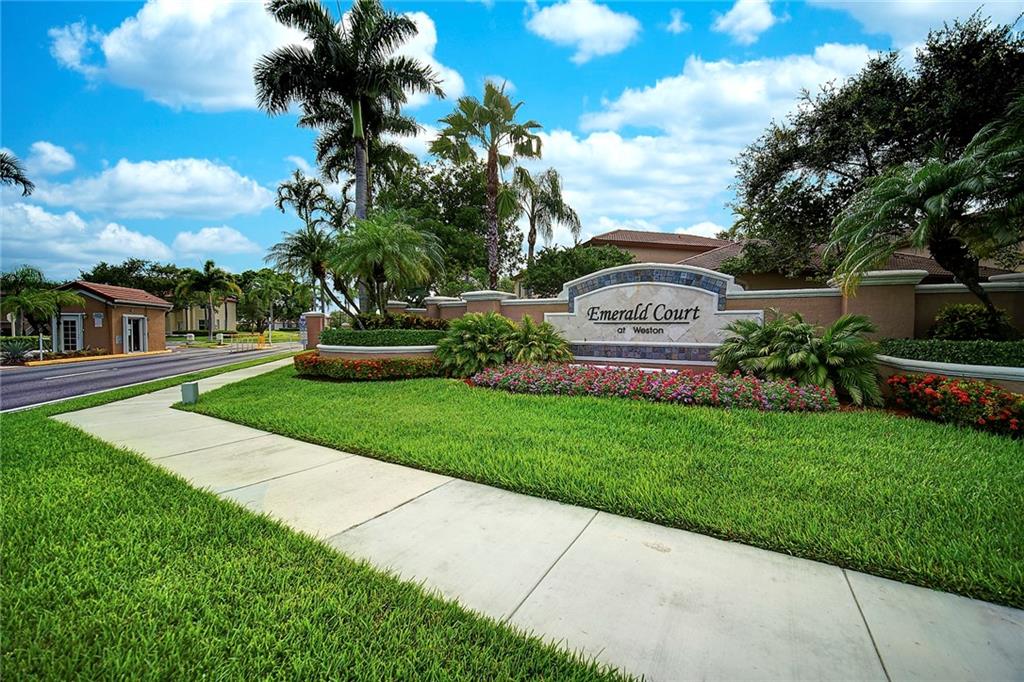 Welcome Home To This Perfect Townhouse Located in GATED Emerald Courts in the Heart of Weston! This TOTALLY Updated 3 Bedroom, 2.5 Bathroom CORNER Unit Has IMPACT Windows & Doors, Kitchen Has Granite Countertops & Newer Stainless Steel, Newer Washer/Dryer, Breakfast Nook, HUGE, Open Floorplan with LARGE Family Room, Fenced Patio With Travertine Pavers & Turf, Extra Large Exterior Storage Unit, Master Bedroom Has Newer Laminate Flooring, AMAZING Custom Closet, Guest Bathroom Redone with Travertine Shower. Community Pool/Clubhouse/Gym Within Walking Distance, Guard Gated Community & So Much More!