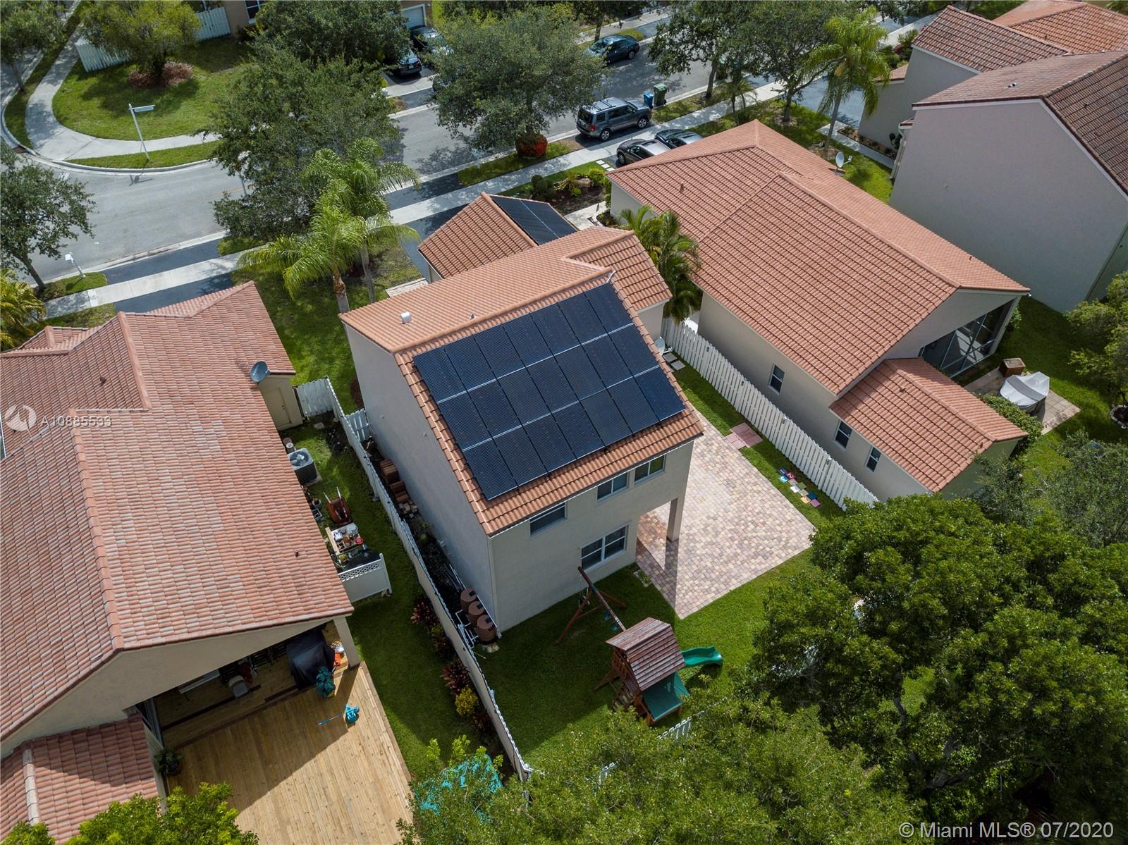 One of the largest floor plans in The Falls, a two-story with 3 bedrooms and 2.5 bathrooms is on the search for a new family. This Updated model, with lots of natural light, features a large living room with 18ft ceilings, formal dining and family room. Open kitchen with granite countertops. NEW ENERGY EFFICIENT ROOF WITH SOLAR PANELS and more.. Freshly painted. Tile floors and Brand new grey carpet just installed in second story. All bedrooms upstairs. Large Master bedroom with walk-in closet. All bathrooms were just updated. Fenced Large Yard. Excellent Floorplan For Entertaining! Steps away to common Swimming Pool surrounded by the lake, Playground, and sports courts. New Washer and Dryer. Walking distance to A+ Rated Schools, Restaurants, Shops, and Parks! Easy and Ready To Show!