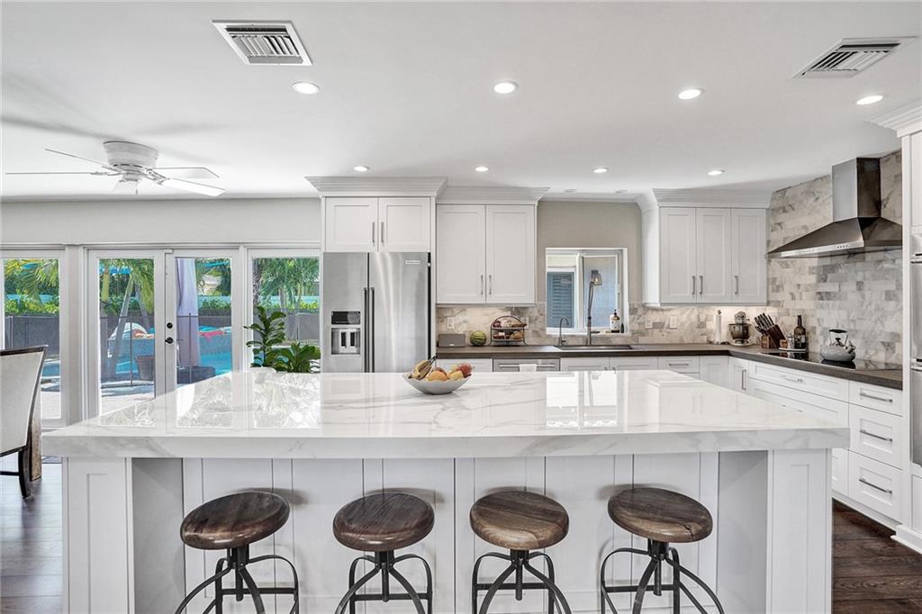 Beautifully designed 4 bedroom 4 bathroom residence with 3,668 square feet under air. Bright and open living space with plenty of natural light. Impact windows and doors! All 4 bathrooms have been completely gutted and are just stunning. Gourmet kitchen will blow you away with the massive Island and tons of cabinetry. The nicest pantry you've ever seen. Wood flooring in living areas and bedrooms. Huge master suite with sitting area and ample closet space. Secondary bedrooms are huge. Tons of storage space! Private fenced-in backyard with heated salt water pool plus additional grass area in front of home. Located in Bayview Elementary school district. This home is a must see.