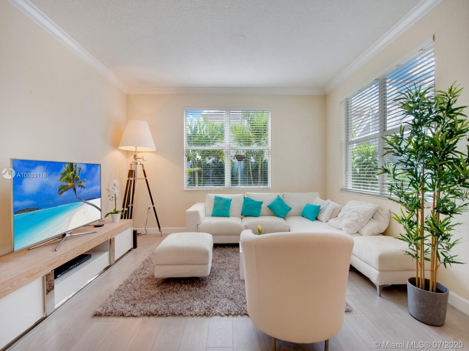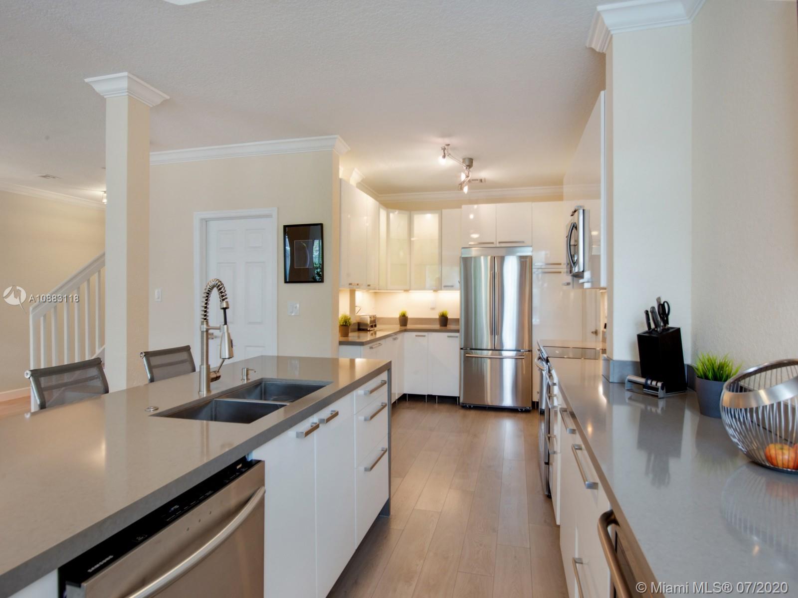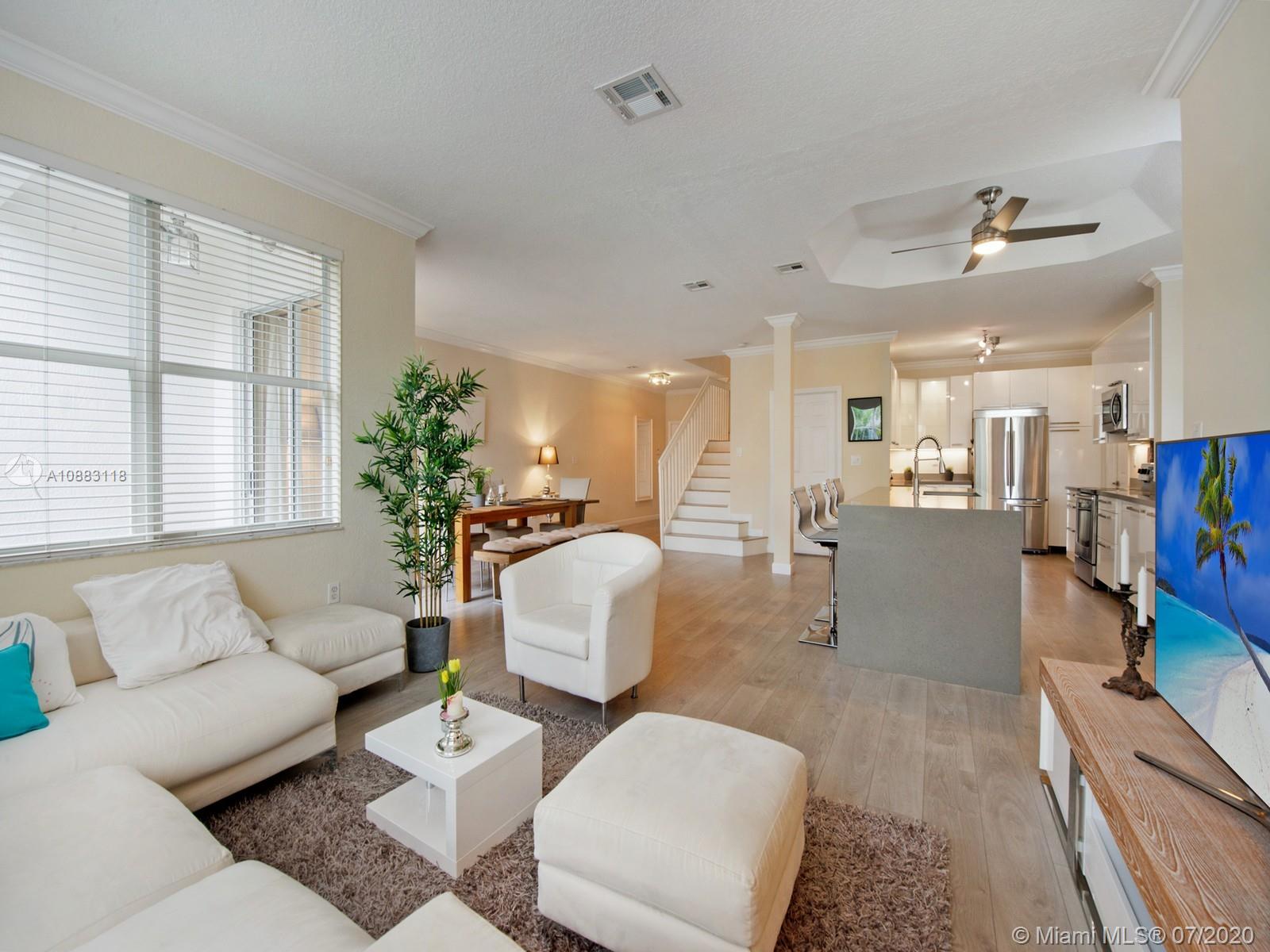 Stunning open spaces for this entirely remodeled & freshly redesigned home. Neutral tones & light grey wood floors bring a sense of well-being & serenity. Enjoy a glass of wine at the bar w your friends while cooking or spend time relaxing in the peaceful green outdoor patio. Large pantry room & dedicated laundry room on your way to the 2 car garage. Up through the elegant white wooden staircase, a pleasant foyer accommodates a large yet invisible built-in linen closet. The spacious & relaxing Master BR gives way to a bright bathroom w double vanities, shower & whirlpool tub. Three comfortable bedrooms complement the 2nd floor along w/ a 2nd bathroom featuring a tub. Enjoy the world-class amenities of famous Doral Isles Club - pools, spas, tennis, basketball courts & gym. Priced to sell.