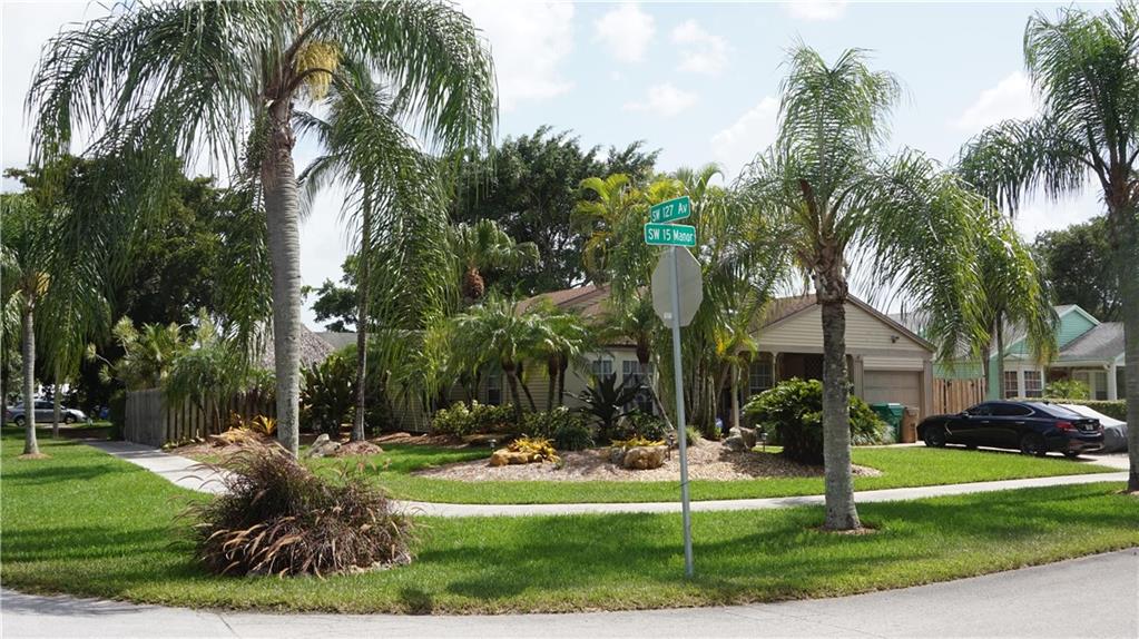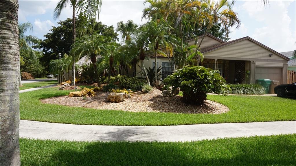 Entertainer's paradise! Move right in nothing to do! Upgrades galore, Over sized corner lot w lg tiki hut, open deck, hot tub, fenced, private lush landscaping! Open floor plan, w converted garage to use as an extra bedroom or office. Entire house has been updated including kitchen with stainless steel Kitchen Aid appliances & soap-stone counter tops. Bathrooms also been updated, new tile flooring throughout house. Master bedroom features custom closets with an updated on-suite bath w plenty of storage inside & out. Laundry room features finished cabinets and includes front load washer & dryer. Best elementary, middle, high schools in Broward! Close to parks, walking & biking trails and houses of worship, lowest HOA in the area , centrally located to major highways for easy commute.