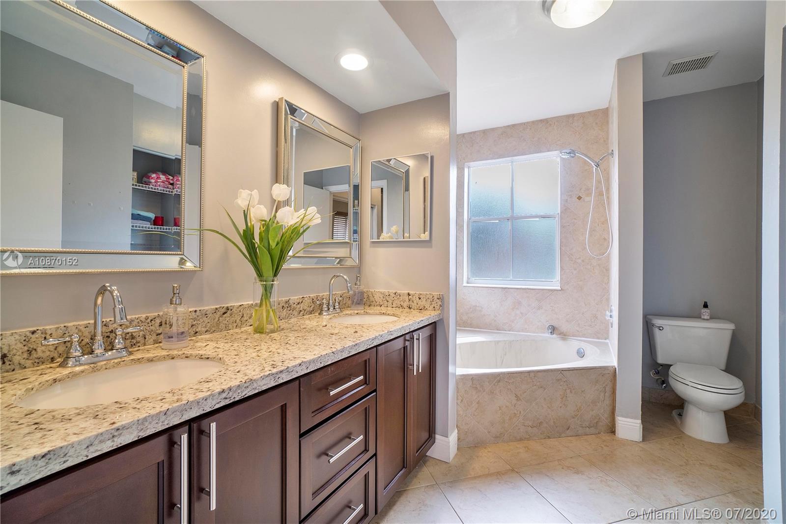 Beautiful 3 bedroom 3 full bath home in private Emerald Hills development of L'ETOILE- One bed room and full bath on first floor, kitchen with granite counter top, stainless steel appliances, tiles in first floor laminated on 2nd floor, huge closets in master bed and plenty of closet space throughout home, roof is original and garage needs repair***THIS PROPERTY IS ELIGIBLE FOR A RENOVATION STYLE LOAN*** community gym&pool-Low HOA fee, that includes basic cable & HBO,tot lot for kids to play -quiet and safe neighborhood-walking distance from house of worship-close to school major highway& beach