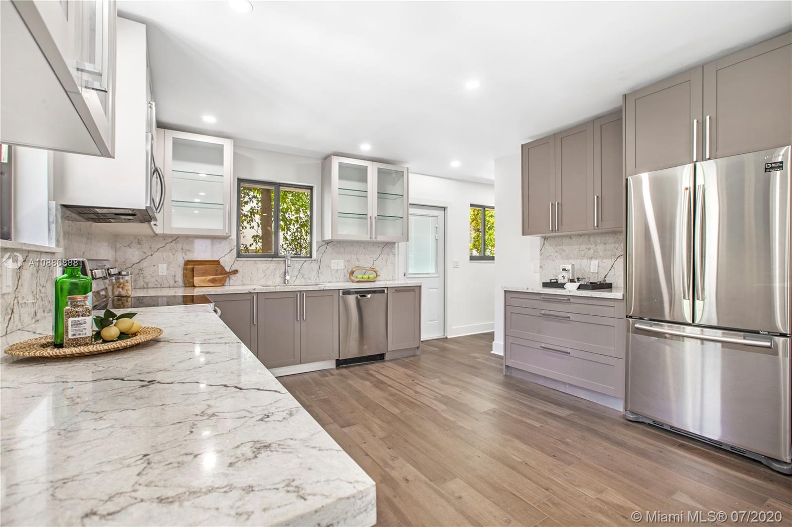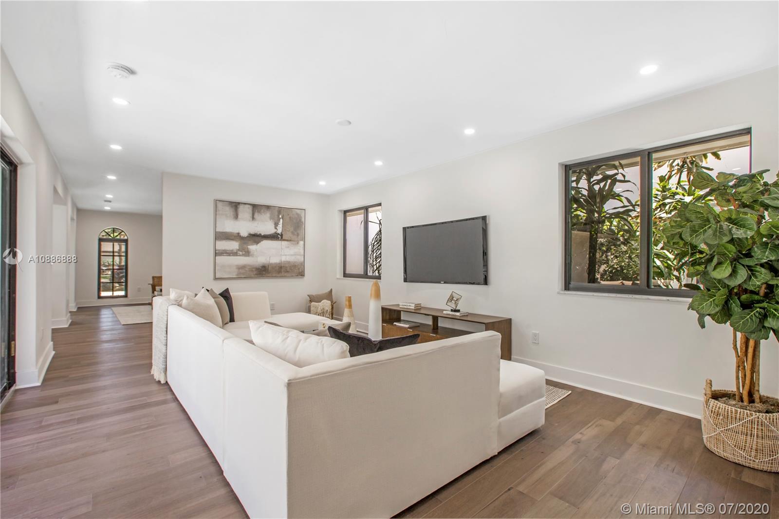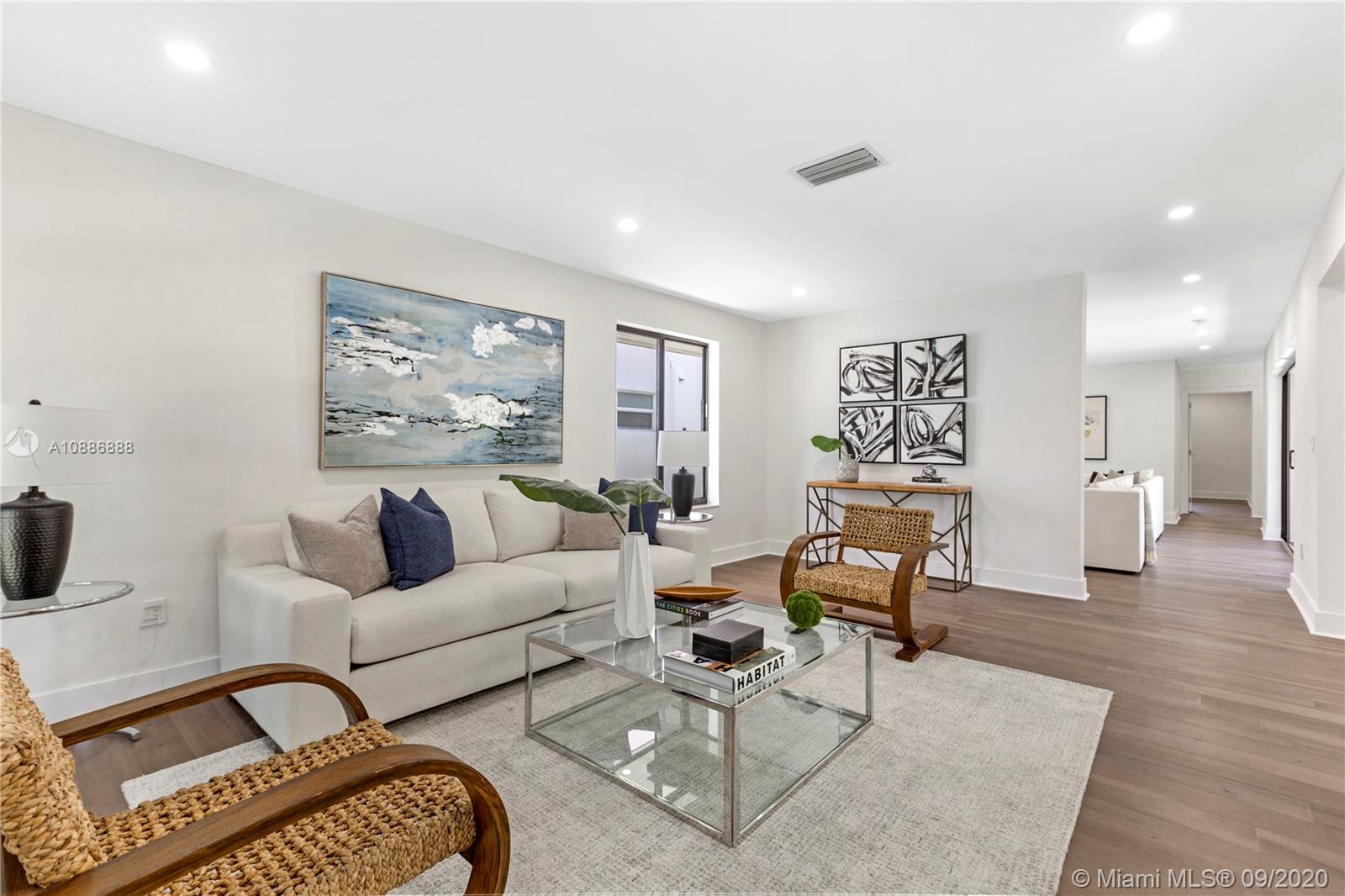 Remarkable single-family house in of Coral Gables best neighborhoods. Fully renovated and professionally designed. New Kitchen, baths, flooring, PVC Plumbing, AC, and updated electrical. Impact windows and doors. Inviting courtyard patio with wet bar. A must-see.