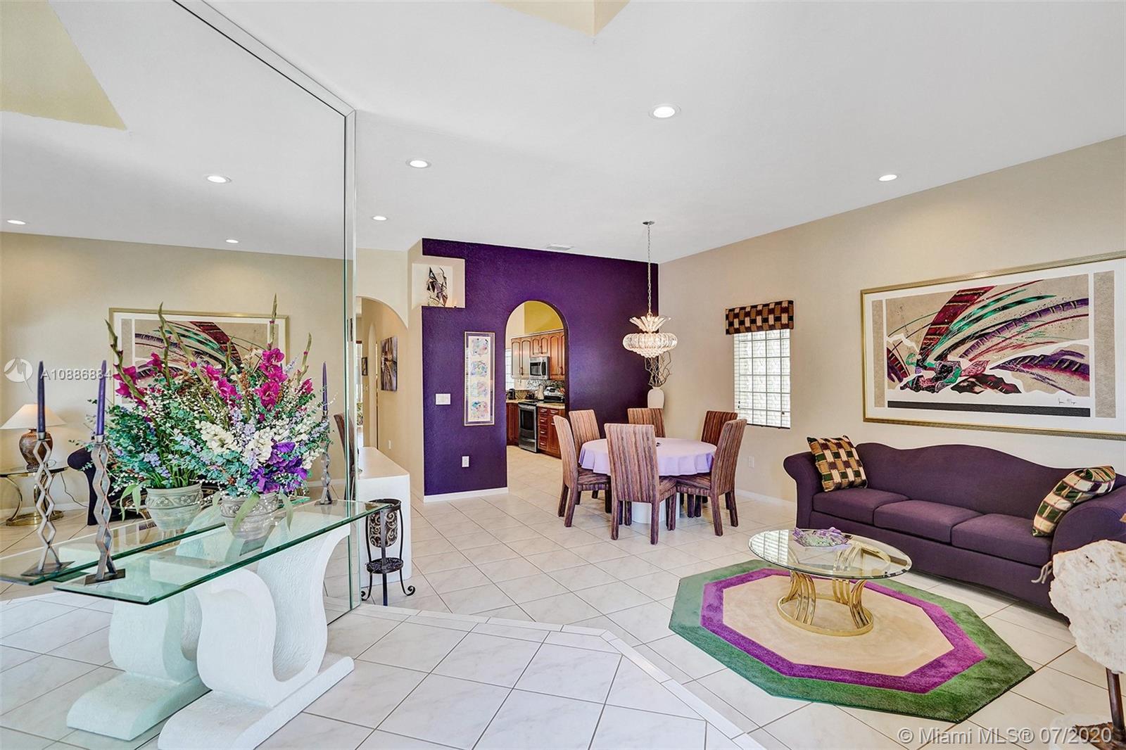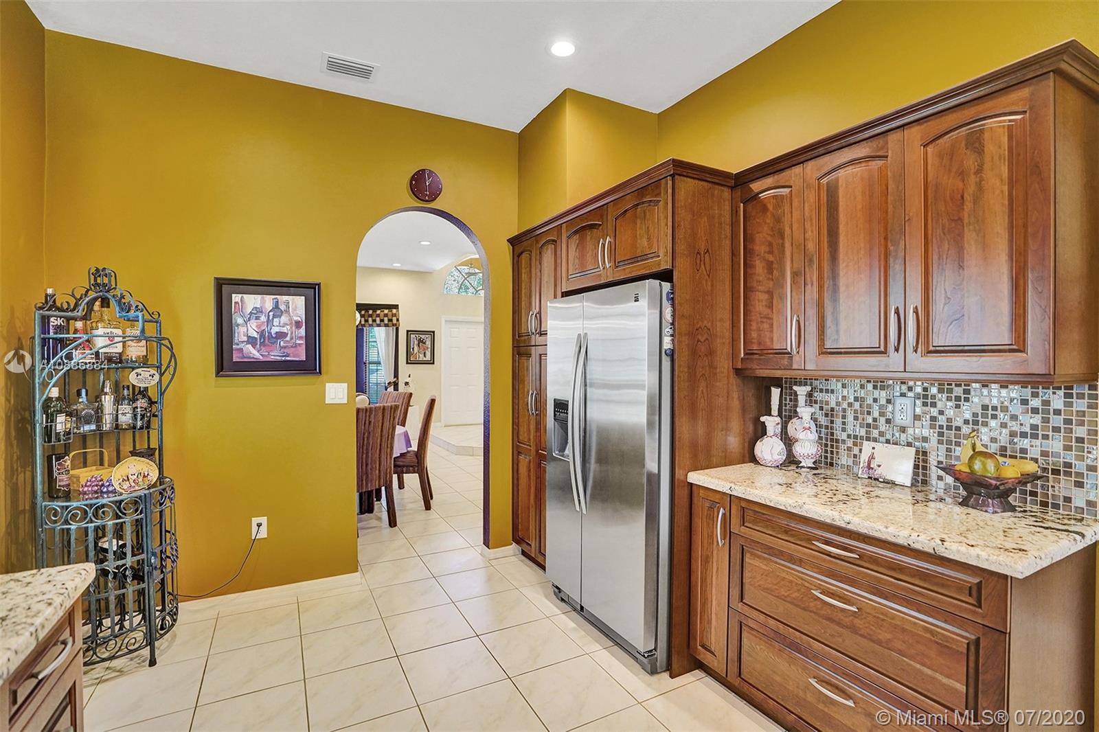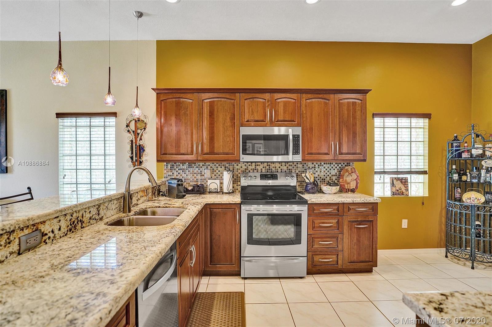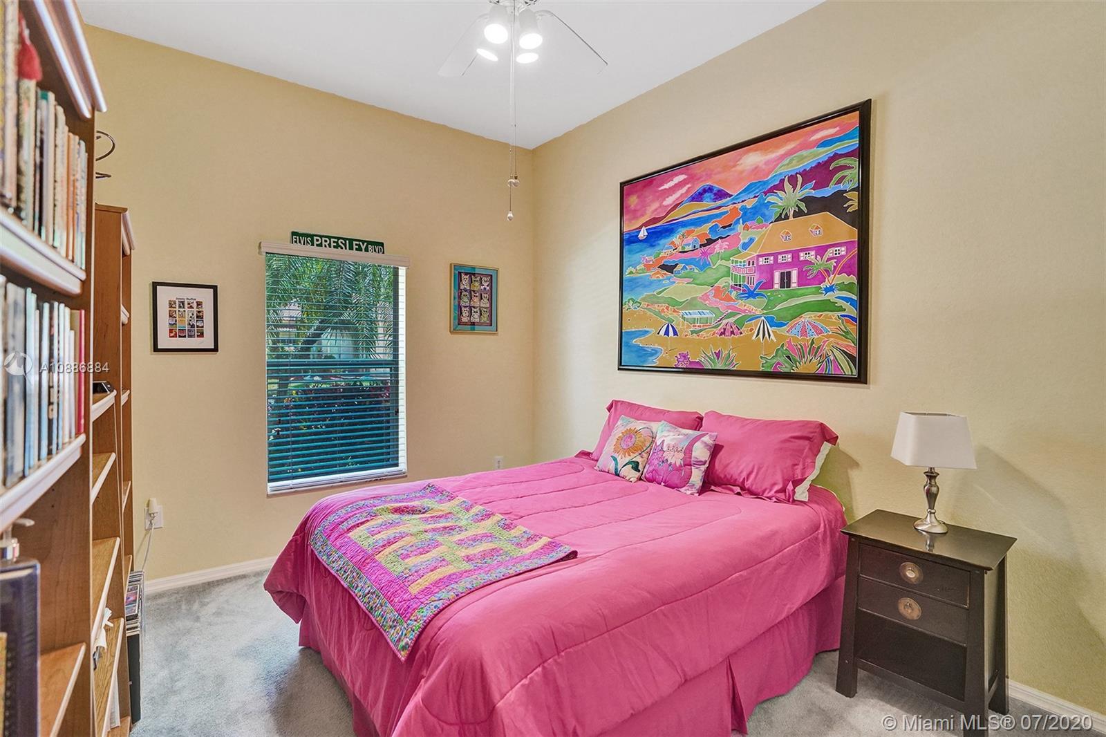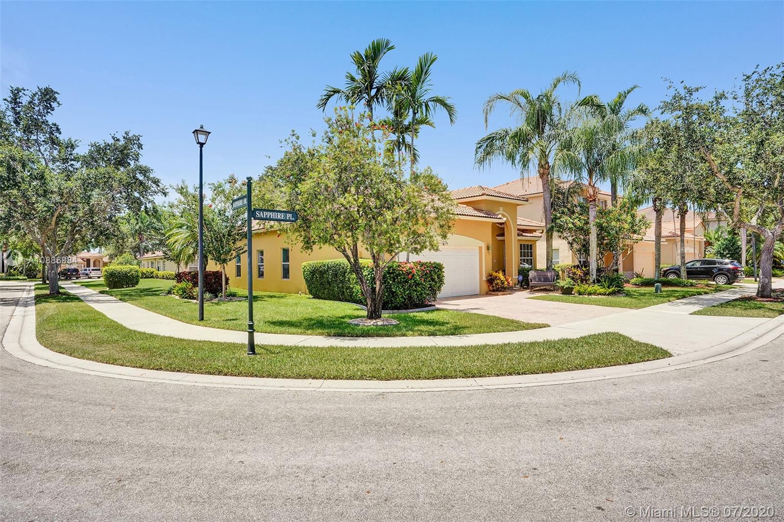 Builder modified 3 Br + Den; ideal for nursery, office or exercise. Meticulously kept home on fantastic corner lot with option to fence. Unique & spacious floor plan boasting 10 ft ceilings, updated interior shows pride of ownership featuring a recent custom-built, maple wood & cherry finish kitchen cabinetry with deep storage, soft close & pull-out drawers, beautiful stone counters & stainless appliances. New bathrooms, quality wood cabinetry, stone counters, hardware & tile work. Additional features include; Led lights in the living area, blown glass light pendants, blinds, storm panels, impact garage & front door, 1 year old exterior paint. Best amenities; pool, gym, 24/7 gated access & security. Maintenance includes lawn irrigation & cutting, cable TV+ Internet @ 1 GB speed