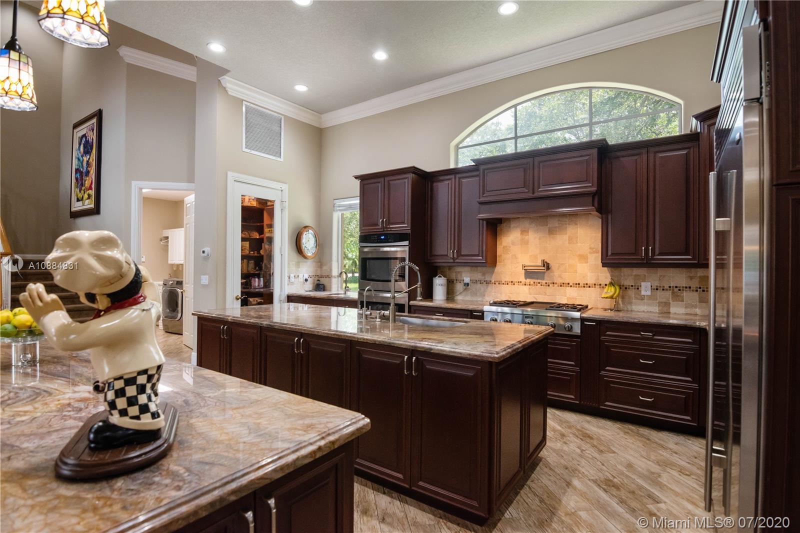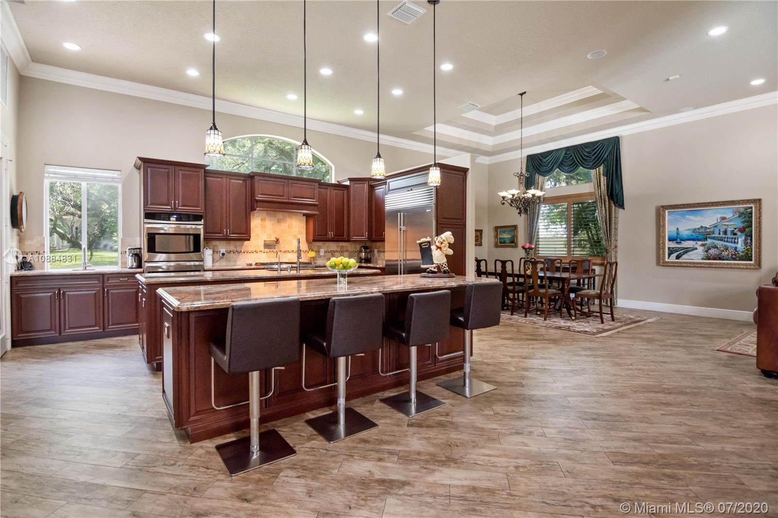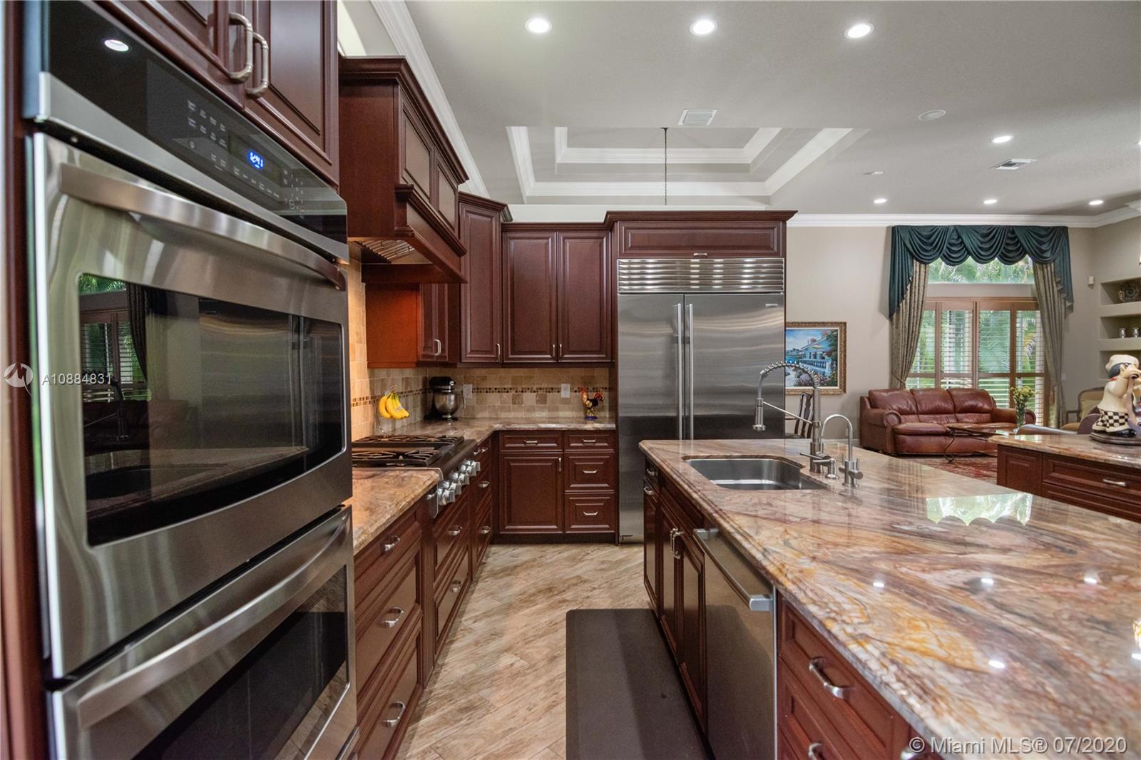 Take the Video Virtual Tour! Live large in Hollywood Oaks on over 1/2 acre in this expansive Mediterranean Villa. Enjoy unsurpassed privacy and serenity. An enclosed tropical courtyard features a pool with panoramic lakeside vistas. The adjacent Guest House has 1 bedroom and 1 bath. The Main House contains 4 bedrooms and 3.5 baths with a recently remodeled gourmet kitchen and culinary-grade appliances, gas range and twin ovens. All-stainless steel island dual-sink, separate countertop bar sink and dishwasher. The formal DR, sunny breakfast alcove and ample bar seating are great for any occasion. MBR suite offers direct courtyard access. Amenities: Gas fireplace, Tray ceilings, Den wall unit with built-in media hub, Multi-room sound system, Bar, Enclosed dog run. Houses of worship nearby.