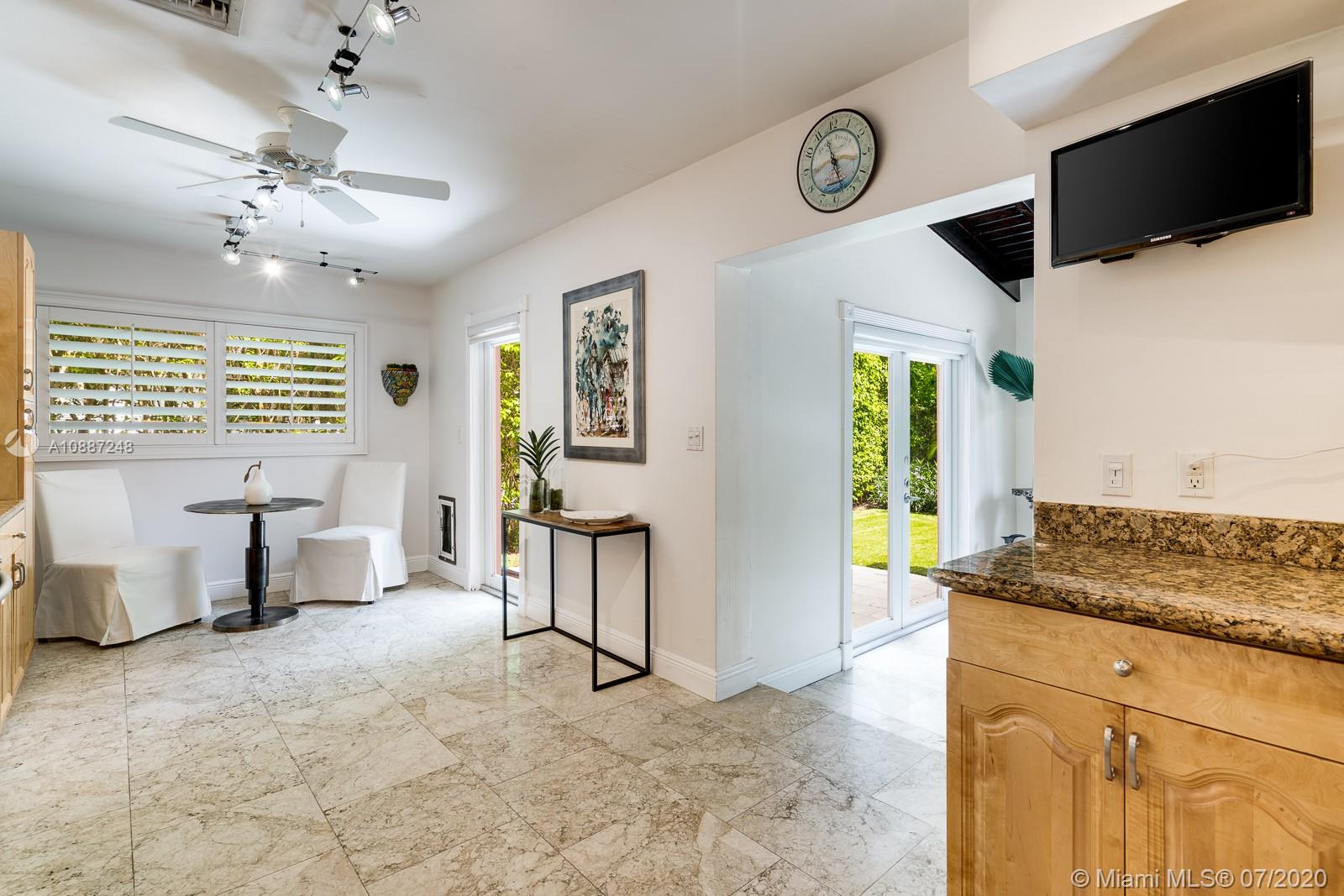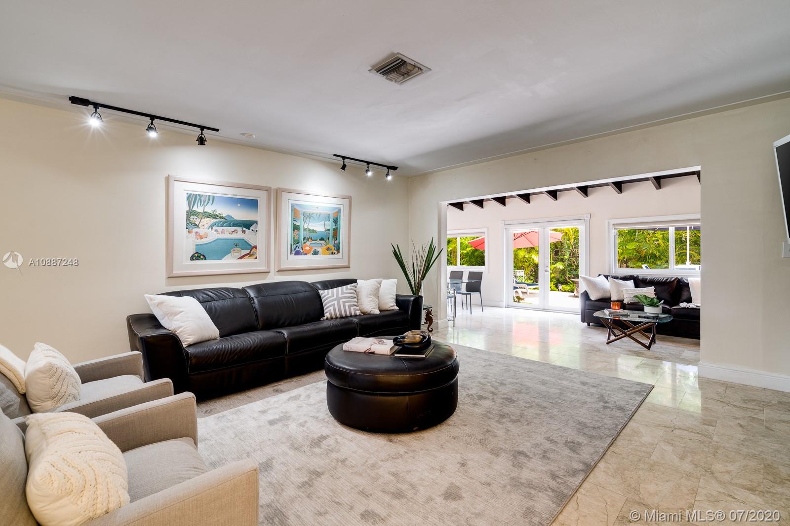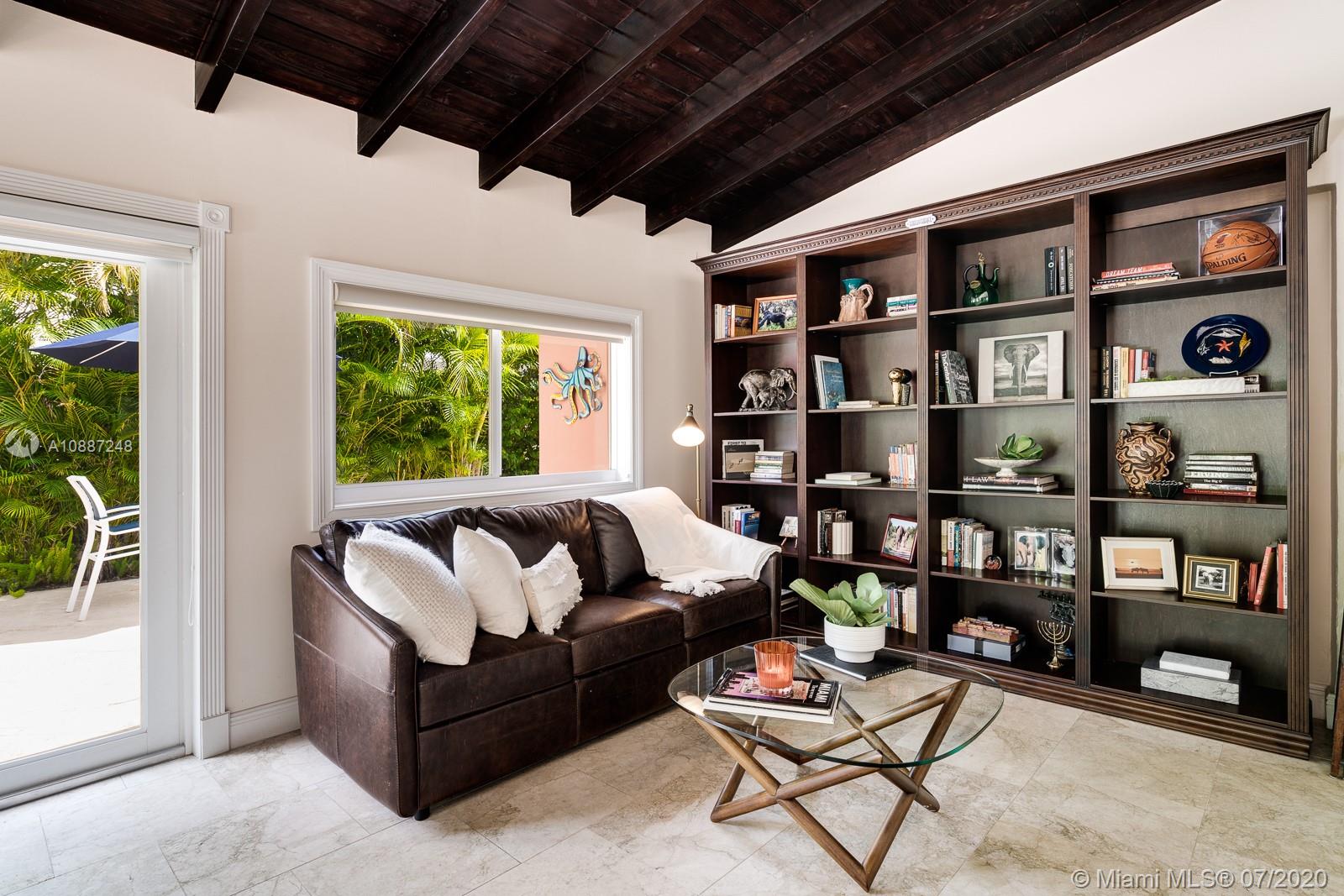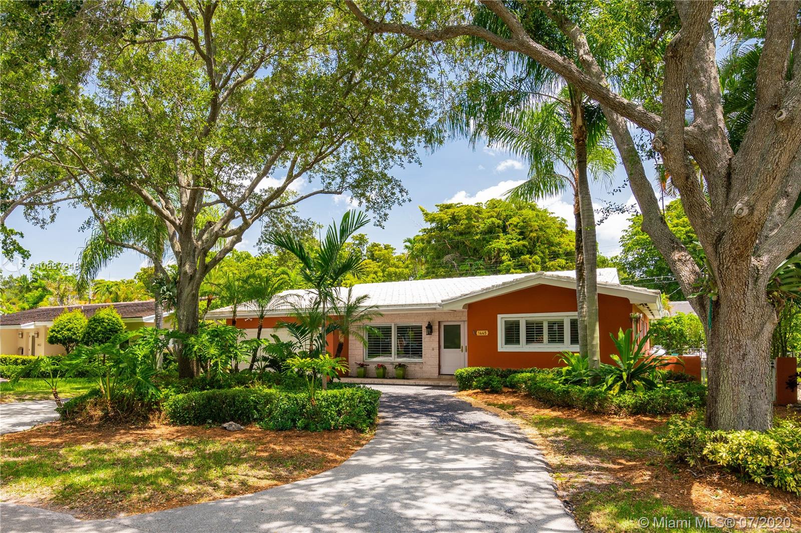 1445 Alegriano is located on a canopied, tree-lined street in beautiful Coral Gables. This tasteful,updated, elegant home is the perfect blend of comfort and style with total square footage of 2629 on the Miami-Dade tax roll. Remodeled in 2005, it is hurricane ready with impact glass and a full home generator! Large, gracious main living spaces with plenty of natural light overlook a charming, private garden.Two-car garage! Warm, wood-beamed ceilings provide a cozy media room. An eat-in kitchen with warm, oak cabinets has plentiful storage and room for a crowd. The bathrooms have been updated with a cool European/contemporary vibe. Two custom closets in the main bedroom. This home provides easy-living in a 10+ location with close proximity to UM. A Very Special Home.
