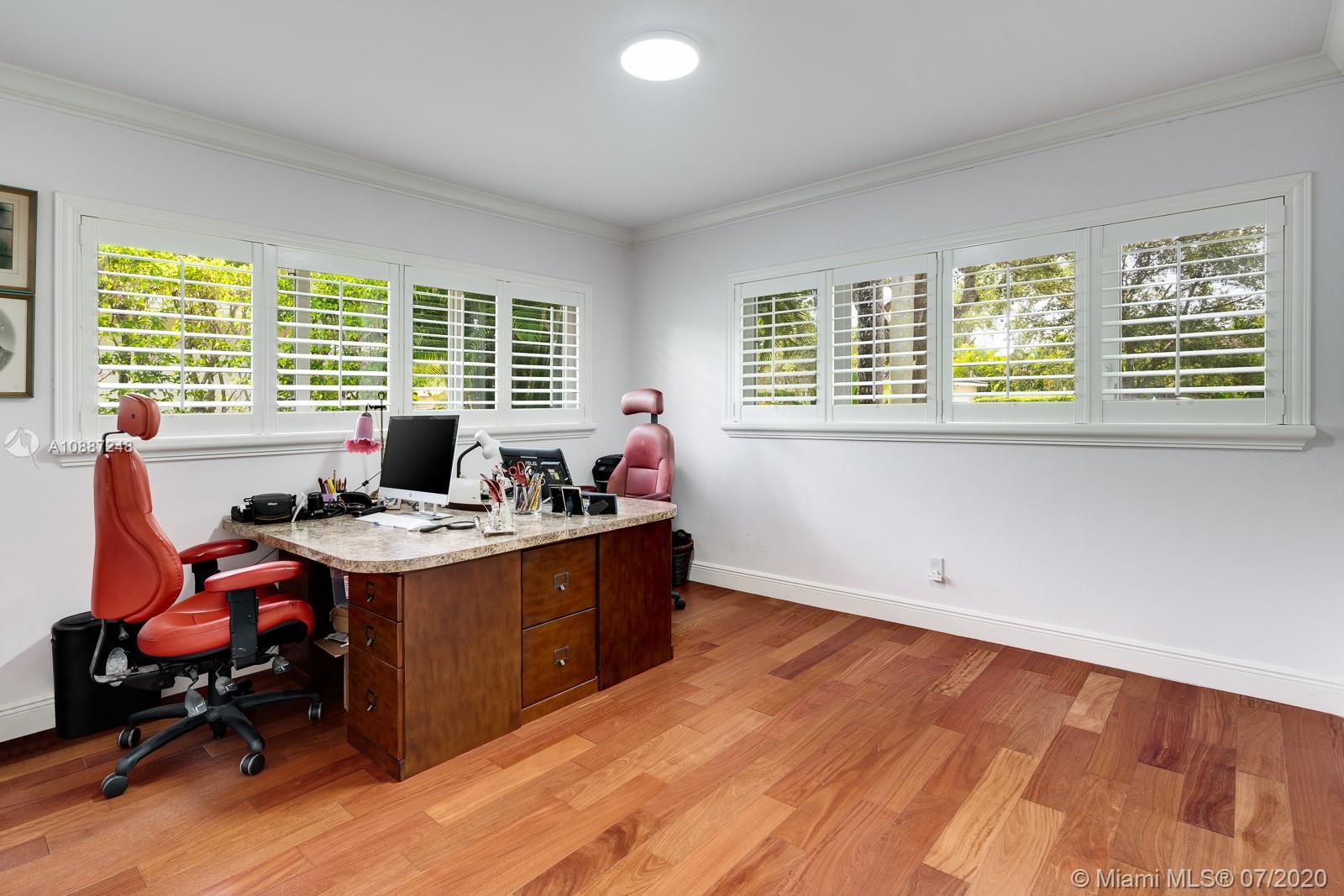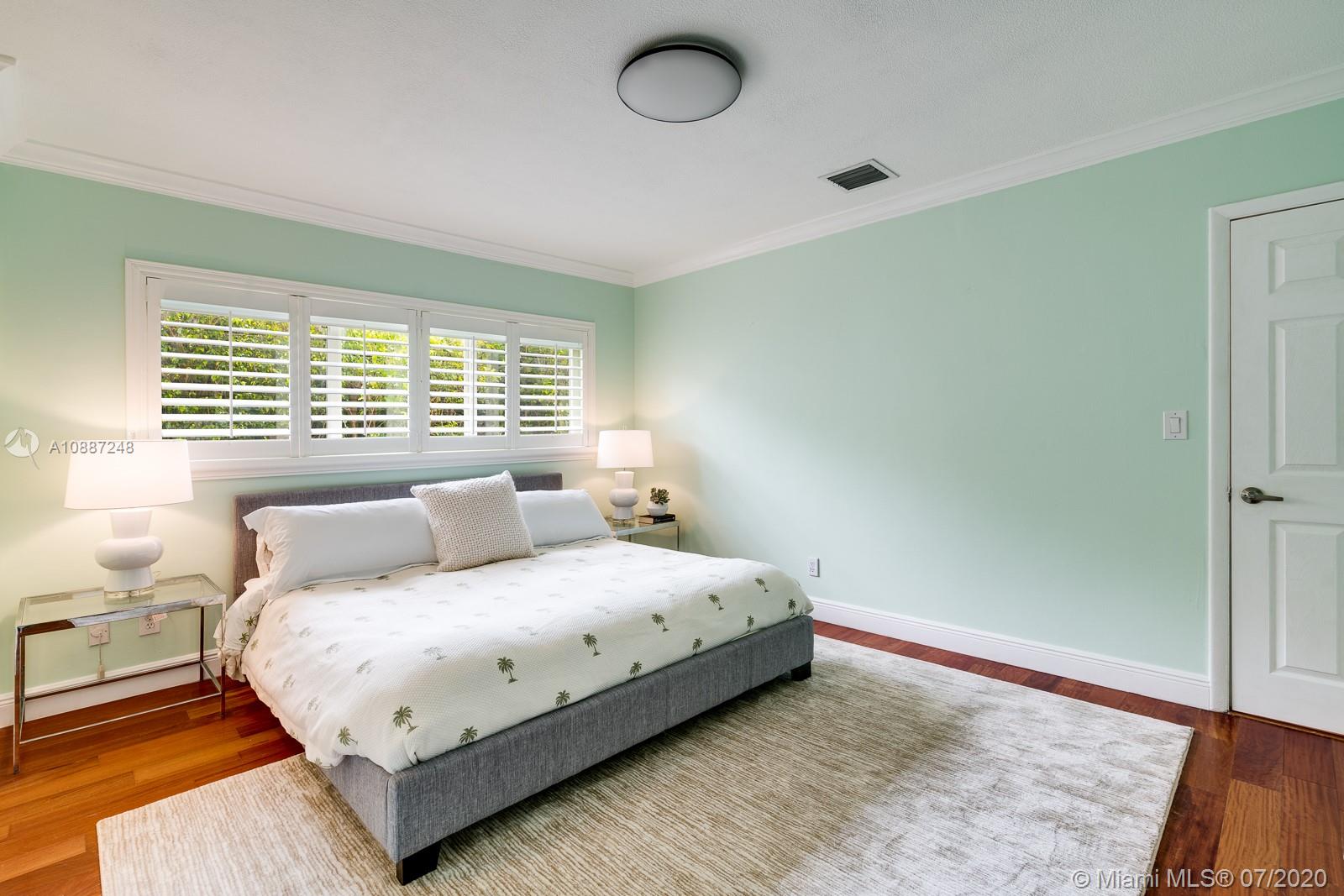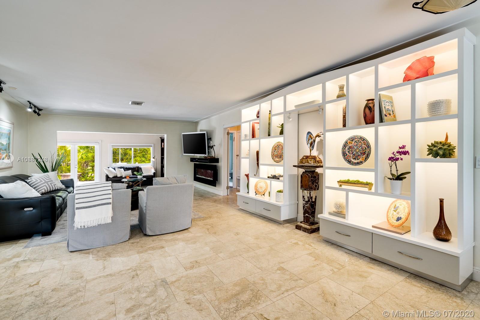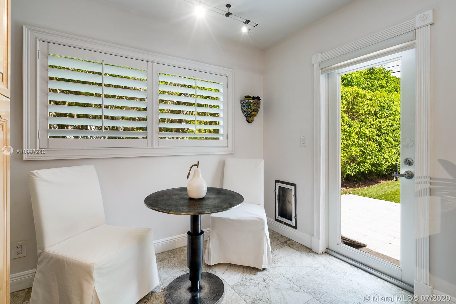 1445 Alegriano is located on a canopied, tree-lined street in beautiful Coral Gables. This tasteful,updated, elegant home is the perfect blend of comfort and style with total square footage of 2629 on the Miami-Dade tax roll. Remodeled in 2005, it is hurricane ready with impact glass and a full home generator! Large, gracious main living spaces with plenty of natural light overlook a charming, private garden.Two-car garage! Warm, wood-beamed ceilings provide a cozy media room. An eat-in kitchen with warm, oak cabinets has plentiful storage and room for a crowd. The bathrooms have been updated with a cool European/contemporary vibe. Two custom closets in the main bedroom. This home provides easy-living in a 10+ location with close proximity to UM. A Very Special Home.