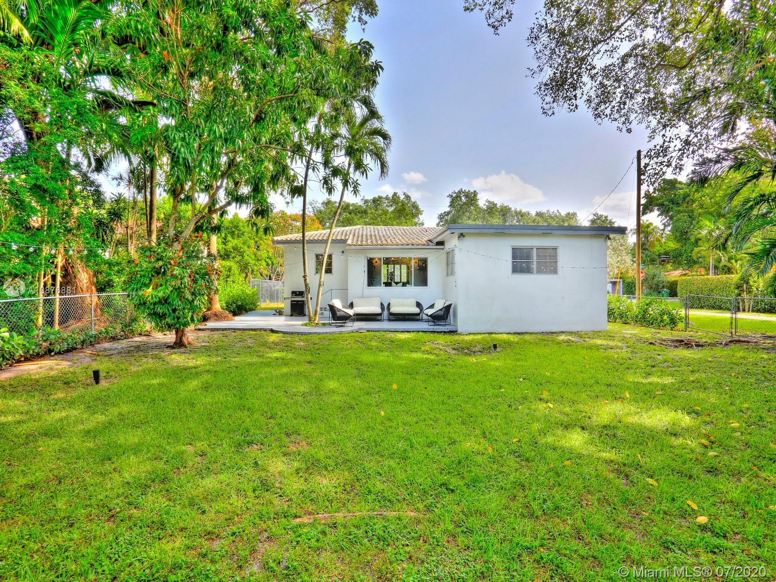 Located in the coveted North Grove, this bright and airy 3 bed, 2 bath home sits comfortably on a large, private corner lot of 8,606 sf. It features original oak floors and millwork throughout. The recently updated kitchen brings modern convenience to this mid-century charmer with new Jenn-Air, Bosch and LG stainless steel appliances. The family room, dining, kitchen, and formal living are all integrated creating a fantastic entertaining area that leads out to the expansive and securely fenced back yard and entertaining patio. Additional features include garage, new high efficiency HVAC system, Nest® thermostat, Ring® doorbell & LED exterior lights. Fully permitted plans for an addition are available for additional cost. Only minutes to the bay, parks, shops and schools of Coconut Grove.