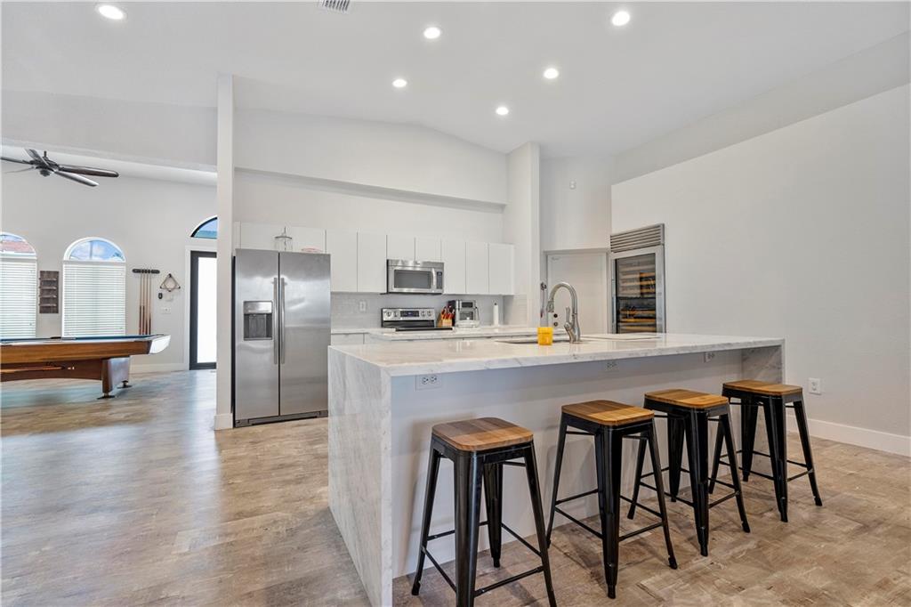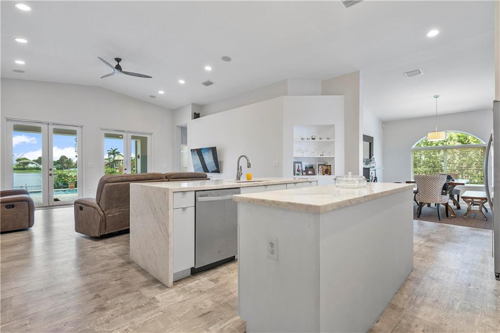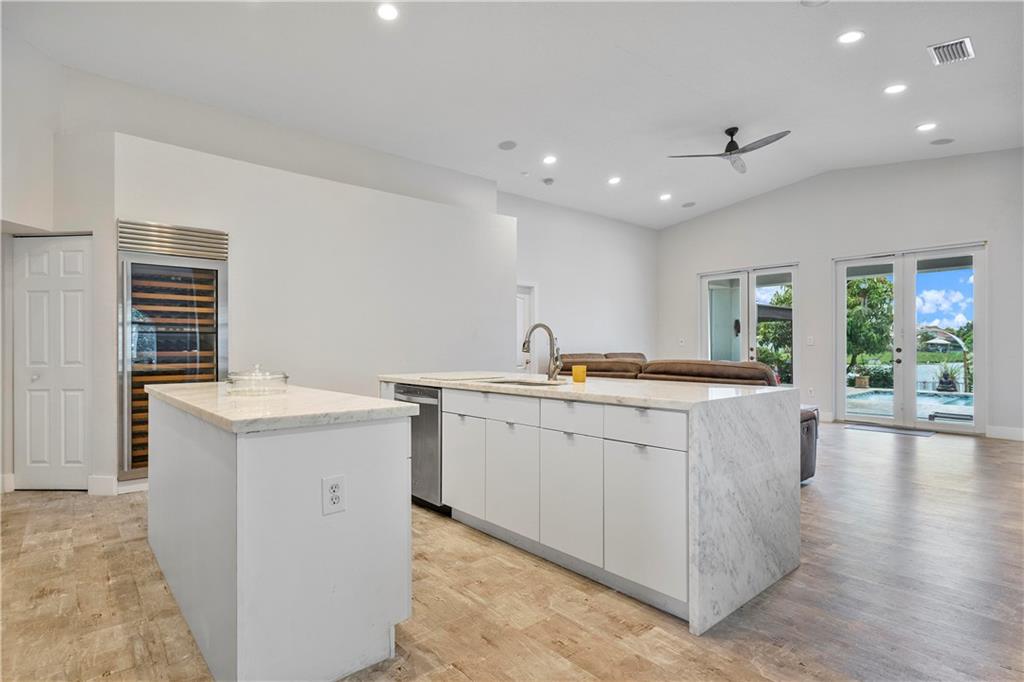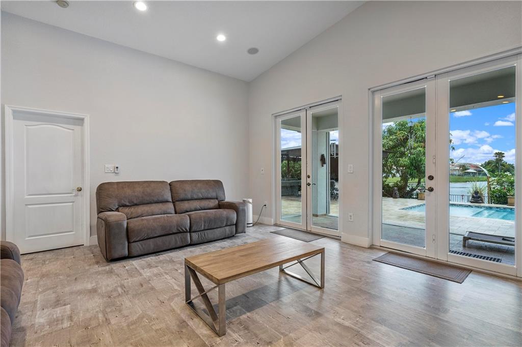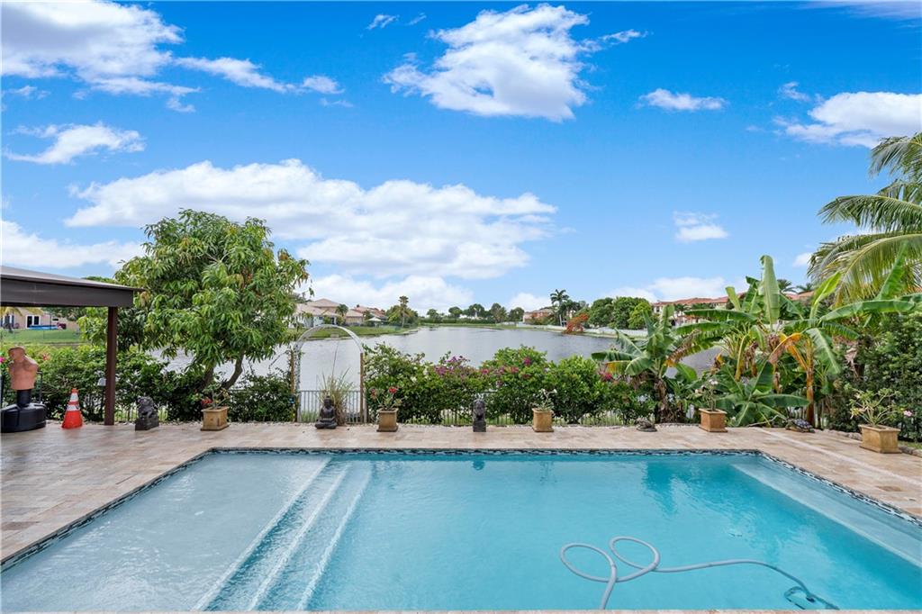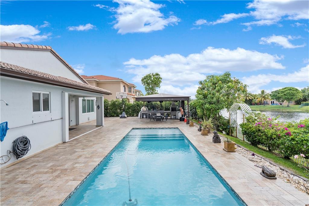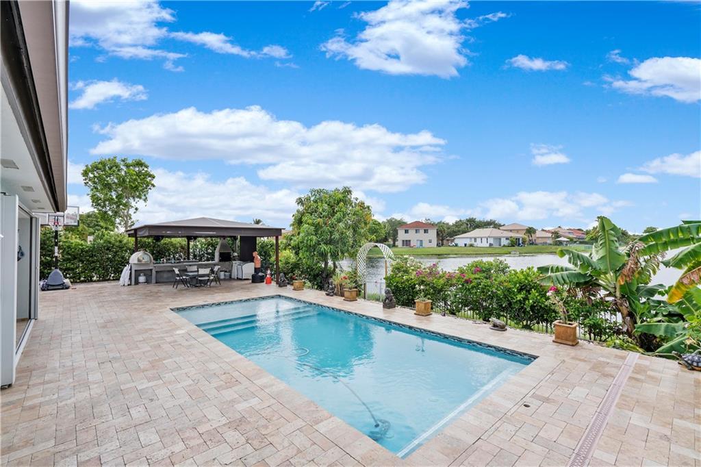 Fully updated lake front home in the gated community of Monte Carlo. Home features 4 bedroom 3 baths and a 2 car garage on large fenced lot. Heated salt water pool featuring a large travertine deck and A full outdoor kitchen featuring a covered area with a concrete pizza oven. The interior has been fully redone including spa like master bath with free standing tub. Water proof laminate flooring. The kitchen has stainless steel appliances with granite counter topS. There is also a mini split unit for the master bedroom. Attic has also been insulated with spray foam keeping the home cool in the summer. Impact windows installed in the entire house and additional accordion shutters on the lanai area. Transfer switch for a generator hookup as well. Walking distance to Coconut Palm Elementary