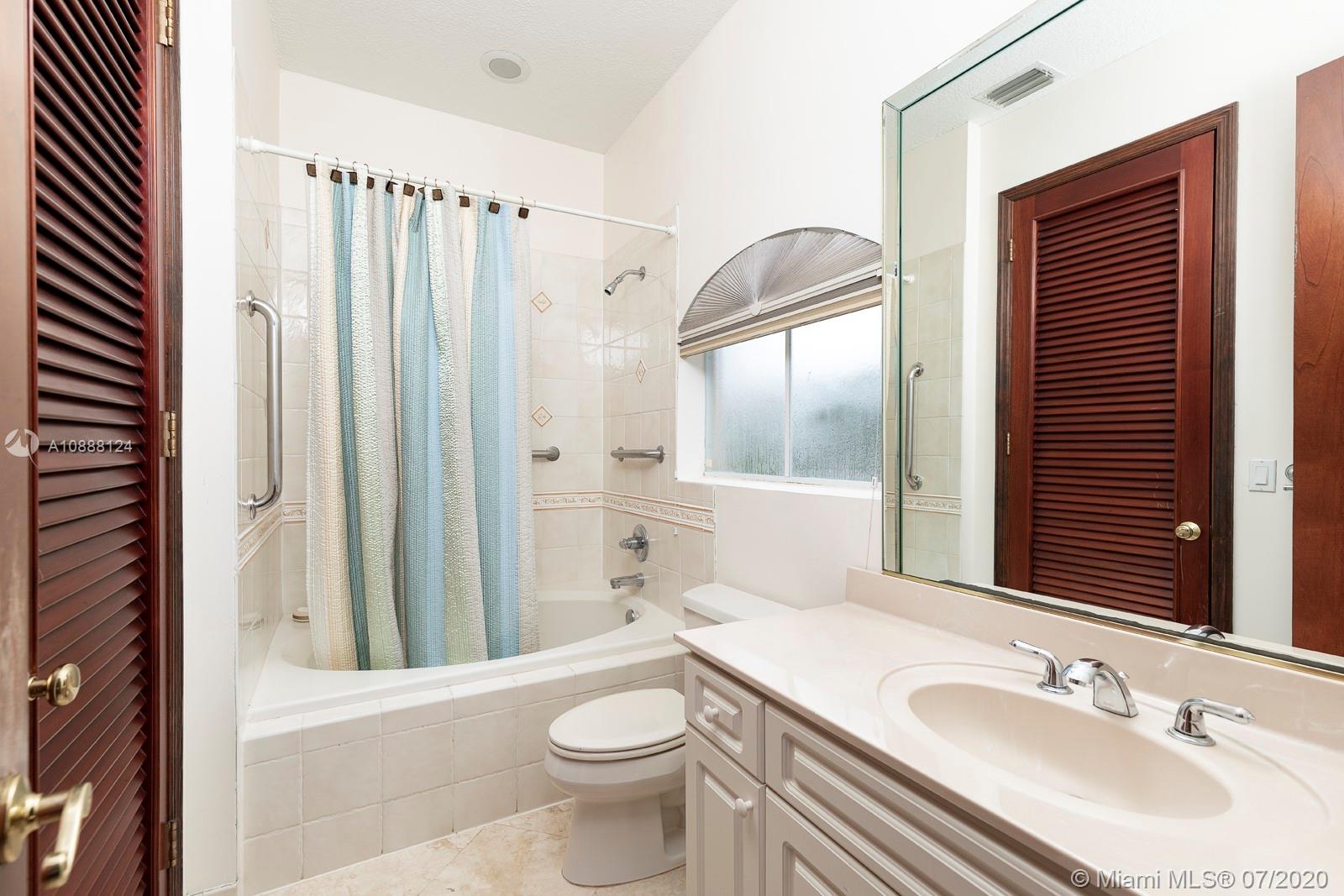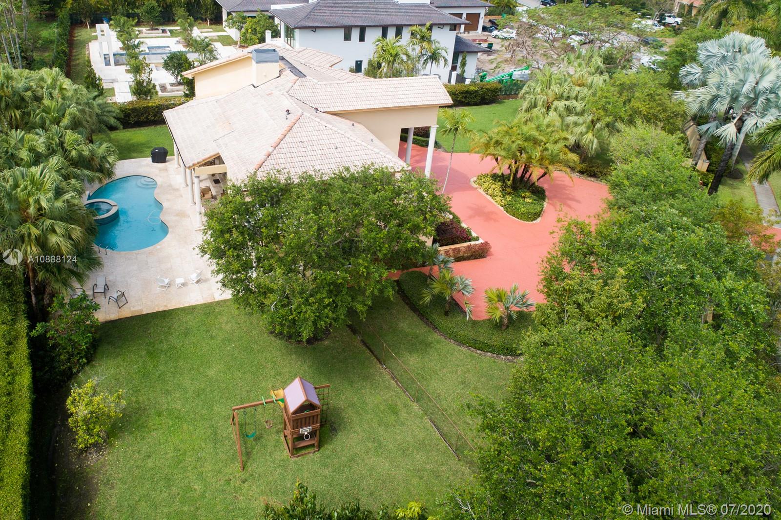 PRIME PINECREST LOCATION! Set back from the street in North Pinecrest and surrounded by manicured gardens and mature trees is this hidden gem of a home with spacious living and entertaining areas, large kitchen with plenty of storage and prep areas and two full bedrooms on the lower level which offers a wide array of possibilities for a family looking for a home to accommodate staff or elderly parents. Upstairs is a second family gathering area, two family bedrooms both with access to a lovey terrace and the master wing with it's own private office, oversized master bath and his and her closets. The outdoor covered patio is complemented by the lovely pool and spa and plenty of grass for the kids and family pets to play. Over 1/2 acre lot, two car garage and lots of parking for your guests