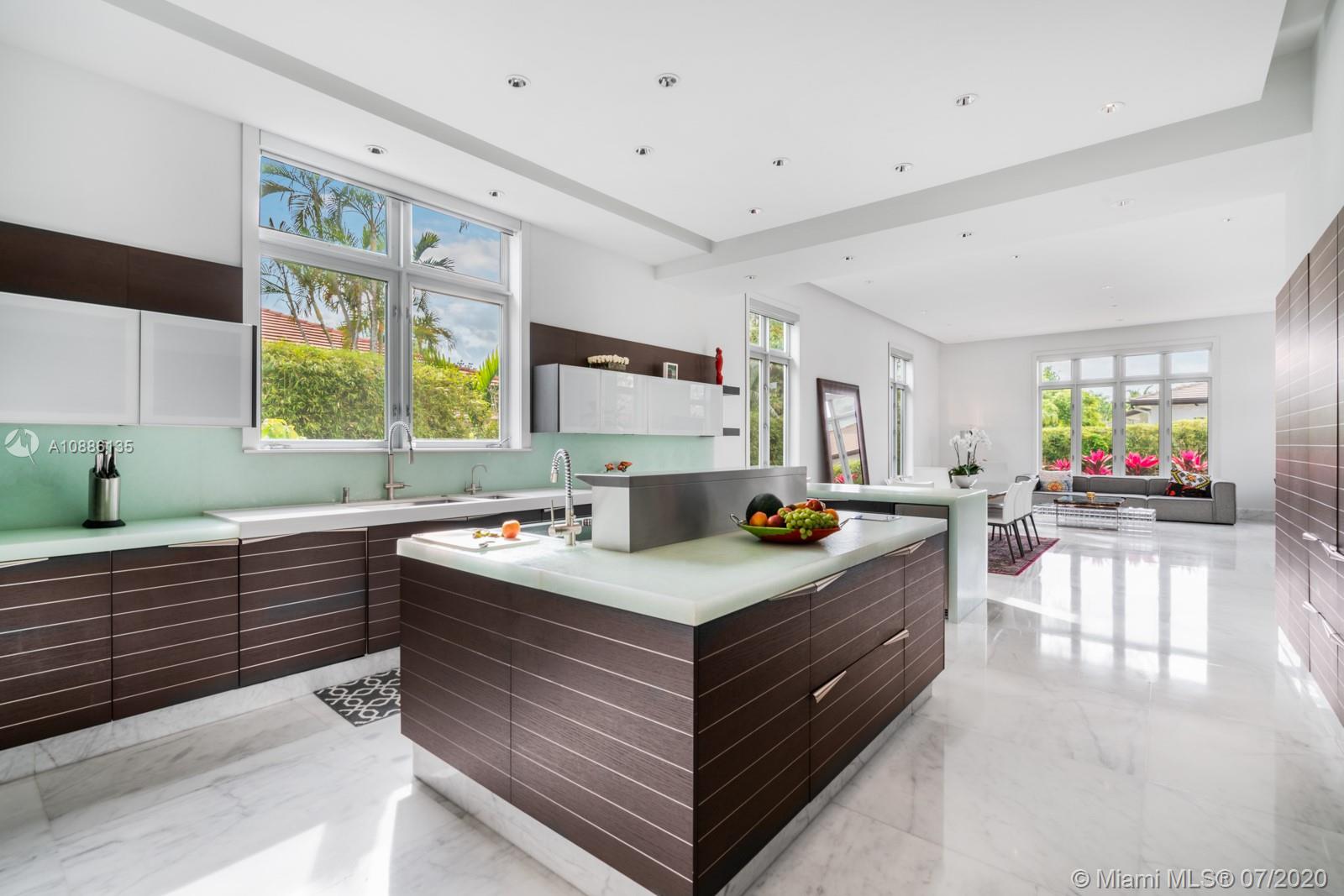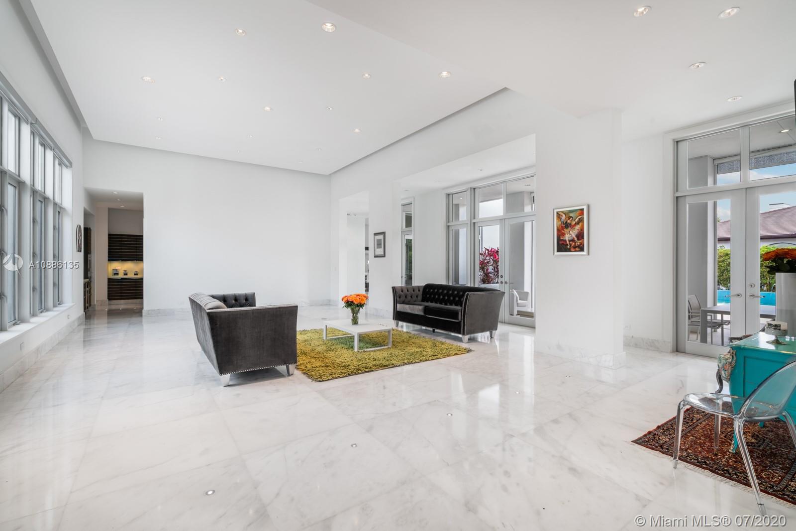 Tucked away in the prestigious gated community of Cocoplum in south Coral Gables, this custom-built 6-bed, 6-bath modern family home offers flawless upscale living. High ceilings, extra-tall impact windows, and gleaming white marble floors fill the home with light. Open layout flows directly to huge covered terrace, patio, and large salt-chlorine heated pool with spa for indoor/outdoor living at its finest Oversized chef-grade kitchen features top-of-the-line cabinetry, fixtures, and appliances, and connects to main family room for entertaining. Billiard room, bar, guest suite and maid’s quarters all on 1st floor. Family bedrooms (all suites) and lavish master suite with sun deck on 2nd floor. Whole home generator, smart tech with mobile controls, elevator, and utility room also included
