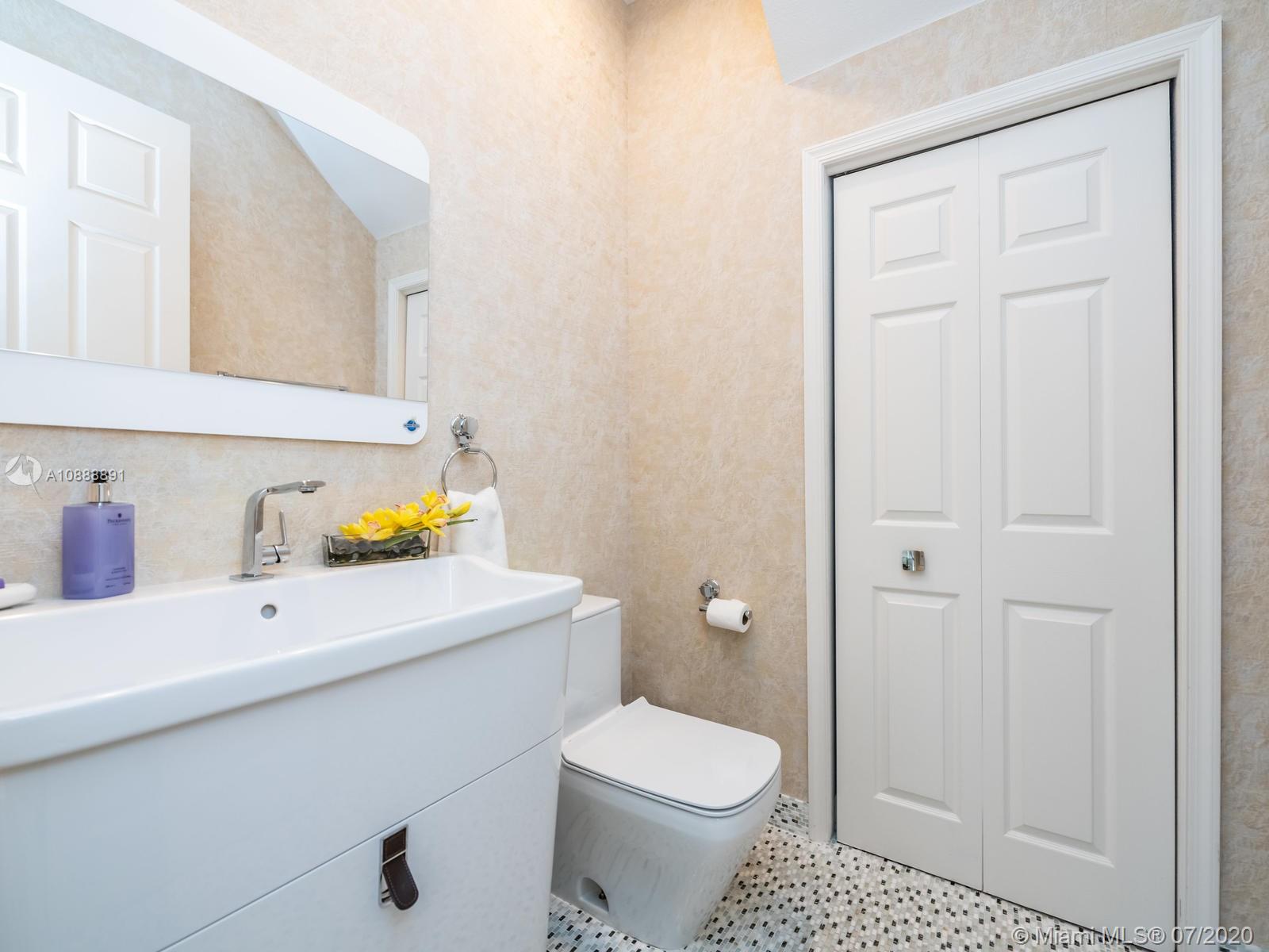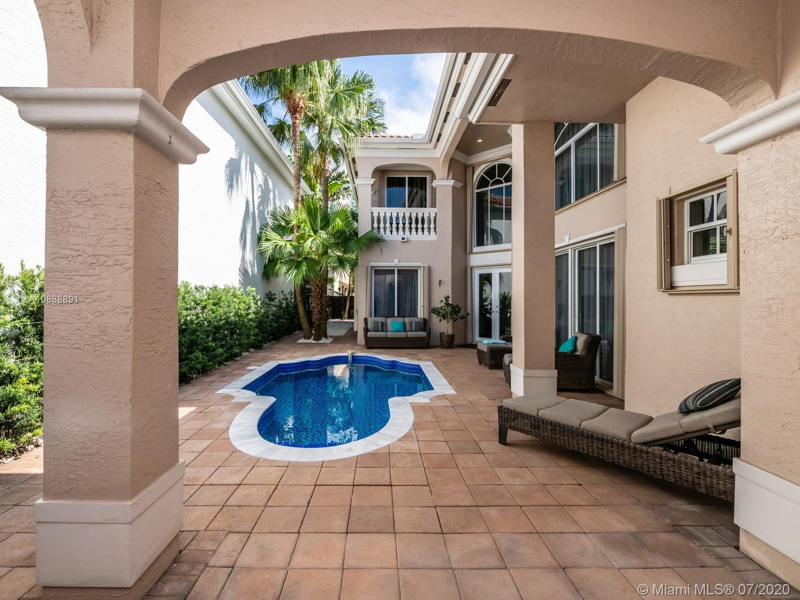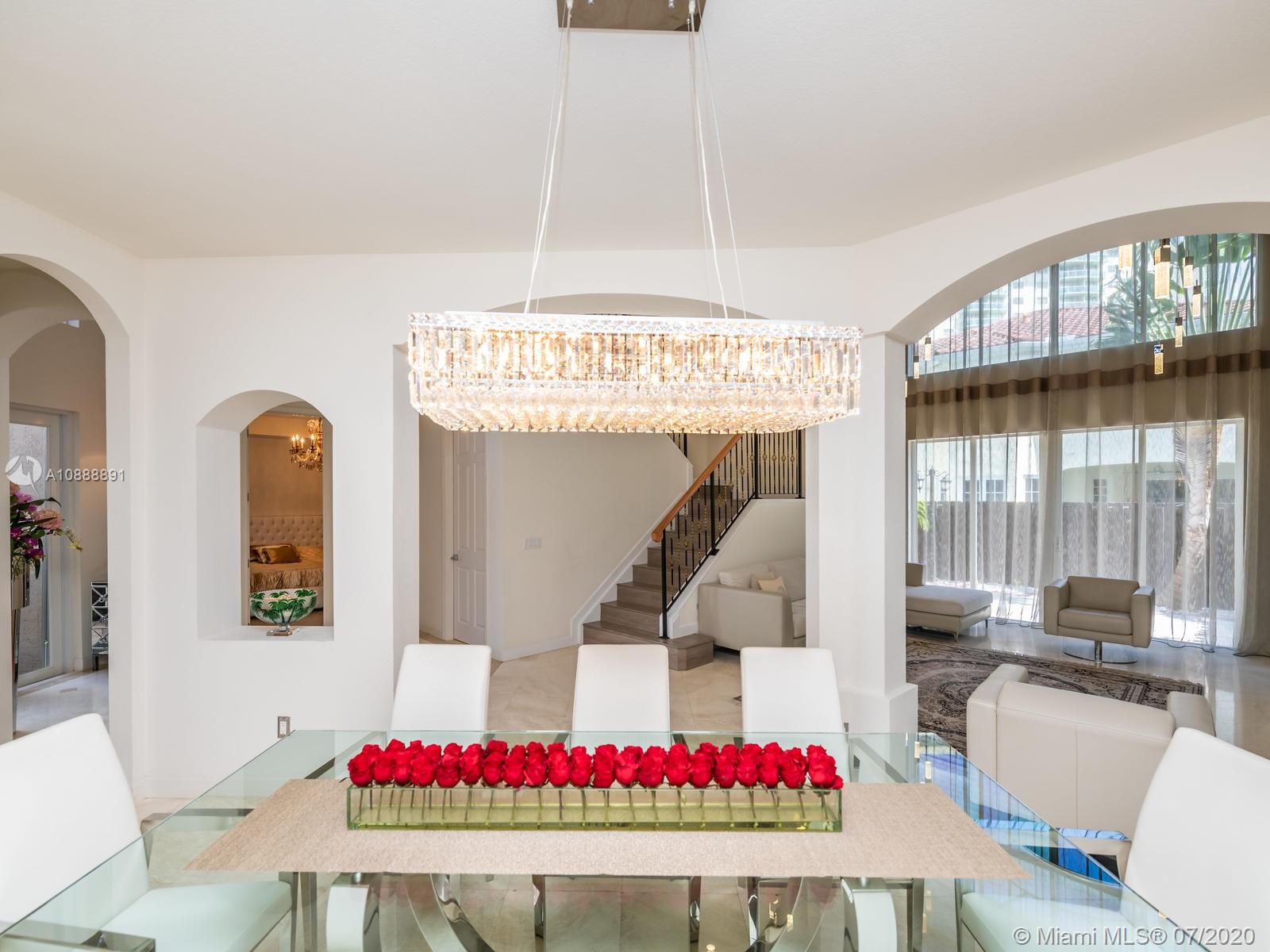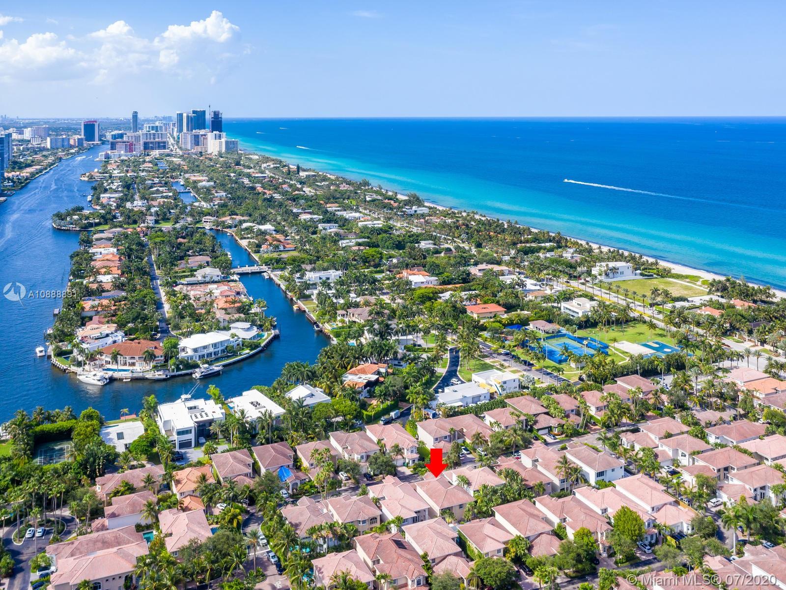 Fully modern renovated beautiful 5 bedroom, 4.5 bathroom Spanish Mediterranean home in Golden Gate Estates & Marina. Sunny Isles Beach exclusive gated community w/24-hr guard, community tennis court & playground, lots of amenities. Home has a ground floor master bedroom, with his & hers walk-in closets and a jacuzzi, 3 living rooms, high ceilings, separate guest house with full bathroom, 2 car garage, custom built closets, kitchen cabinets & more,new remodeled heated pool, 2 NEW A/C units, perfect location in between Golden Beach & Sunny Isles. Safe community & walking distance to restaurants, shops, gym, just 5 minutes' walk to the beach. Owner relocating to Golden Beach - great opportunity for a fast closing & move in with a family, Sunny Isles School bus pick up right in the Complex.