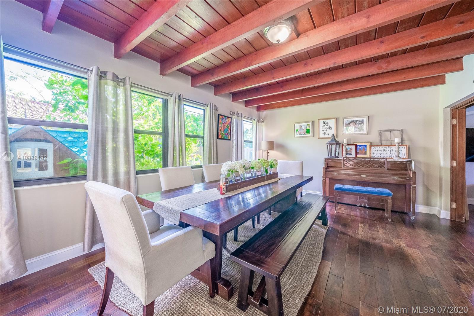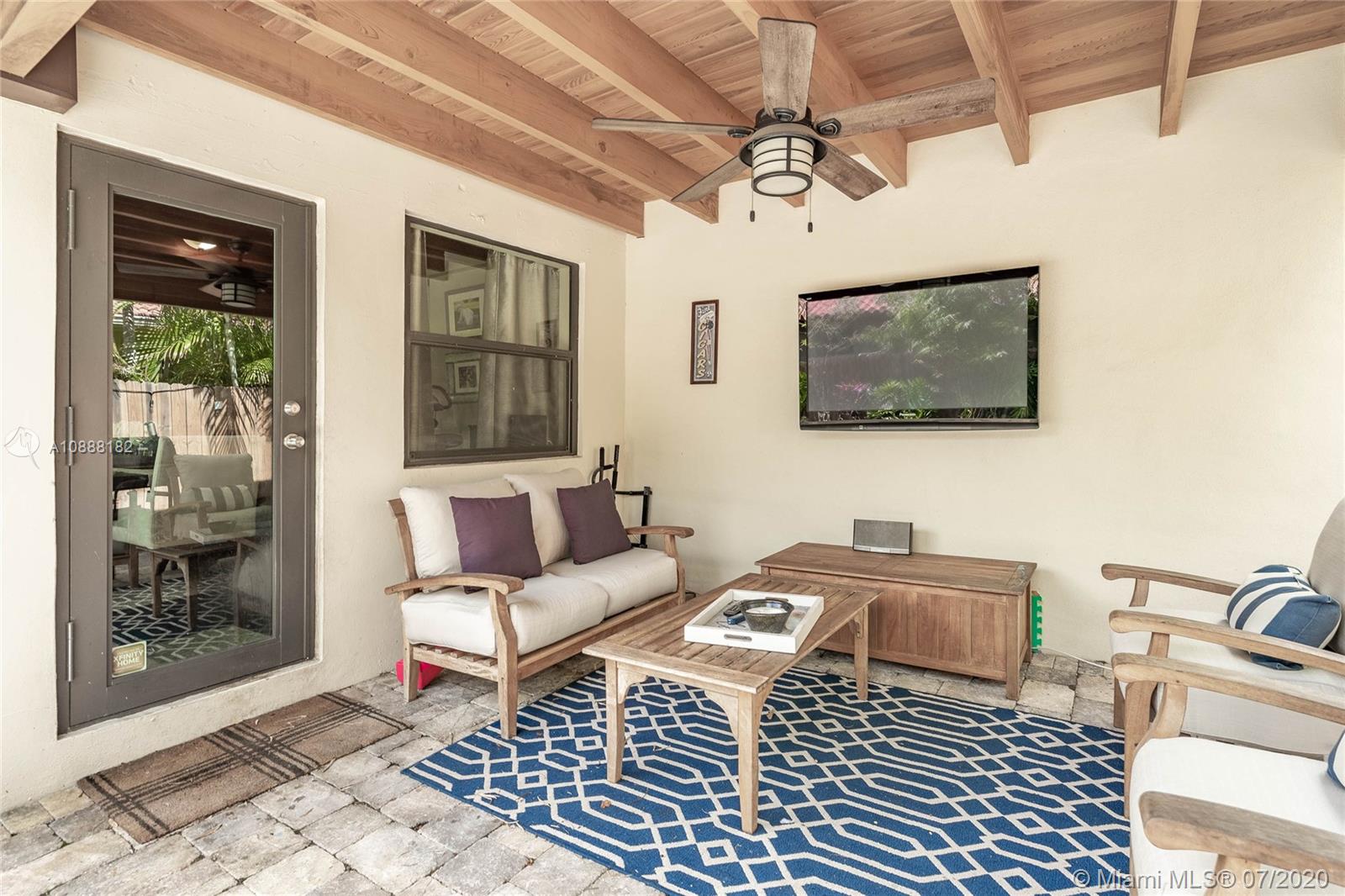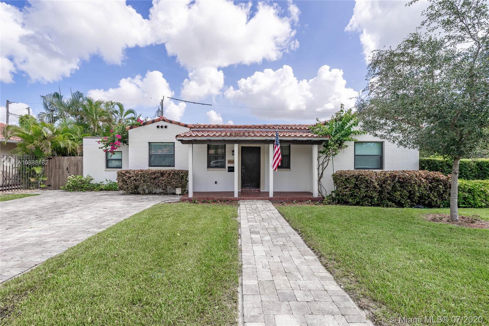 Charming 2 bdrm/ 2 bath, plus office, home perfectly situated in Little Gables. Impact windows and doors, PVC plumbing, newer roof and many other recent upgrades. Delightful living room with fireplace, exposed wood beam, vaulted ceilings. Kitchen opens to dining area and access to the office/playroom/den. Indoor laundry/utility room with storage. Florida room perfect for formal dining or family room. Lovely wood flooring in the living areas and bedrooms. Master has large walk in closet. Guest bedroom is spacious. Room to add on or put in a pool. Fenced back yard with covered paver patio. Paver driveway, corner lot. Steps from Coral Gables. A fantastic investment. Visit https://my.matterport.com/show/?m=SJtBPh9HfDF&brand=0 to view the 3D virtual tour and floorplan.