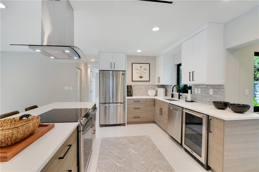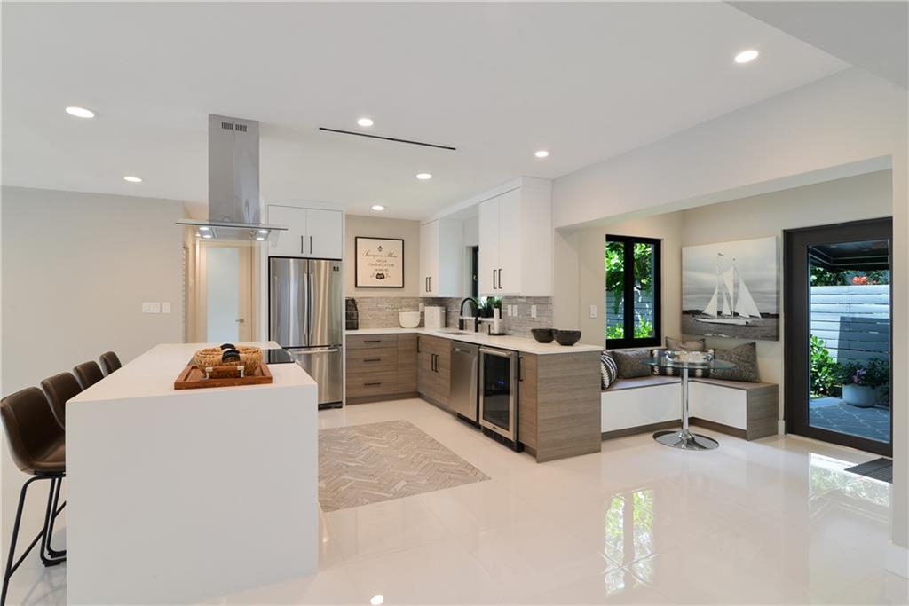STUNNING REMODEL on the edge of beautiful Rio Vista! This charming bungalow is beautifully designed for today's savvy buyer with UNIQUE DESIGNER DETAILS inside and out! GORGEOUS CYPRESS HARDWOOD graces the exterior of this lovely home making it a stand-out in this charming neighborhood! Gracious open concept, gleaming porcelain tile floors, and chef's kitchen w/waterfall island! QUARTZ countertops, SAMSUNG appliances, built-in BEVERAGE/WINE COOLER, cozy breakfast nook, and urban brick details grace the fabulous kitchen. NEW ROOF, NEW A/C, IMPACT WINDOWS, large covered PATIO, HUGE dining room, INDOOR LAUNDRY ROOM, BUILT IN CLOSETS, FULLY FENCED YARD, and YES!!...ROOM FOR A POOL!! Attached GARAGE with storage! Near BEACH, BOATING, EVERYTHING! A FABULOUS LOCATION! This is your DREAM HOME!