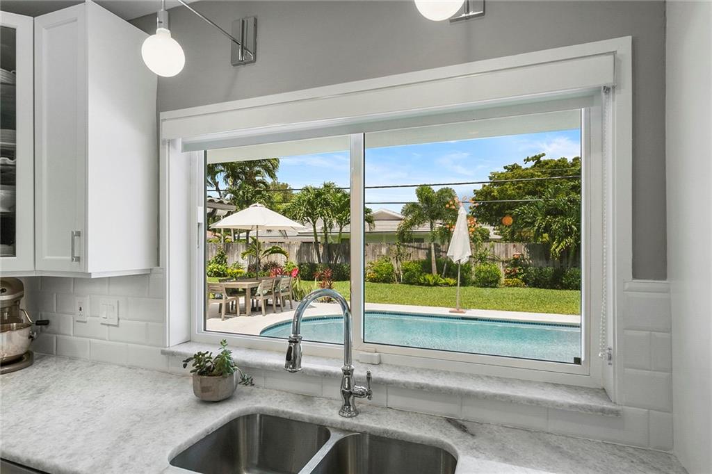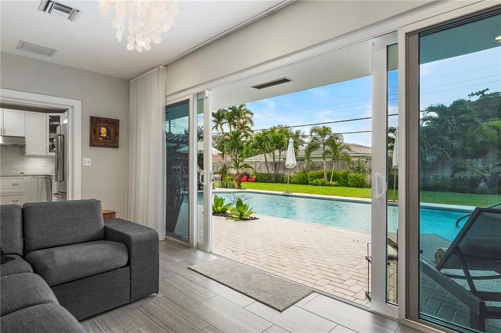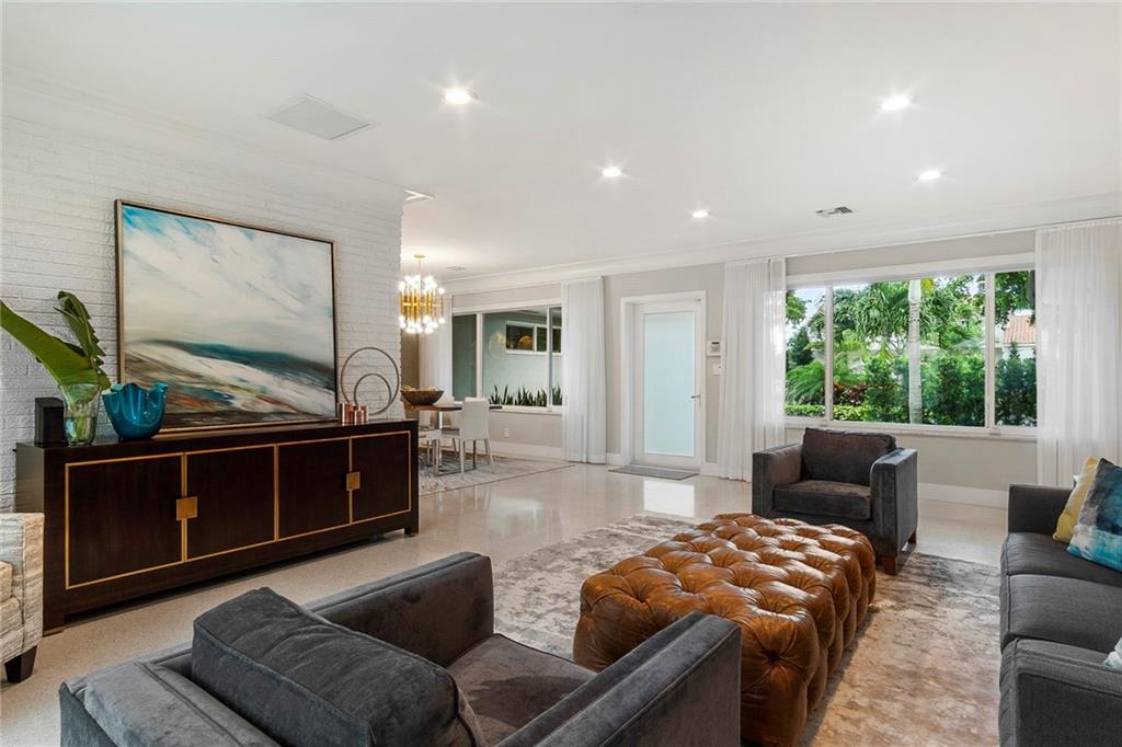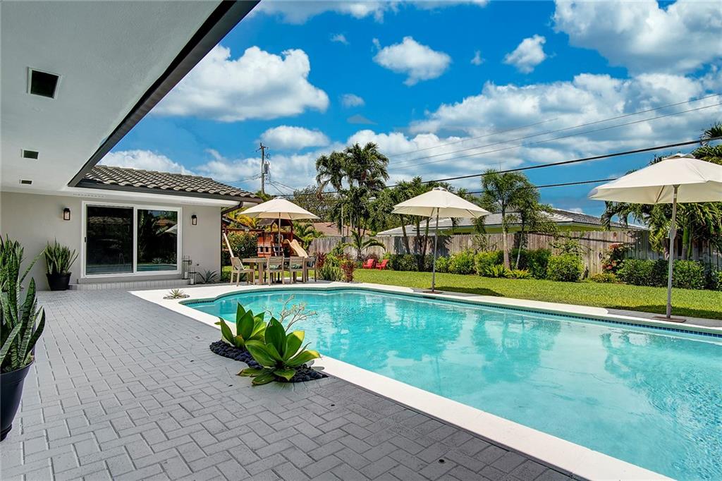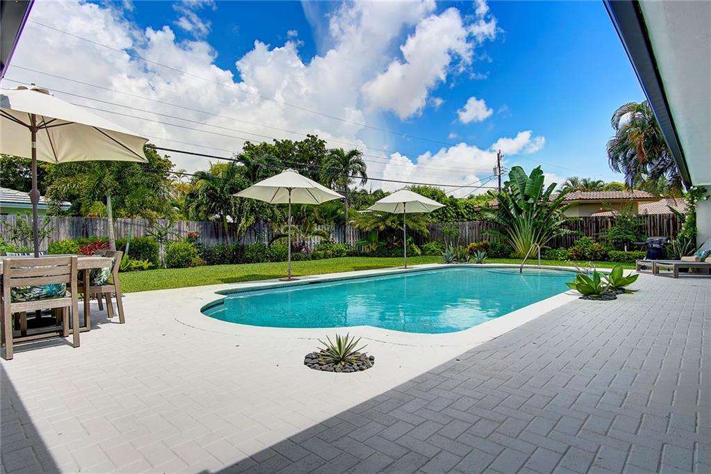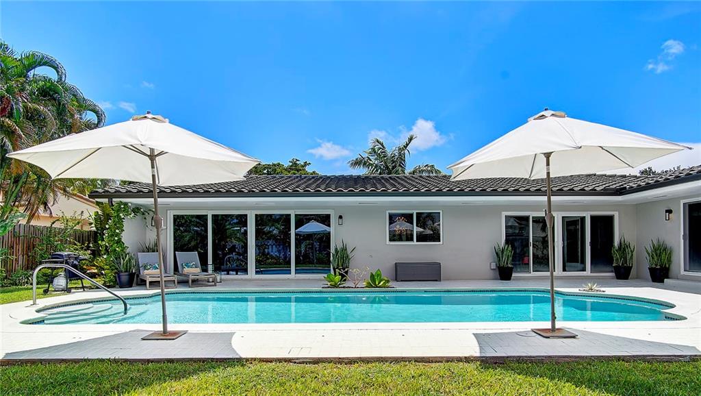 Beautifully remodeled 4 bedroom, 3 bath mid-century home in Coral Ridge Country Club Estates. Modern open kitchen with double ovens and marble waterfall counters coupled with a generously oversized 12,000+ sq ft lot with heated saltwater pool make entertaining a dream. Original details such as Terrazzo floors and cove moldings were preserved and compliment the 2019 updates that include renovated baths, den, custom closets, and window treatments. Other updates include new fencing, landscaping & gutters, as well as a whole house water filtration system. The laundry room and 2-car garage provide ample storage and the house has impact windows & doors throughout.