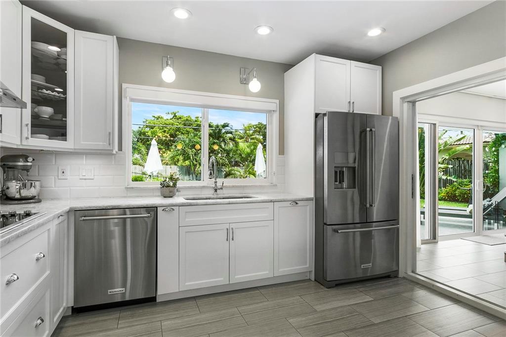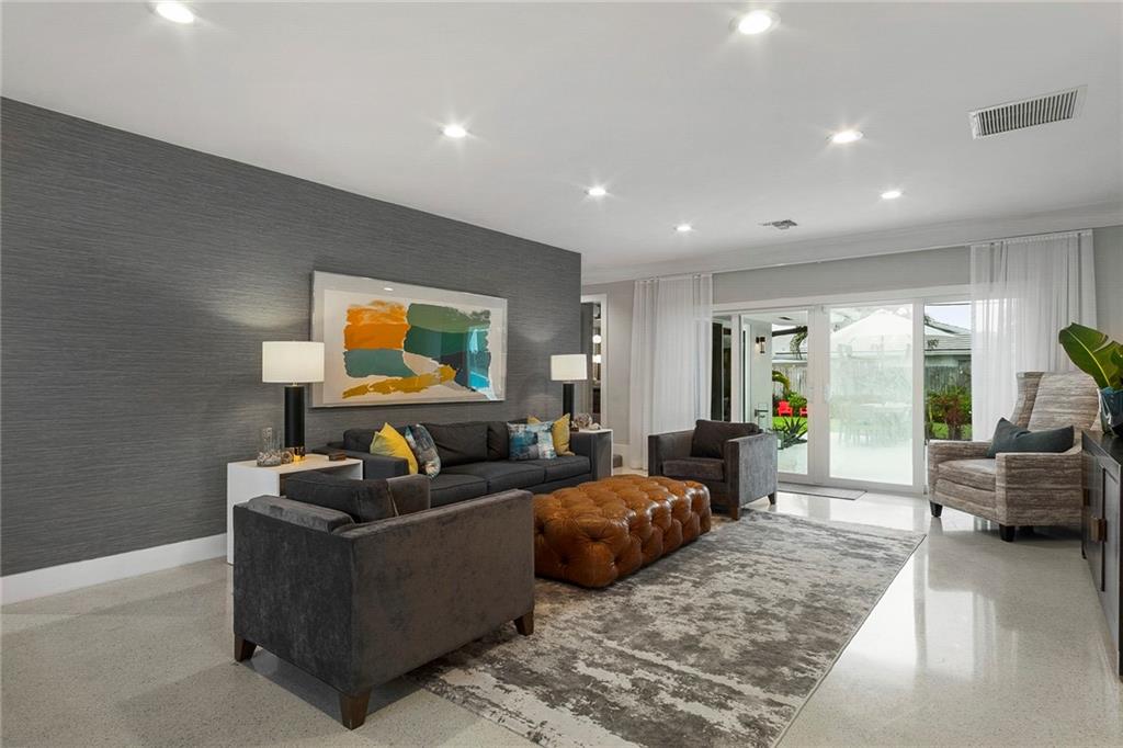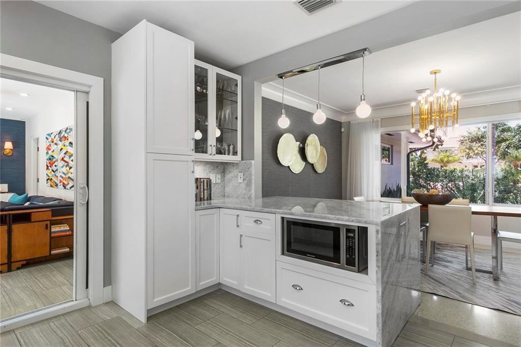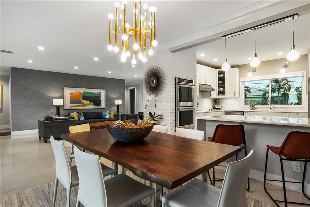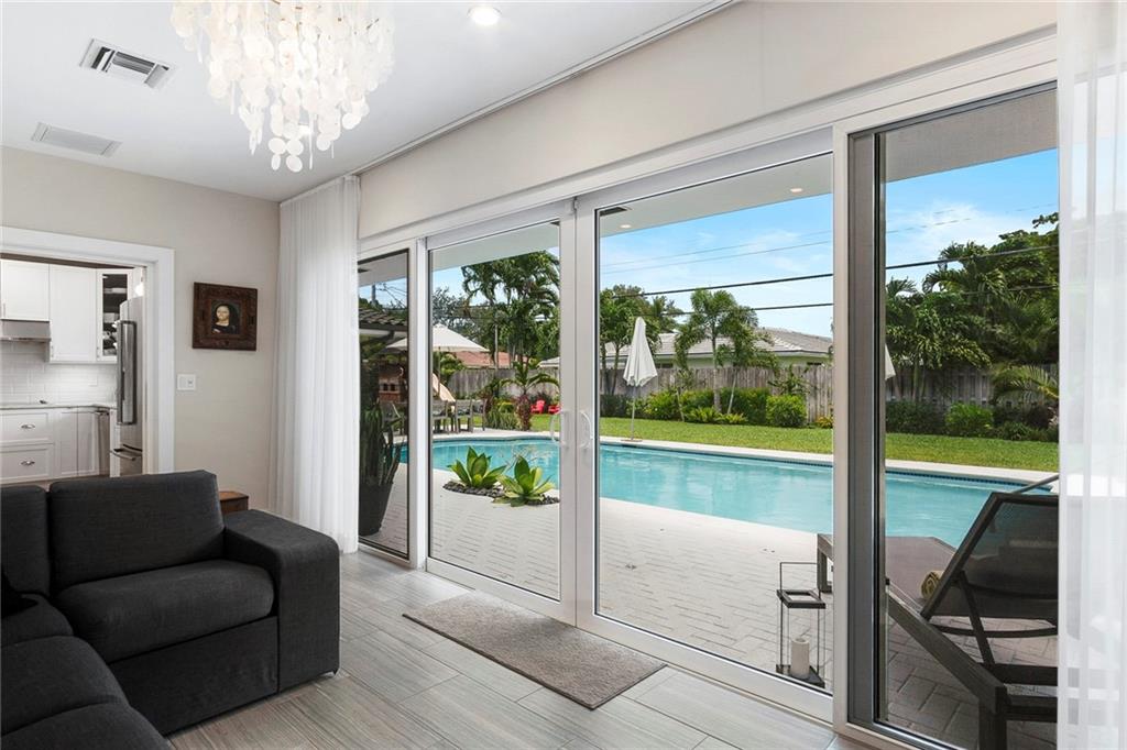 Beautifully remodeled 4 bedroom, 3 bath mid-century home in Coral Ridge Country Club Estates. Modern open kitchen with double ovens and marble waterfall counters coupled with a generously oversized 12,000+ sq ft lot with heated saltwater pool make entertaining a dream. Original details such as Terrazzo floors and cove moldings were preserved and compliment the 2019 updates that include renovated baths, den, custom closets, and window treatments. Other updates include new fencing, landscaping & gutters, as well as a whole house water filtration system. The laundry room and 2-car garage provide ample storage and the house has impact windows & doors throughout.