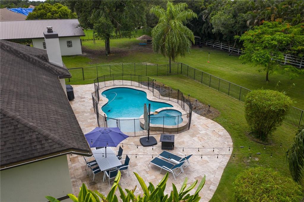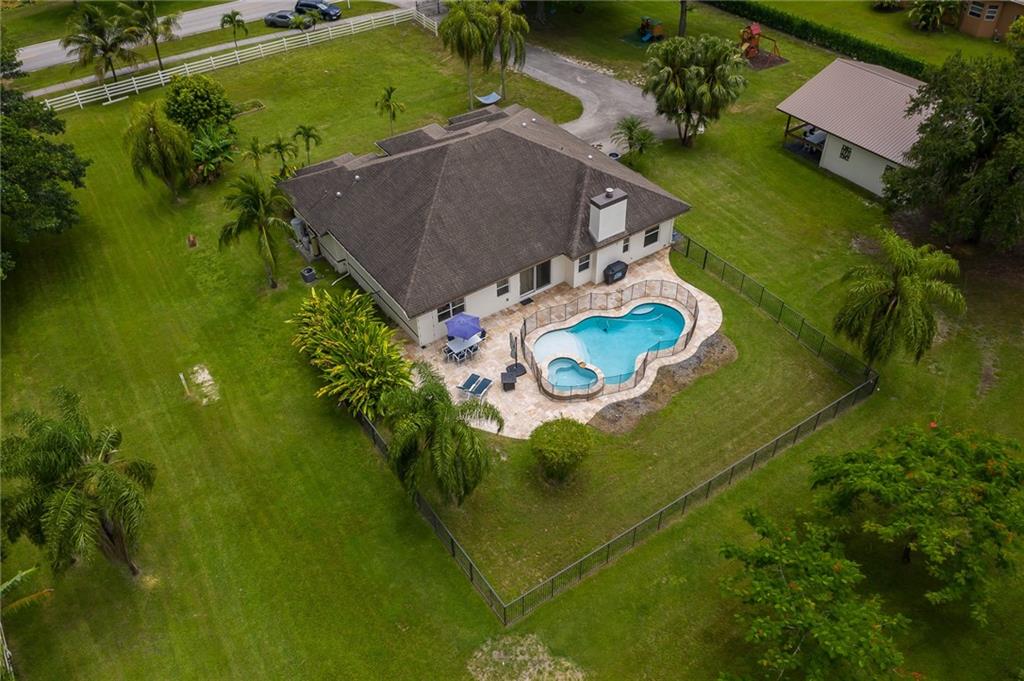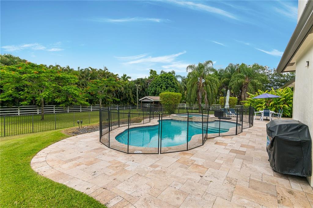 Price Reduction ! Live in this Spectacular Home on 2 Acres with every upgrade imaginable in a Beautiful Equestrian area. This 4 bed 3 full bath + Office home has been completely remodeled with large format tile throughout, Custom cabinetry with soft-close led drawers & Double Oven. Kitchen boasts natural Quartz countertops, New appliances & A/C. Impact windows & doors. High Ceilings & Fireplace in the family room. Supersized Master bedroom w/ 2 custom & 2 walk in closets. Master Bath has Jacuzzi tub & Shower. Entertain in your Gorgeous backyard with newly built Heated Saltwater Pool, Oversized 12 person spa w/ Aqualink system, Custom Landscaping, intelligent lighting/Sound. CBS wall 3 Stall Barn equipped with plumbing, electric & A/C tack room. Home is fully fenced in with Private Gate.