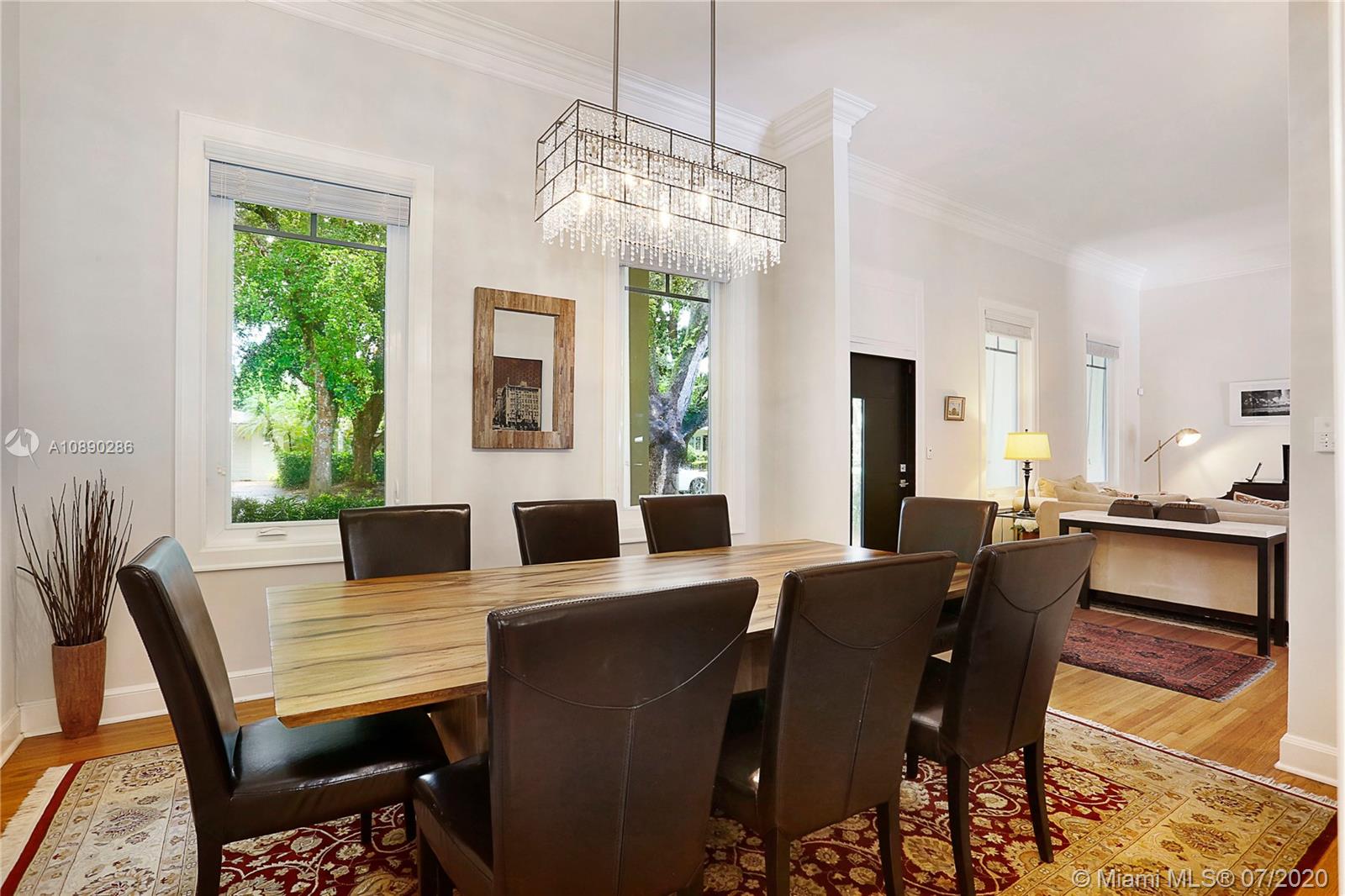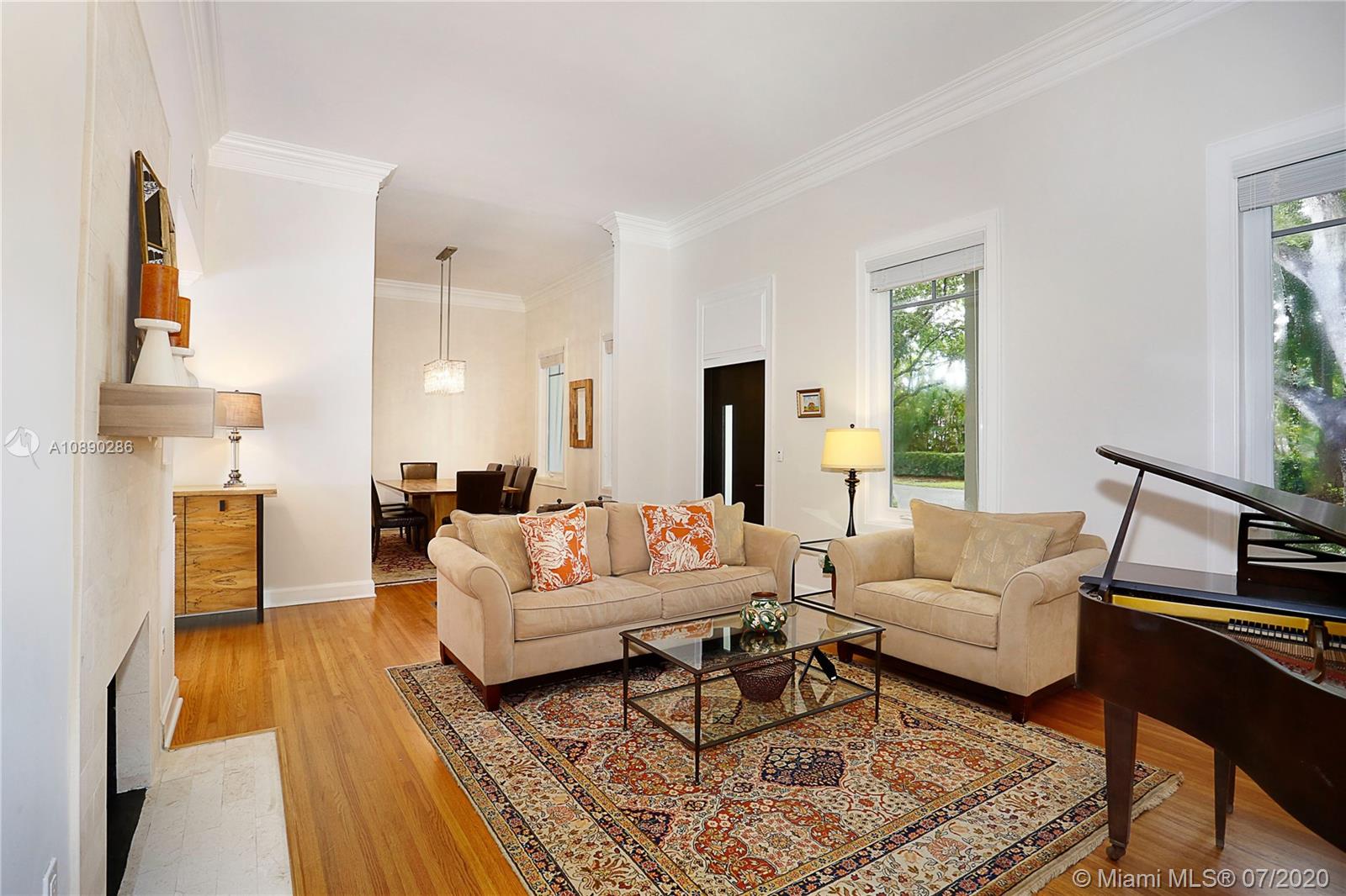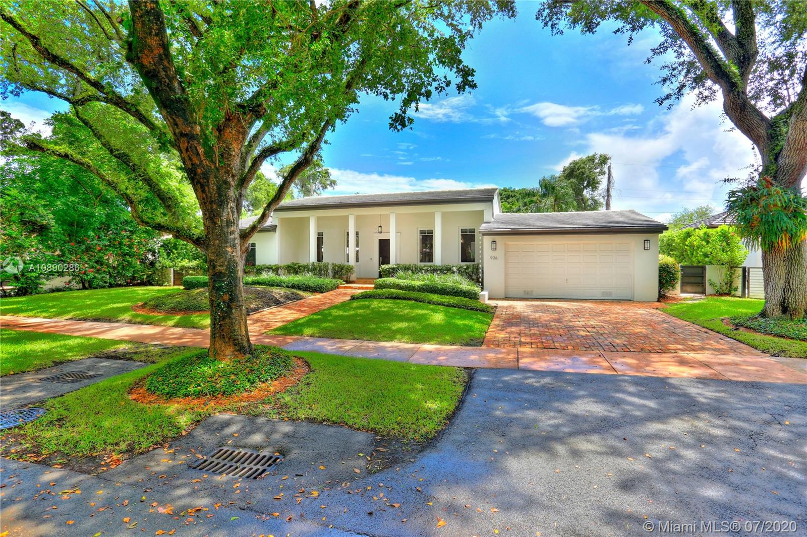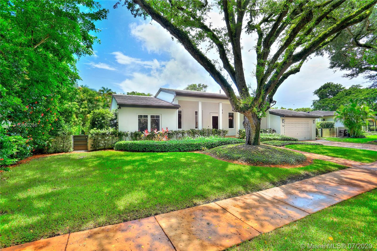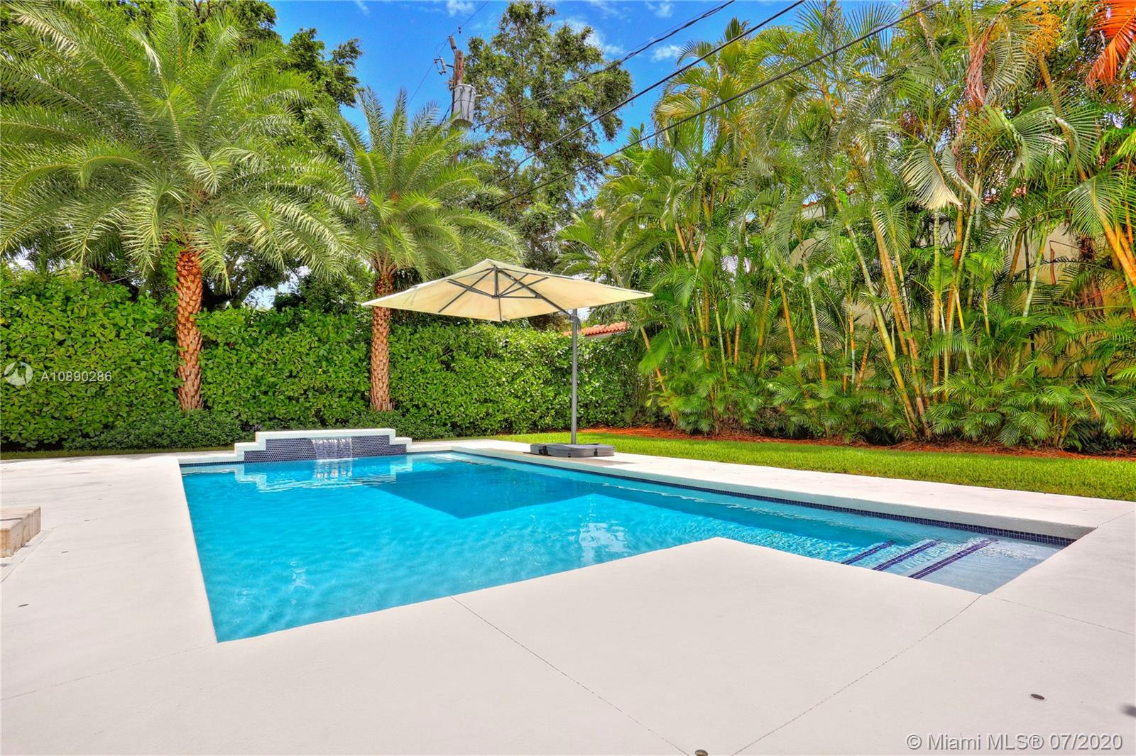 Absolutely beautiful South Gables Home! Contemporary colonial style home on prestigious & quiet street with majestic oaks on 12,000-SF lot. Lovingly restored & added onto, this home features 12-foot ceilings in the living & dining rooms, 2 family rooms overlooking the backyard oasis, gracious front porch with Chicago brick matching driveway & walkways, all impact doors & windows, & fireplace. Stunning new kitchen features a large eat-in island, gas range, SS appliances & modern white sleek wooden cabinets. Gorgeous backyard retreat offers a large covered porch overlooking the new pool with fountain, & spacious yard. Master suite boasts vaulted ceilings, walk-in closet & lux bath. Split floor plan with 2 bedrooms on one side, & master & 1 bedroom on the other, laundry room, & 2-car garage.