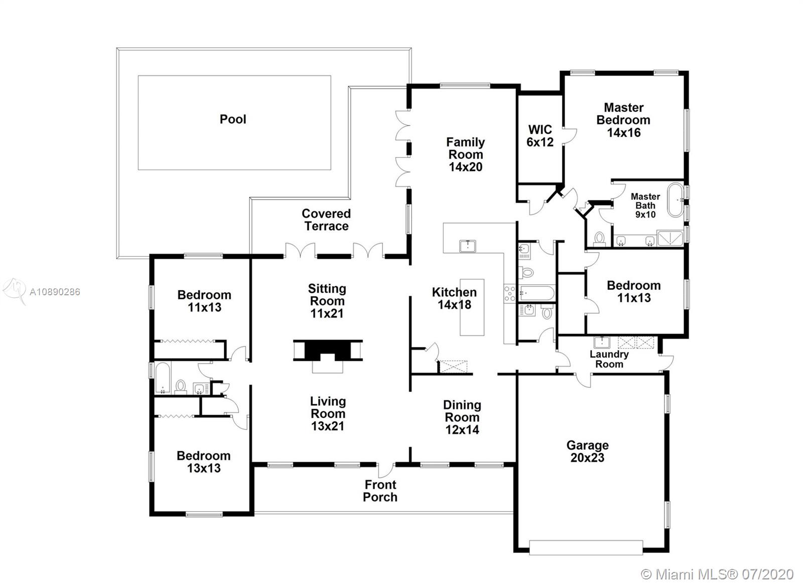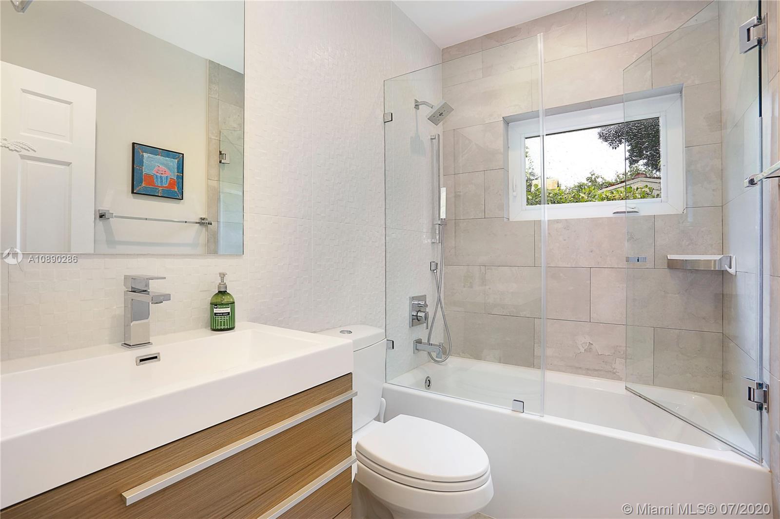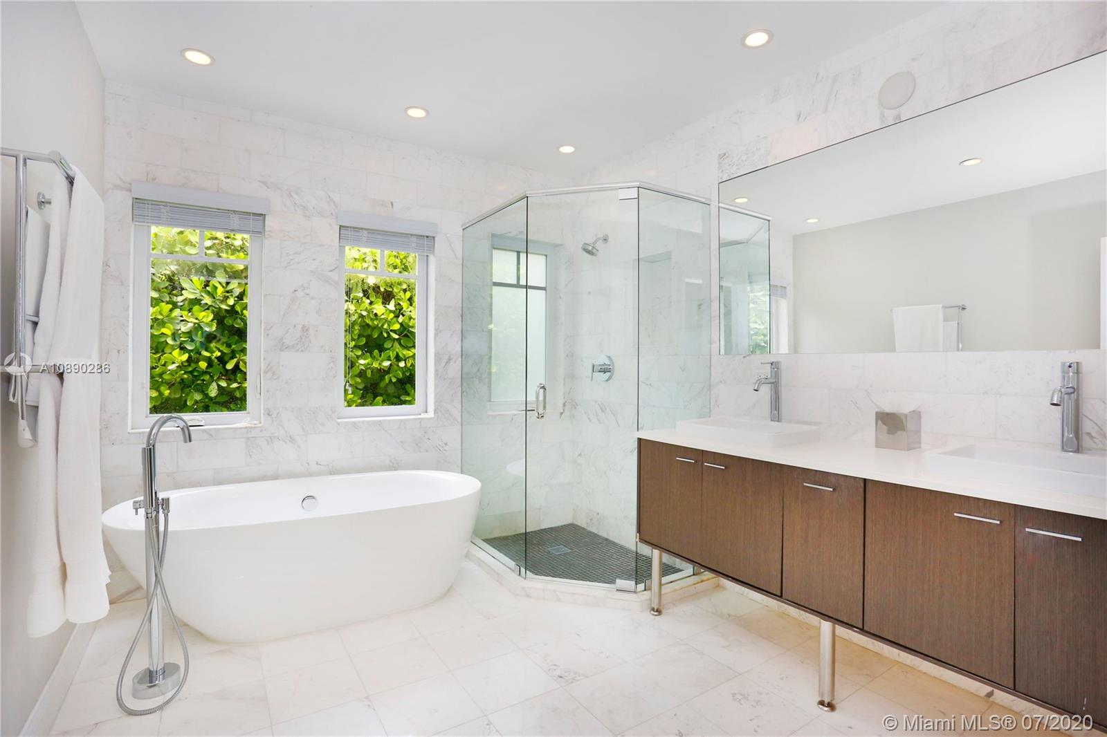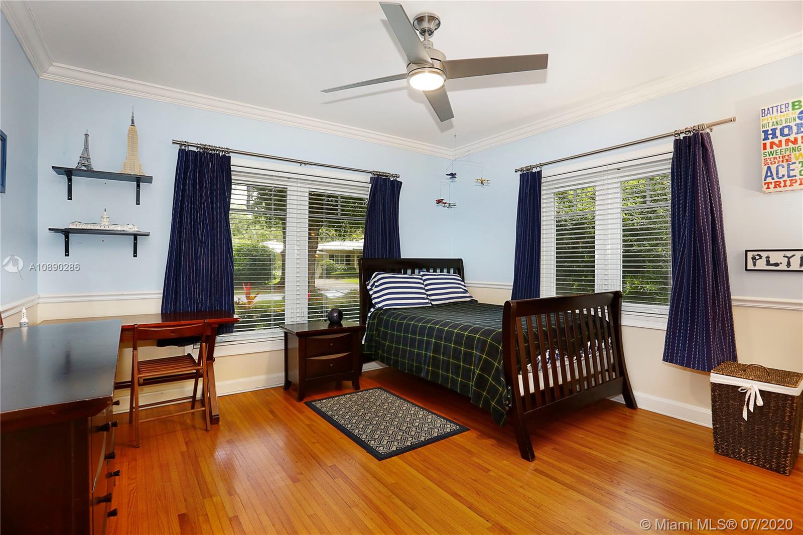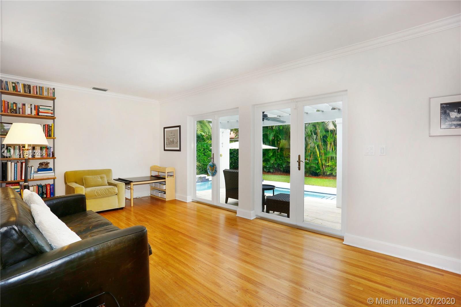Absolutely beautiful South Gables Home! Contemporary colonial style home on prestigious & quiet street with majestic oaks on 12,000-SF lot. Lovingly restored & added onto, this home features 12-foot ceilings in the living & dining rooms, 2 family rooms overlooking the backyard oasis, gracious front porch with Chicago brick matching driveway & walkways, all impact doors & windows, & fireplace. Stunning new kitchen features a large eat-in island, gas range, SS appliances & modern white sleek wooden cabinets. Gorgeous backyard retreat offers a large covered porch overlooking the new pool with fountain, & spacious yard. Master suite boasts vaulted ceilings, walk-in closet & lux bath. Split floor plan with 2 bedrooms on one side, & master & 1 bedroom on the other, laundry room, & 2-car garage.