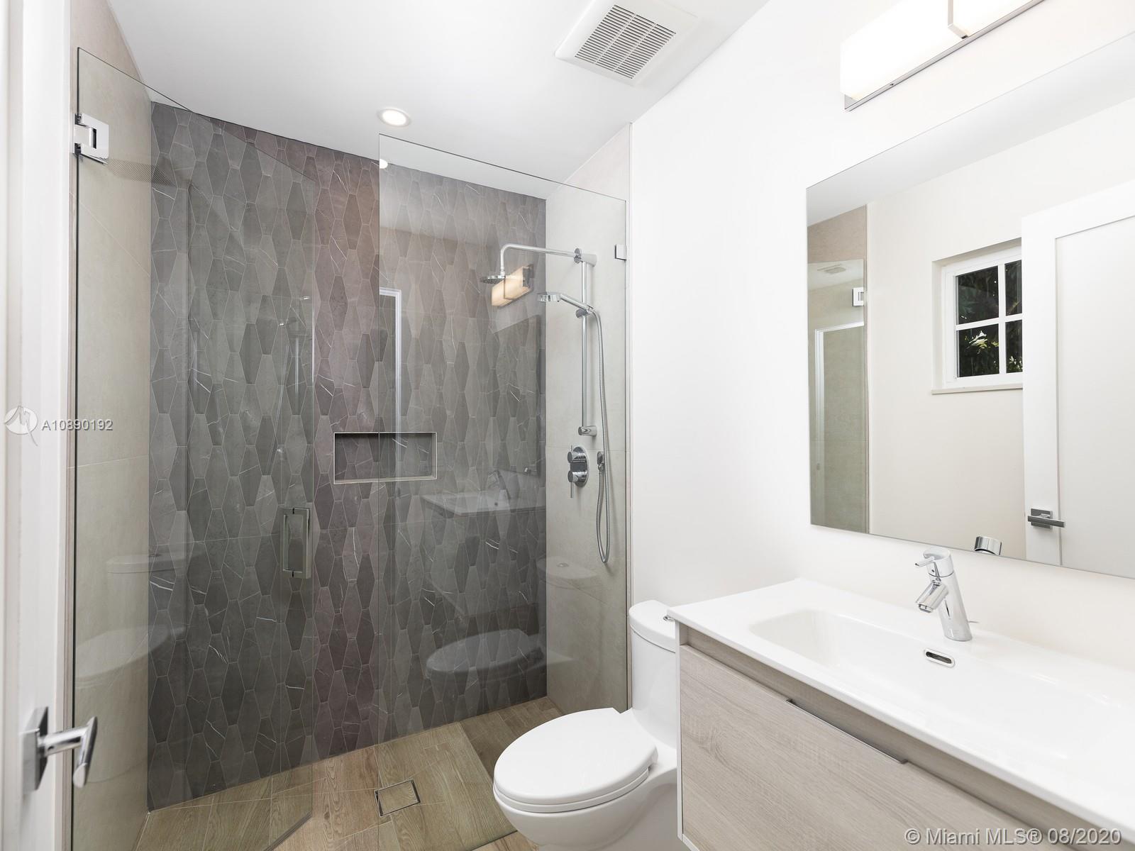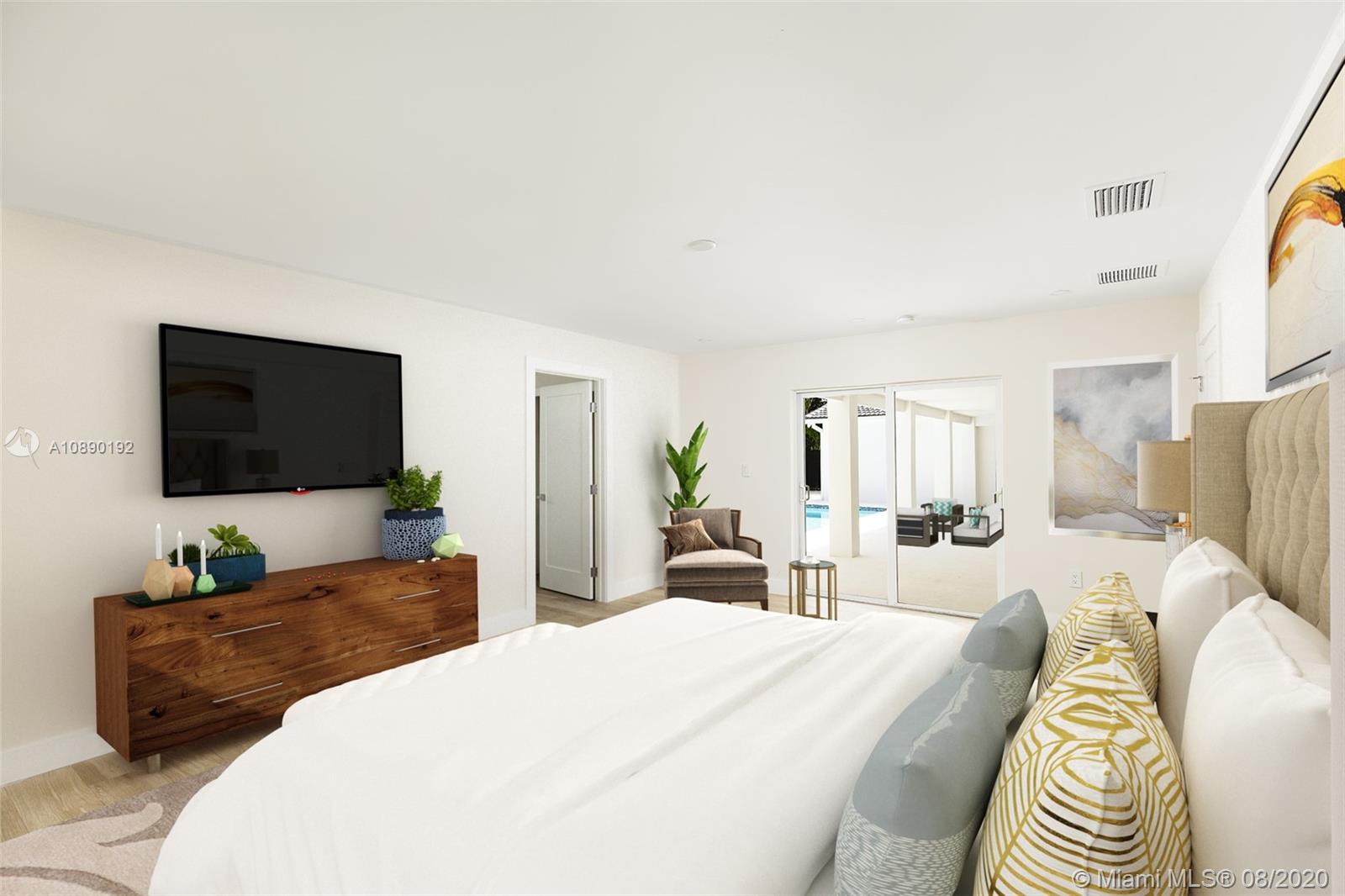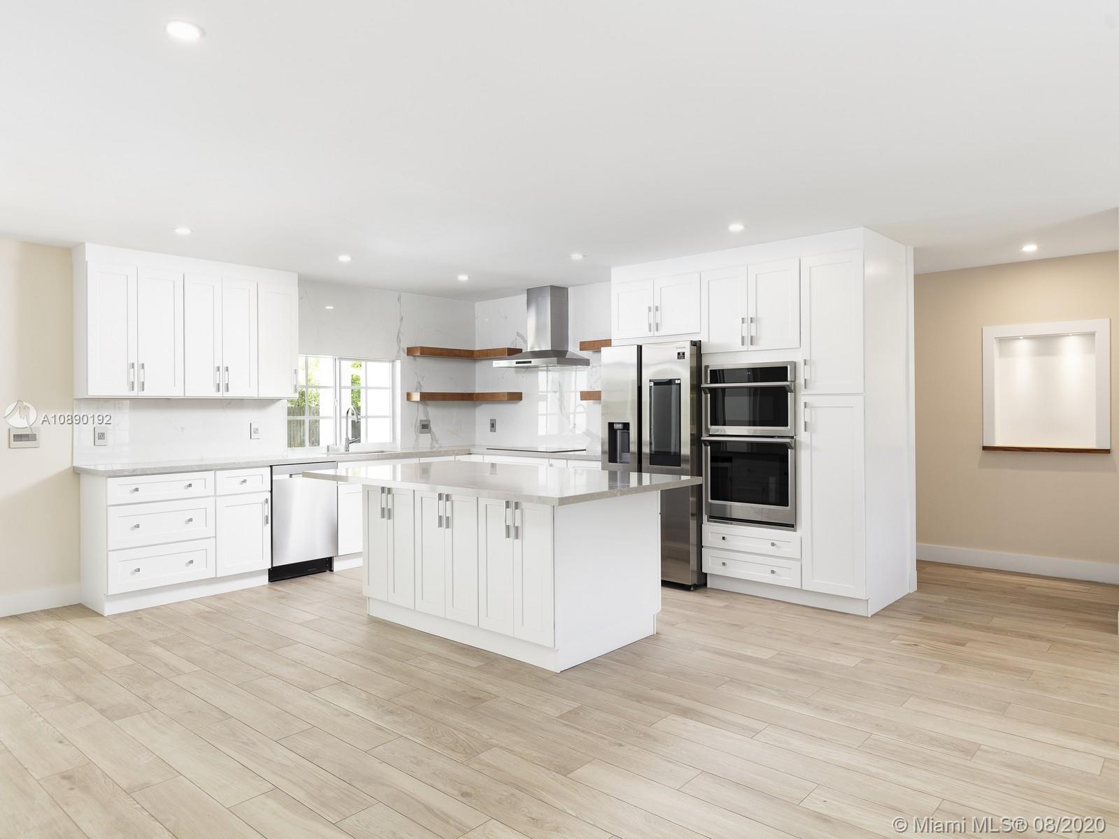Remarkable one-story retreat located on a quiet street in N Pinecrest. This 5 beds/5 baths home has been completely remodeled w/the finest modern finishes. Greeted by a spacious open floorplan w/all around views of the outdrs & sparkling new pool, new chef’s kitchen w/modern Wi-Fi appl, new bathrms & extra rooms for multiple home offices & storage closets. The home offers a split plan w/ 3 large en-suite bedrms on one side & 2 beds/2 baths on the other, making it perfect for guests/in-law quarters w/private entrance on the side. Serene views of the crystal blue pool, shell stone patio & backyd from all angles in the house. Extra Feat: imp. win/drs, summer kit hookup, all remodeling work done w/proper permits, all waste lines redone w/PVC, European faucets, quartz counters & porcelain flrs.
