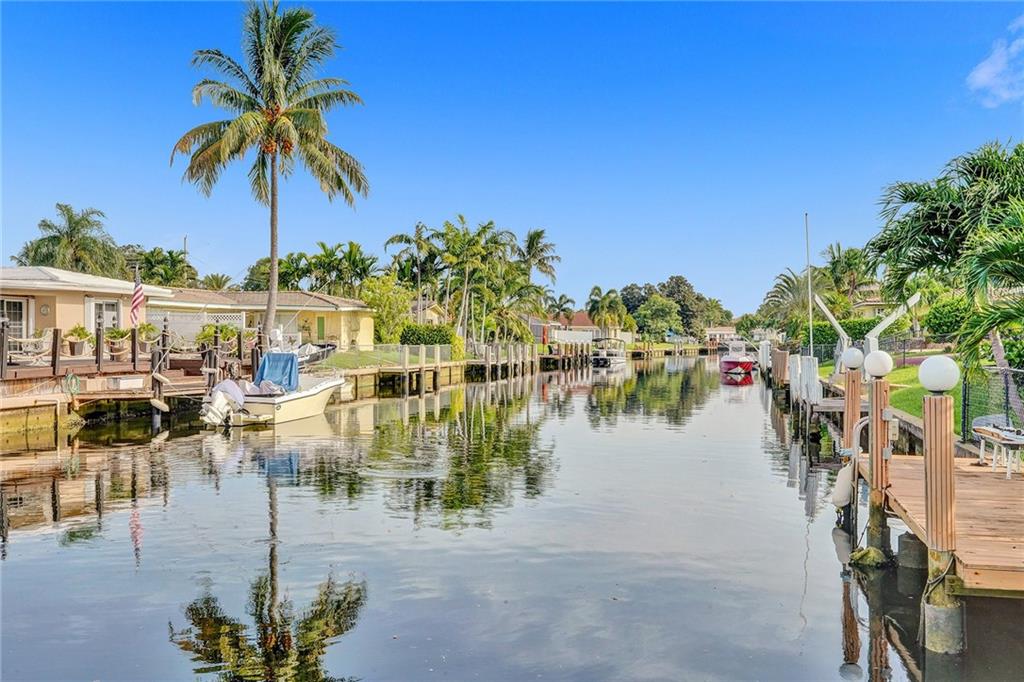Highly Desirable "Imperial Point" Waterfront, Pool, 2 Car Garage Home w/ Great Curb appeal & Immaculately Maintained Grounds. Corner Lot w/ Plenty of Parking for Entertaining ( 2 separate driveways). Now Popular; Terrazzo Floors Preserved under the carpet in Main Living Areas & 2 Bedrooms; Ready for You to Reclaim The Mid-Century Look! Wide Open Floor Plan; Walk in Front Door & see Expensive Curved Wall of Windows Overlooking Pool. Plenty of Room for a Baby Grand Piano! Remodeled Large Eat in Kitchen w/ Espresso Toned Cabinets & Brushed Steel Pencil Hardware, Granite Counter Tops, Built in Wine / Beverage Cooler, & Walk in Pantry. Split Bedroom Plan. Master Bedroom has Walk in Closet, Remodeled Bath w/ Double Sinks, Separate Shower & Spa Tub. Also Has a Custom Putting Green