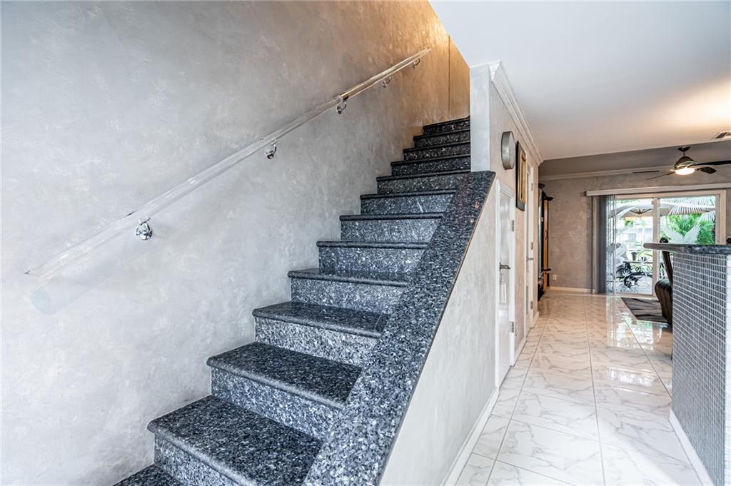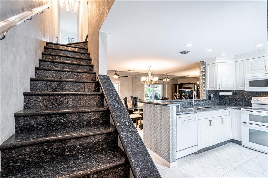 WOW! Stunning townhome in Lakebridge! Top to bottom remodel. Granite counters, imported 1 inch tiles on bar, new appliances make this well lit open concept kitchen any chefs dream! Granite stairs lead to an oversized master bedroom with your dream bathroom, full sized washer & dryer, and a second bedroom perfect for kids, an office or a roommate. Hurricane shutters for all windows and doors. Tropical foliage & fence gives you privacy on your own personal patio overlooking the pond. All ages welcome. Large pets welcome with a maximum of two dogs per unit. Two car limit per unit. Rent right away... an investors dream! minimum lease 4 months. Thus is an estate sale.