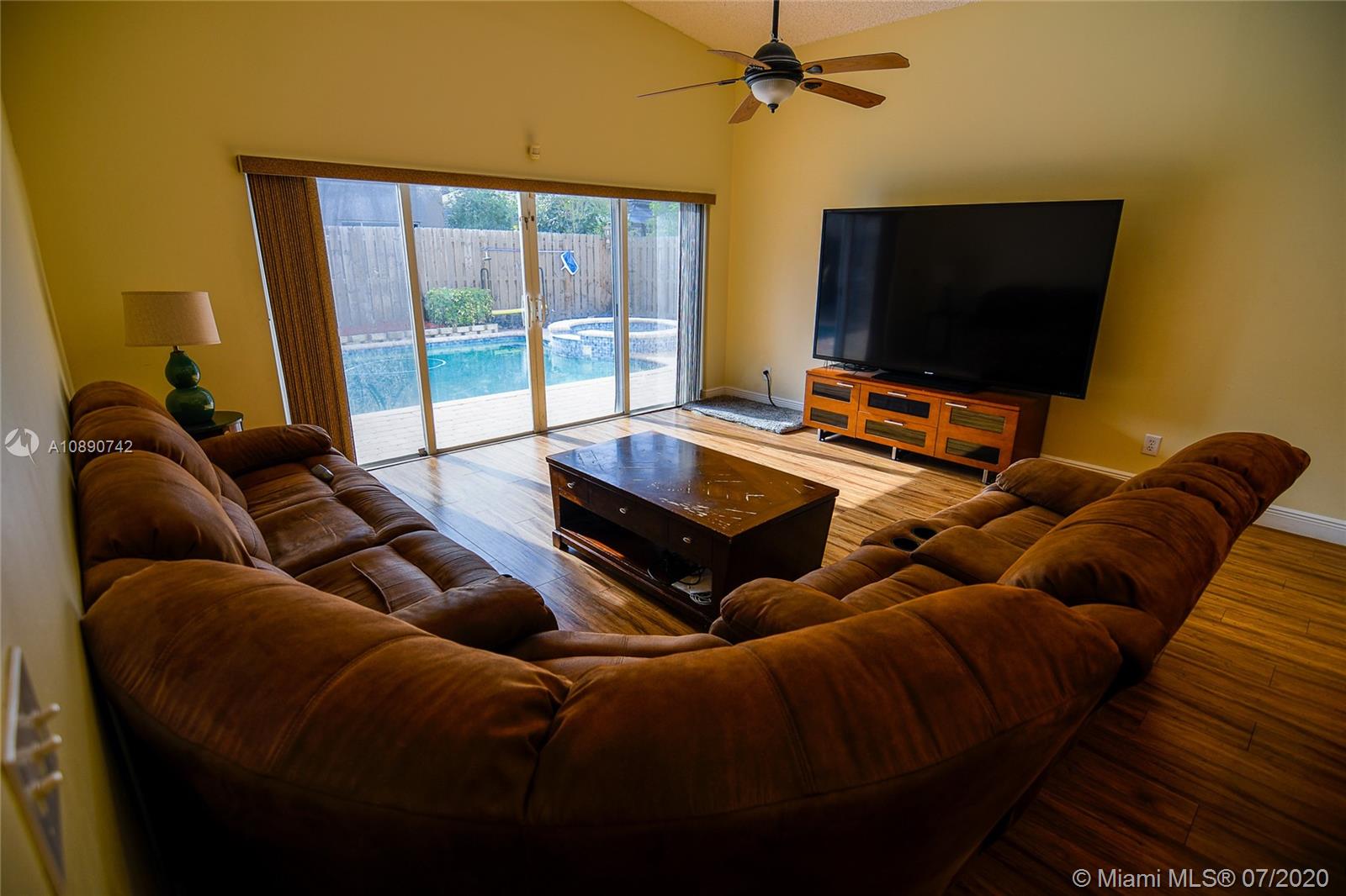 If you like to spend time in the backyard, this is the property for you. Very well maintained 3/2/2 pool home in highly sought after Harmony Lakes, this property has a tiki bar and outdoor theater for family night along with a spa and fire pit. Harmony Lakes is zoned in what could arguably be described as the best school district in Broward County. If you want to stretch your legs and walk to the grocery store, it is only a half mile walk to Winn Dixie, Walgreens and Lowes. This property is also located on a very quiet street, traffic is nominal.