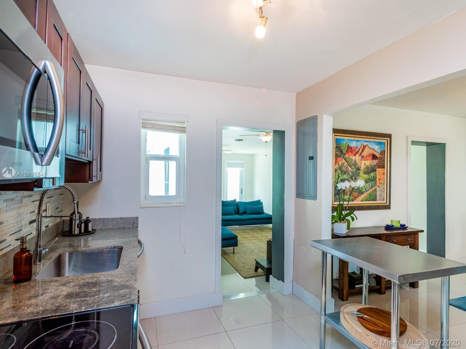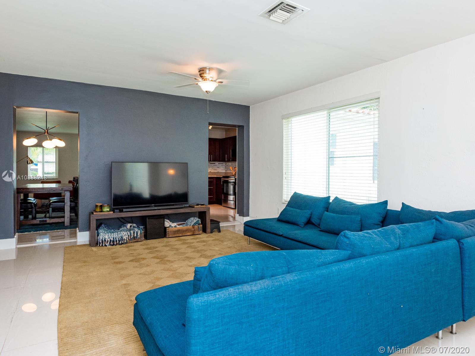 Buy this beauty while you can! Tastefully remodeled with new kitchen, new bathrooms, 4 full bedrooms with a split plan and master bedroom & bath en suite plus a great walk-in closet! Picture perfect with porcelain floors and decorative fireplace. Large family room overlooking a spacious fenced back yard, with plenty of room for a pool and large patio to entertain! AND a BONUS! ... even better...a detached over-sized garage - with entry from fabulous Miami Shores 'service road' -- could be home office or art studio or home gym! The septic system is new.ROOM FOR POOL and ROOM FOR BOAT!
